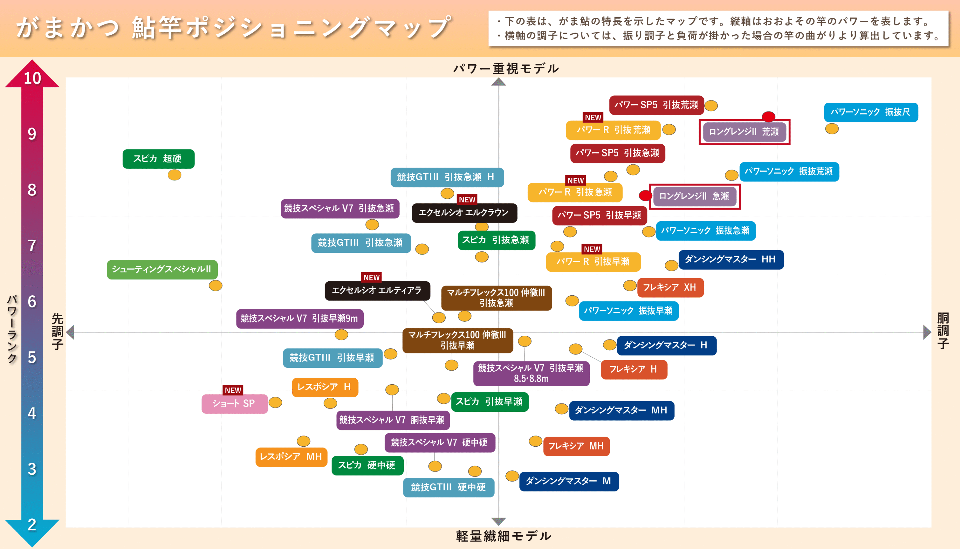 球磨川、吉野川(四国)、千曲川などの立ち込めない激流ポイント、岩盤ポイントで27cm〜尺鮎を狙うために開発。前作「ロングレンジ」よりも軽く、パワーが大幅に向上。尺鮎であろうが力負けすることはありません。長さとパワーで未開の激流ポイントや大トロ、深トロを制覇。ハカマを使用すれば、11mは11m→10mの2段階の長さ調節が可能です。
