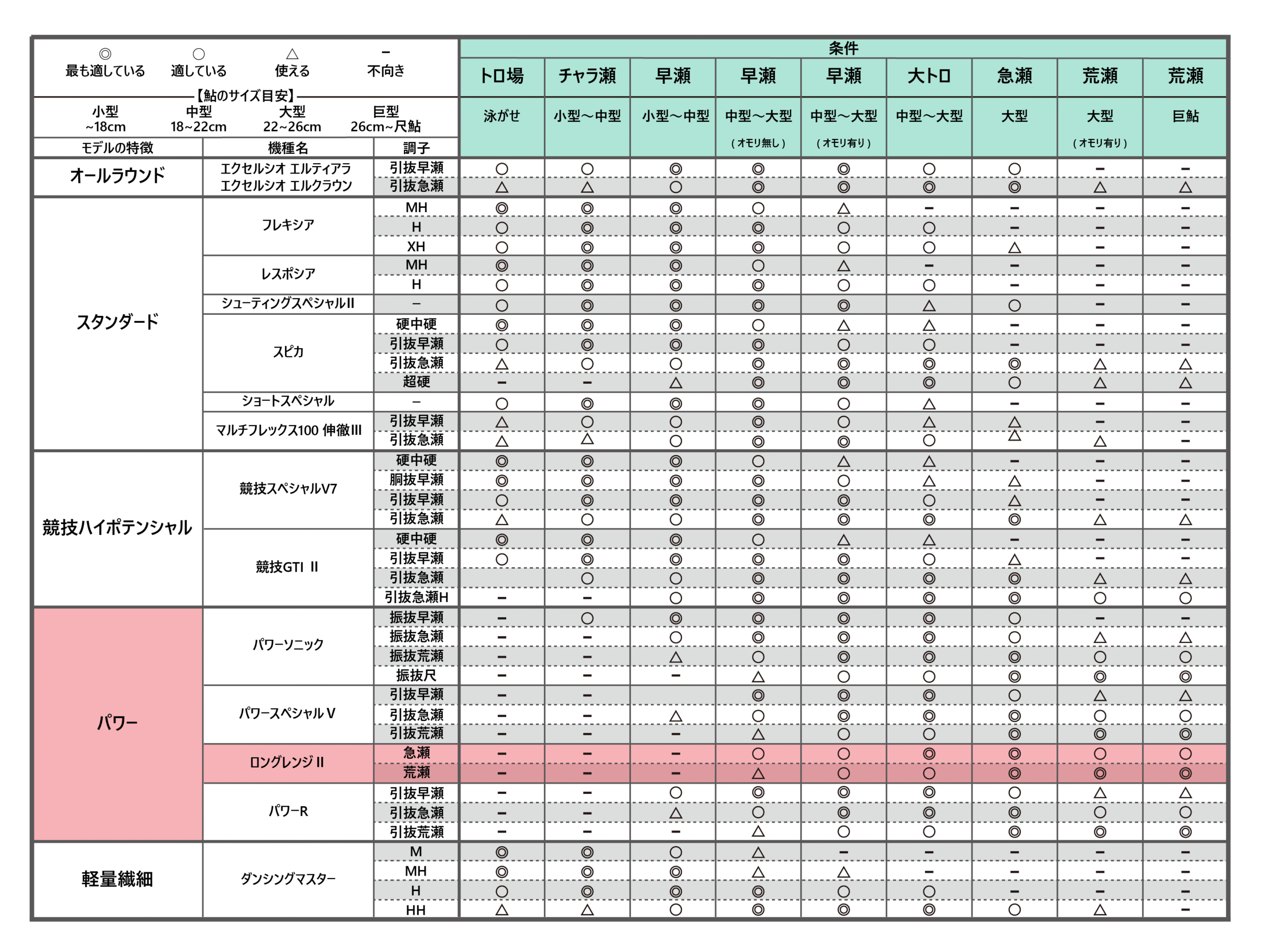 通常では立ち入ることができない激流ポイントや水深の深い場所、岩盤ポイントにオトリをラクに入れることができます。大河川において攻撃レンジが大幅に広がり、サラ場を攻めることが可能。全国の名だたる急流河川、激流河川を制覇すべく、状況に応じて選択できるように急瀬と荒瀬をラインナップしました。