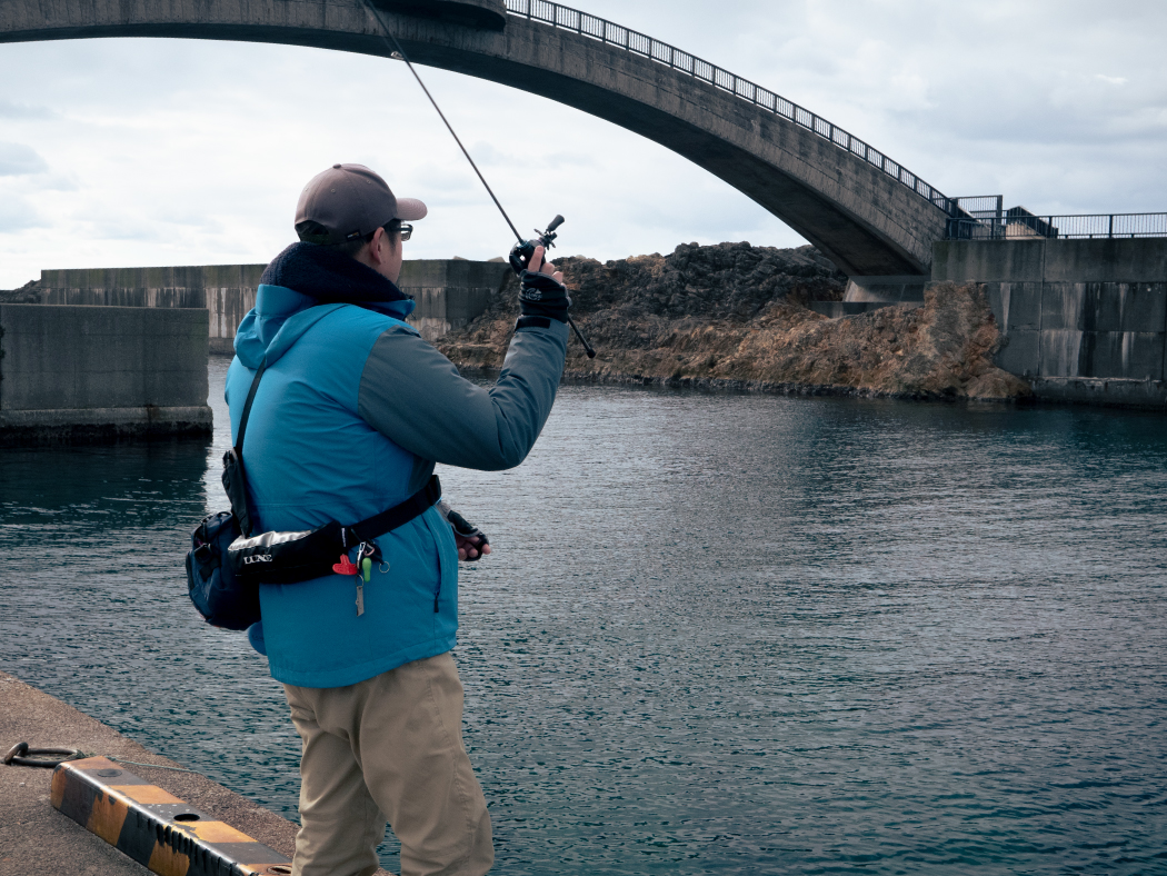 ハタ類やカサゴといった根魚は、ともすれば比較的単純なメソッドで反応する魚というイメージがあったが、このゲームをやり込む中で藤原が発見したのは、「細いラインシステム(PE0.5~1号)と軽いシンカー(ノーシンカー~10g)を使ったリグだからできる攻め方でしか反応しないケースがある。シンカーの置き方や引き方、リグのフォールの速度や軌道、ワームの水押しやカラーを使い分けることで、バイトの数が全く変わります。そんな展開の奥深さや面白さは、アジングに匹敵するものがありますよ」という。