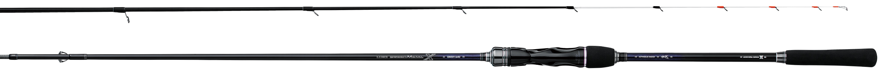 スピードメタルシリーズのメインコンセプトである高感度・ハイレスポンスをさらに進化させるべく開発。メインマテリアルにTORAYCA(R)T1100Gを採用。適所に高弾性マテリアルを配し、細身・軽量化したブランクを採用。ティップ部にはモデルごとに最適な表現力を備えるよう、オリジナルテーパーデザインのソリッドを搭載。タフライト仕様のリールシートを中空リザウンド構造に組みあげ軽量化とともに操作性と反響感度性能を高めています。ベイトモデルは穂先ブレ軽減、スムーズなライン放出、糸絡み軽減、ガイド個数の最適化、ブランクの性能を最大限に発揮できるオールシングルスパイラルガイド設定です。スピニングモデルも小径ガイドセッティングでブレを極力抑えた設定にしています。各性能を追求した結果、特に手感度・荷重変化察知能力が大幅に向上しており、さらに攻めのゲームが楽しめる仕様に仕上がっています。