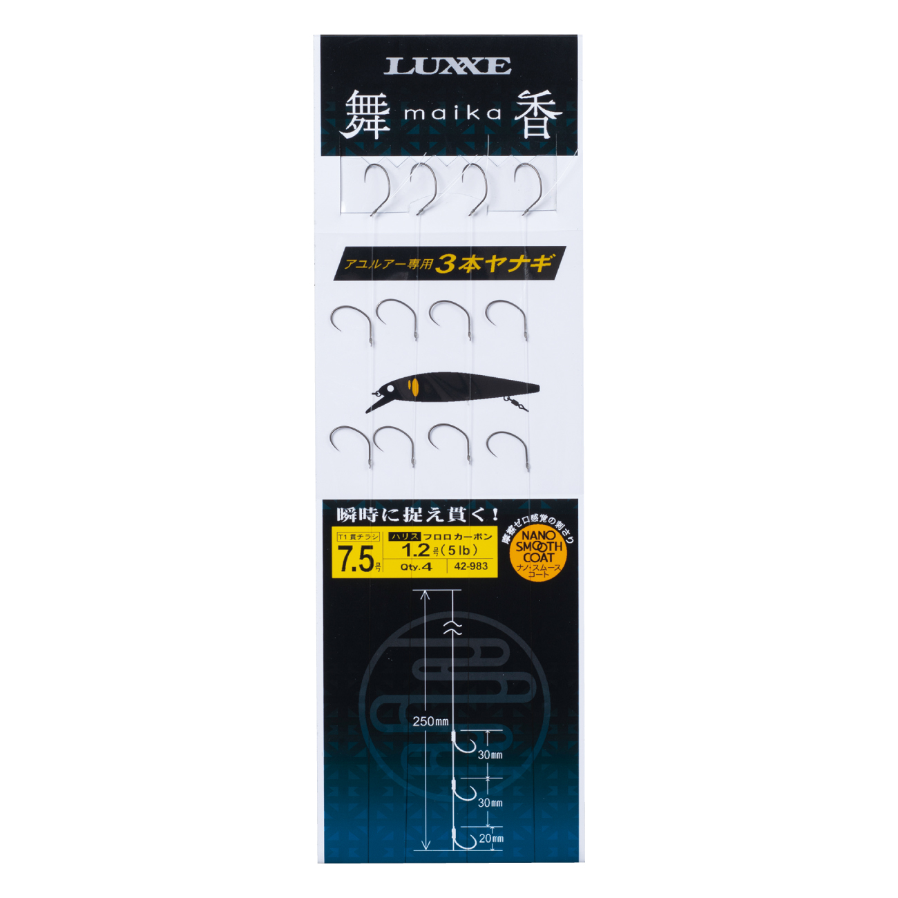 LUXXEよりアユルアーロッドが誕生しました。鮎という魚をルアーで狙う際に求められる性能は何か。1つは鈎への乗せやすさと掛かってからのバレにくさです。鮎の掛け鈎は特殊な形状をしておりその大半がバーブレス形状になっているため、掛かりやすいが竿に無駄な張りがありすぎると竿が叩いてしまい、身切れ等でバレやすいことがあります。舞香ではそれを最小限に抑えるようなアクションに仕上げてあります。もう1つはルアーロッドとしての操作性です。バレにくさを追求しつつもルアーのキャスタビリティや操作性・感度を犠牲にすることなく鮎ルアーを楽しめるロッドに仕上げてあります。舞香で快適かつ軽快なアユルアーをお楽しみください。
