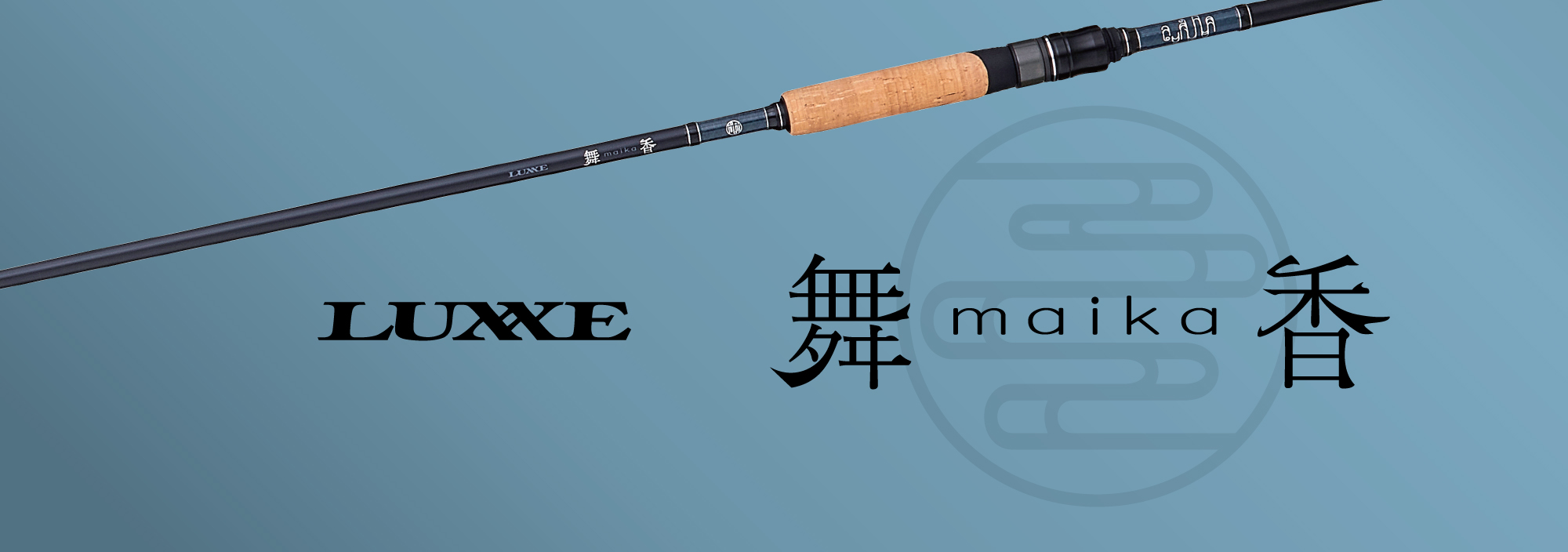 鮎という魚は古くから日本で親しまれてきた魚です。そんな鮎を狙うルアーロッドの開発にあたり、日本人が古くから大切にしてきた美的観念である「粋」をテーマに、デザインを考えました。日本の伝統文様の一つである、流水文(りゅうすいもん)をモチーフに、清流の弛(たゆ)みなき流れと、その中に鮎の香りが軽やかに舞う様子を表現しています。また、差し色のクリアブルーは、太陽光を浴びることで、澄んだ川のような清涼感を生み出します。ぜひこの夏は、舞香を携えて、清流を小粋に愉しんでいただければと思います。