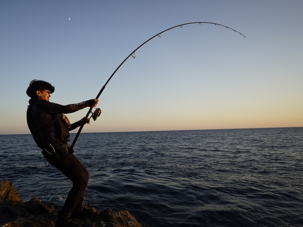 「ロッドを曲げ込んでいける強さの質にこだわりました。端的には『強すぎる反発力を抑えつつ、復元力を高めてほしい』というのが当該ロッドを企画するにあたってのリクエスト。より大きな魚との対峙に臨んで、ターゲットの挙動に対する安定性を示すこと―すなわち、がま磯のテイストをロックショアロッドに落とし込めないか?というのがシンプルな希望でした」