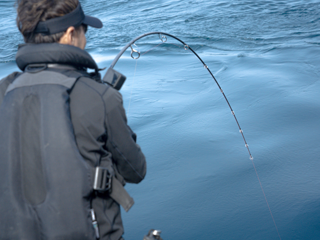 「2年間で70本以上のヒラマサやカンパチ、キハダをプロトで釣りましたが、最高の仕上がりになったと思います。綺麗に弧を描き曲がる。そして復元力。体感的には魚が1.5倍早く浮いてくれる。そして軽い…昔は軽い竿は信用できずでしたが、この竿は軽いのにテスト釣行時には折るつもりで曲げ込んでもメーターアップ抜き上げしても全く破損がなかったです。(もちろん過度な使い方は推薦しませんしやめた方がよいです)」