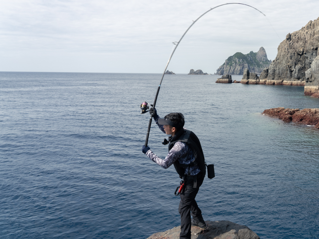 瀬際でのロッドを立てたやり取りにも耐える強度を十分に備えているのが当該シリーズの特徴です。一方で、体への負担は大きくなりますが、ロッドを立てすぎず、バットセクションで負荷を受ける角度を保持することで、ブランクが持つ復元力をしっかり引き出すことができます。ターゲットの挙動やサイズに応じて、ロッドの角度を適宜調整することでファイトタイムを短縮することやアングラ―の負担を軽減することが可能です。ハエ根を躱し、自らが磯を活用することを考えるアングラーの技量に呼応する最高のパフォーマンスを約束します。