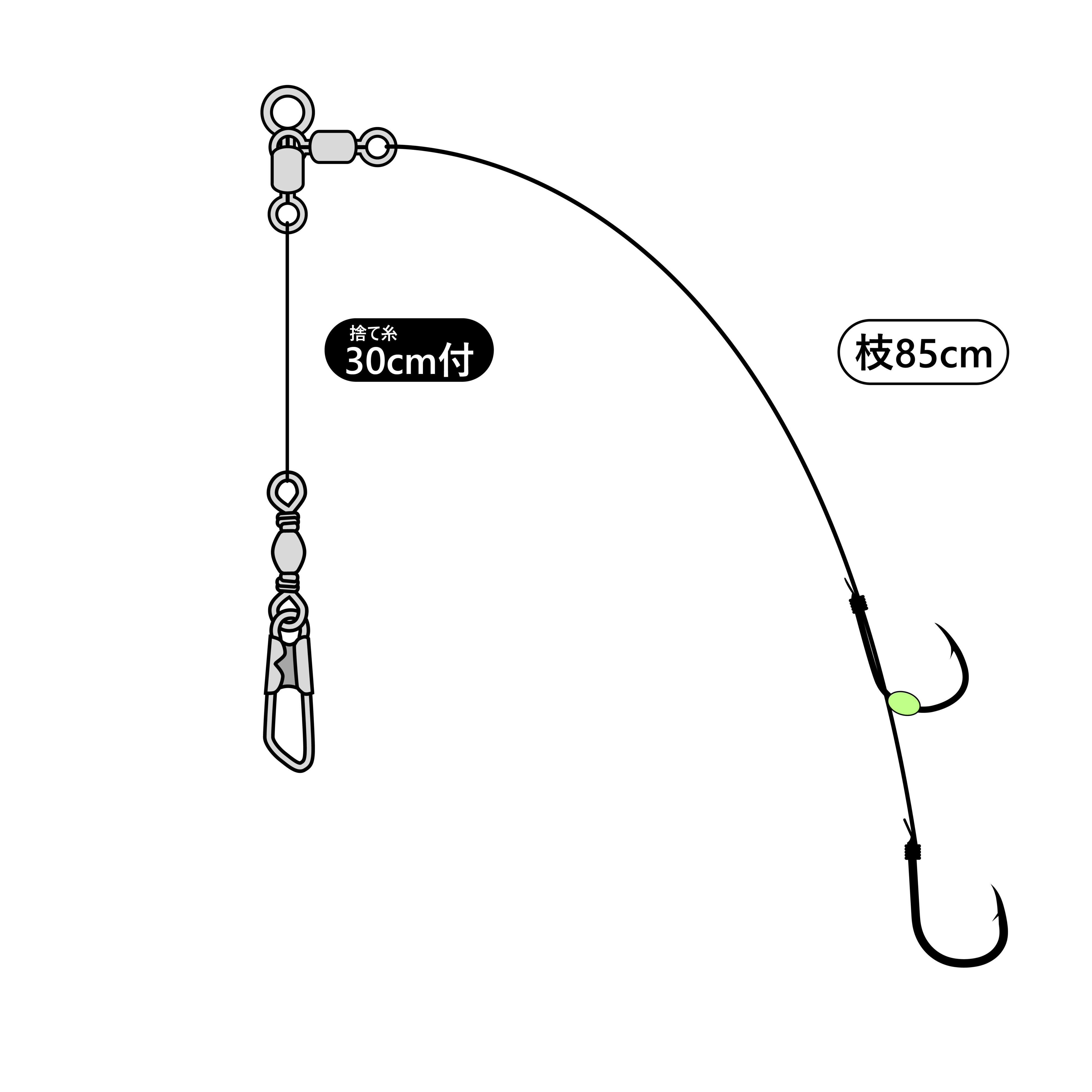 船宿でも使用される安心の定番仕掛を忠実に再現しました。孫鈎はシングルとトレブルフックの2つの仕様。ハリス接続部の親子サルカンより上部がなく、直接リール糸のリーダーを接続できるため、ハリスのすぐ側まで竿に巻き込むことができるので、手返し抜群!ビギナーの方でも扱いやすい仕様です。ショートロッドを使うライトタックルの釣り、喫水線の近いマイボートでの釣りにおいても魚の取り込みや餌替えが楽々行えます。