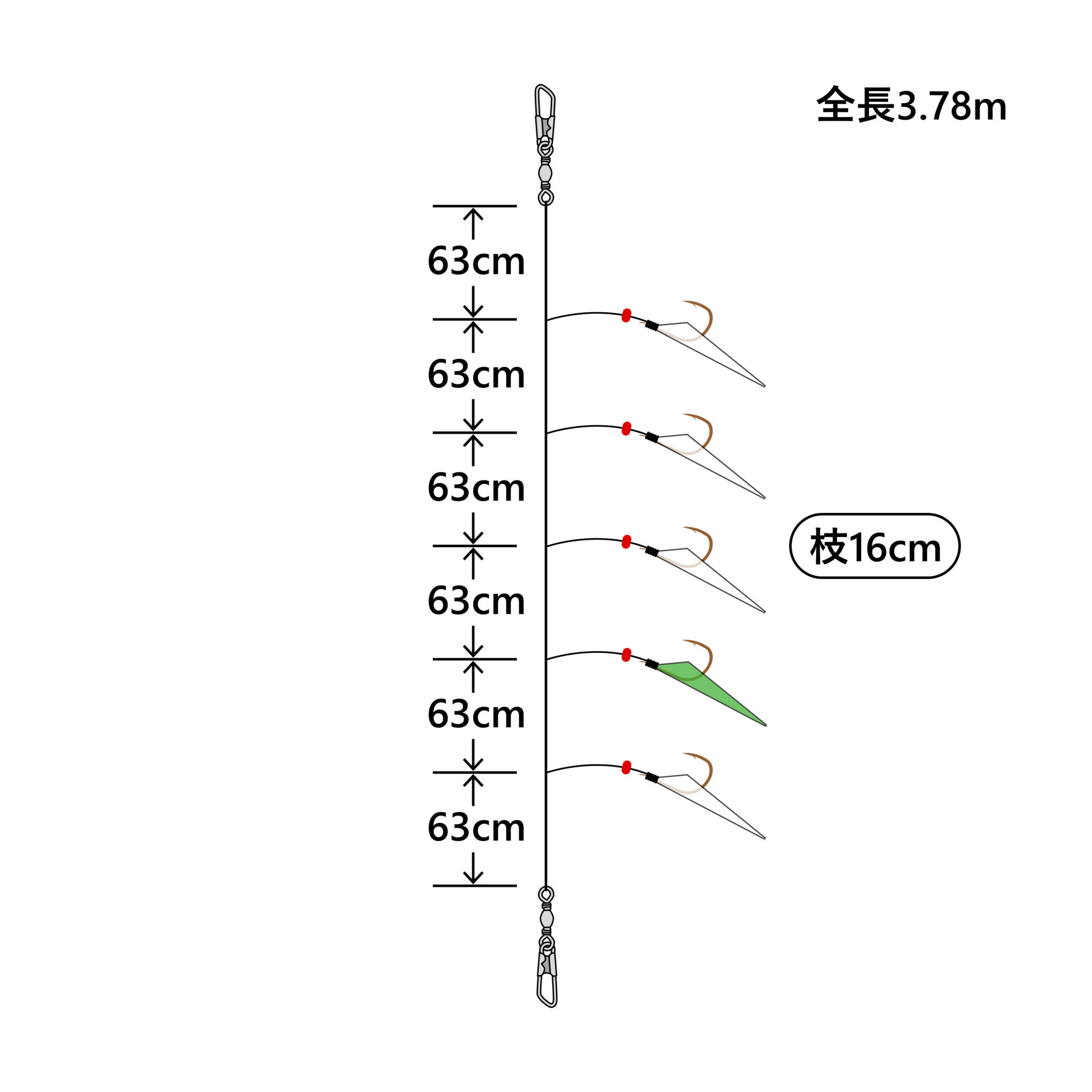 品名コード | 号数 | ハリス | 幹糸 | 全長 | 入数 | 希望本体価格(円) | JANコード | |