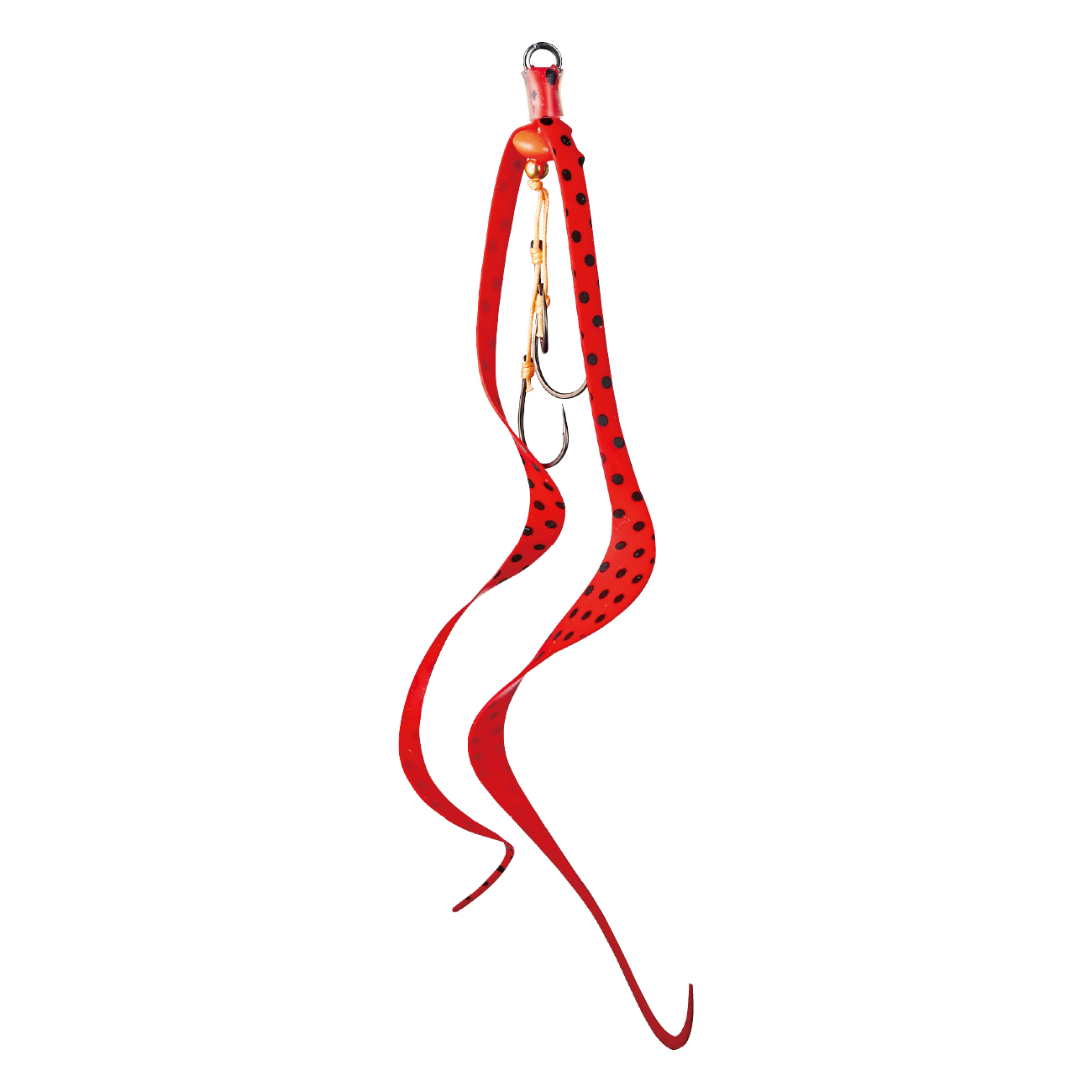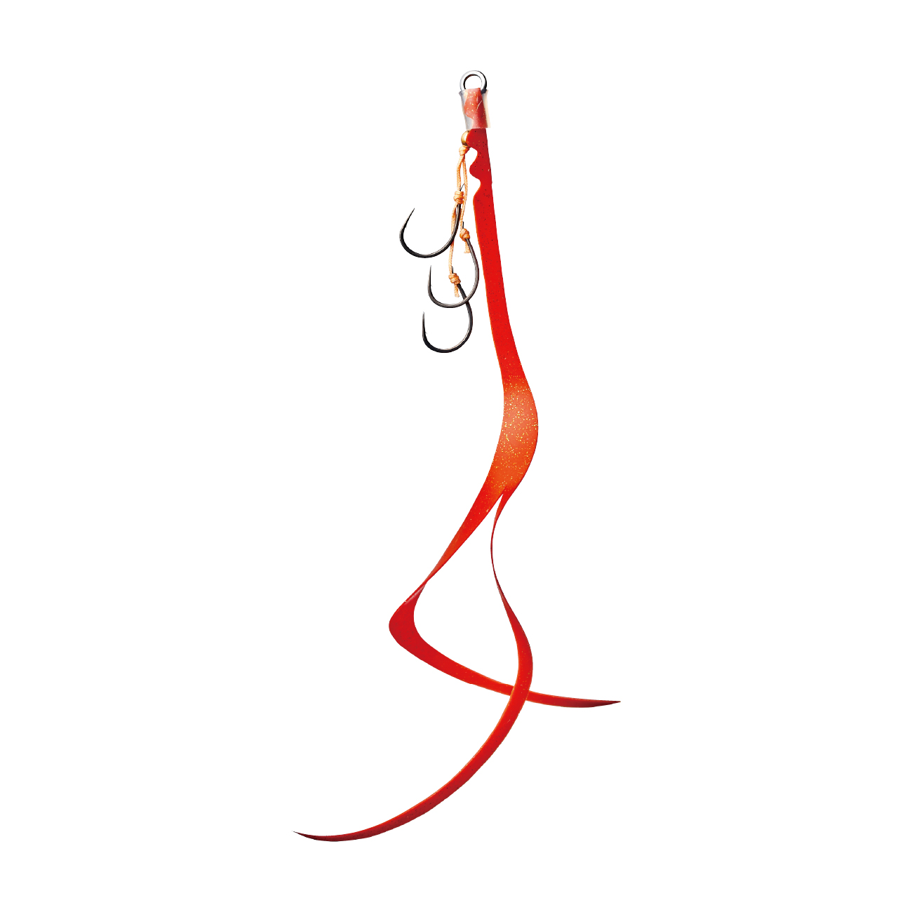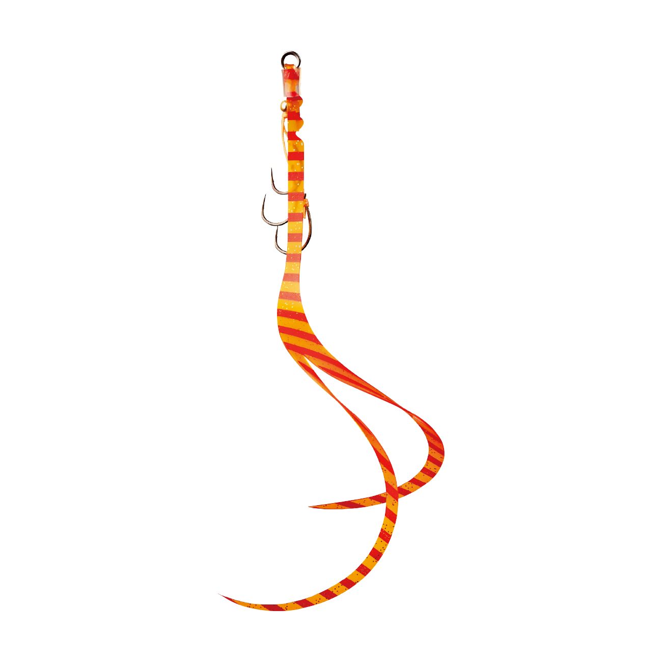 ラージとスモール、2サイズ入り。なだらかなカーブを描くラージパターンは、特にスローリトリーブでの真鯛の捕食スイッチを入れることが得意なネクタイ。スモールパターンはコンパクトかつターンアングルが大きなカーリーが特徴で、スローからファーストリトリーブでもキビキビ動き、そのボリュームが海底に潜む甲殻類にマッチザベイト。