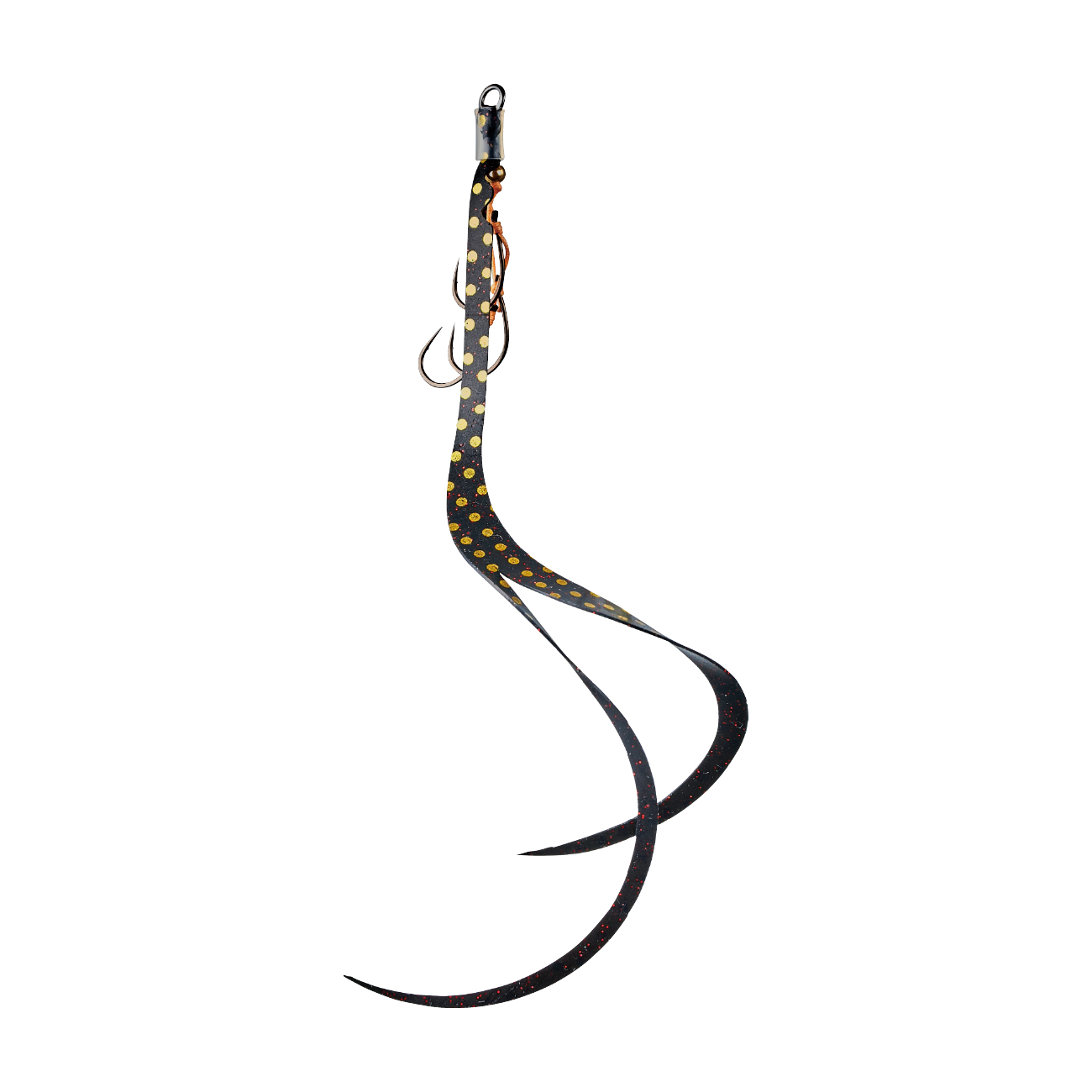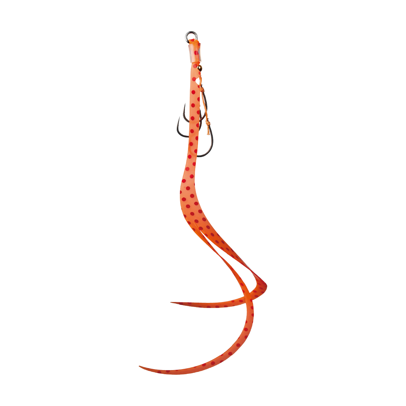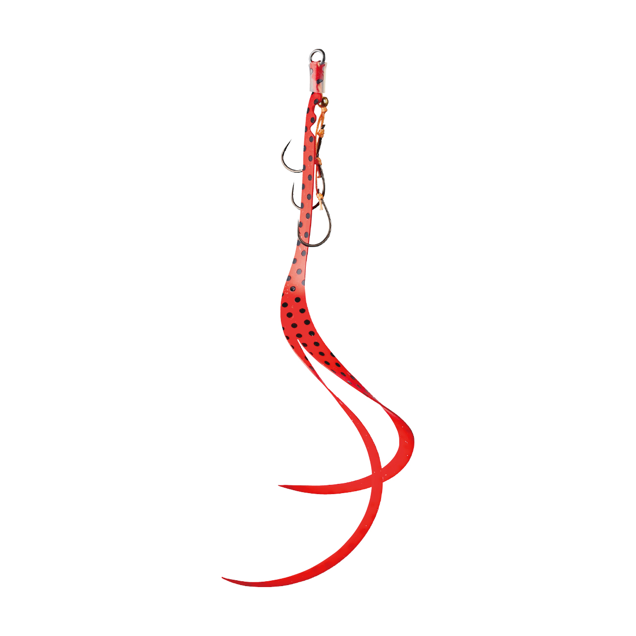ラージとスモール、2サイズ入り。なだらかなカーブを描くラージパターンは、特にスローリトリーブでの真鯛の捕食スイッチを入れることが得意なネクタイ。スモールパターンはコンパクトかつターンアングルが大きなカーリーが特徴で、スローからファーストリトリーブでもキビキビ動き、そのボリュームが海底に潜む甲殻類にマッチザベイト。