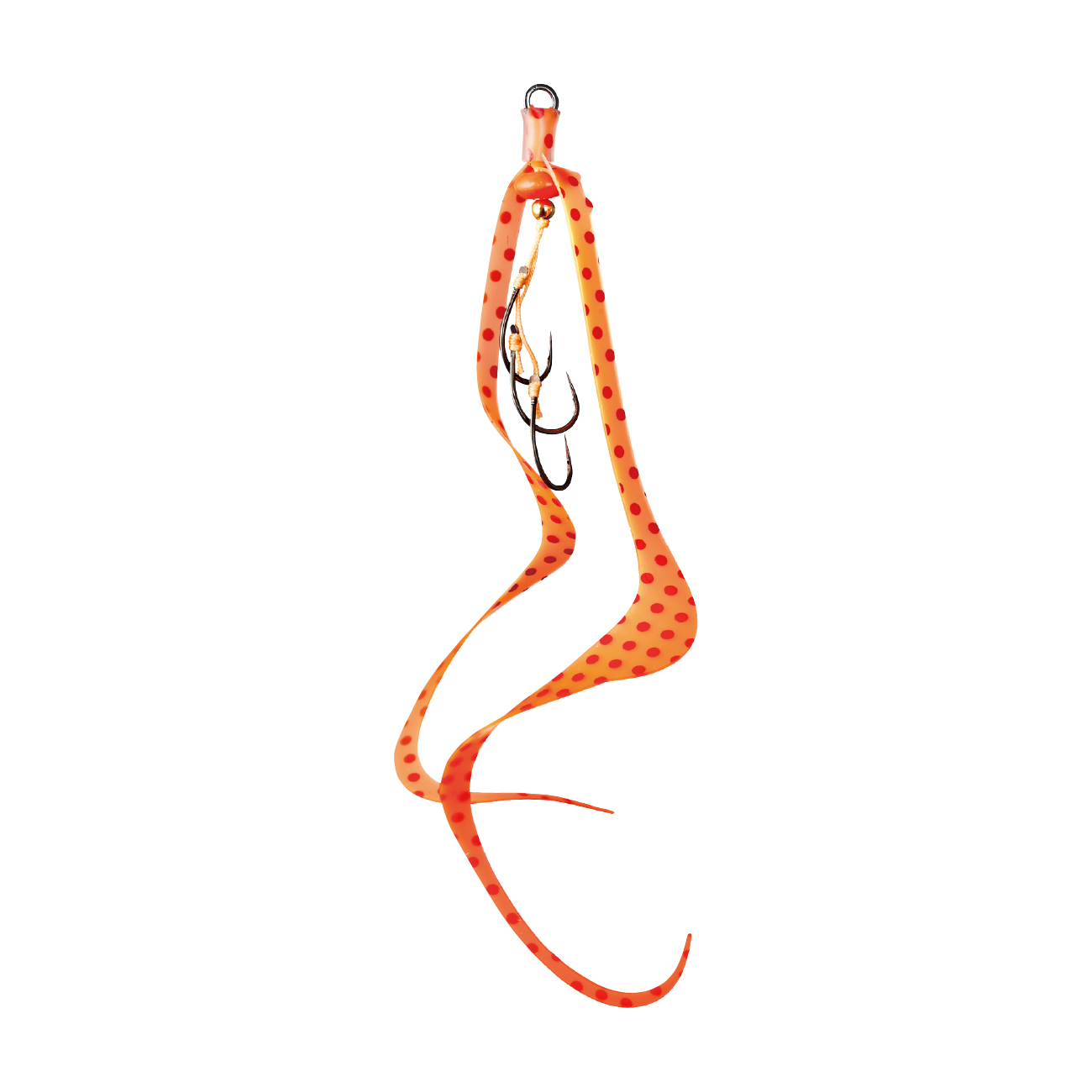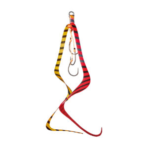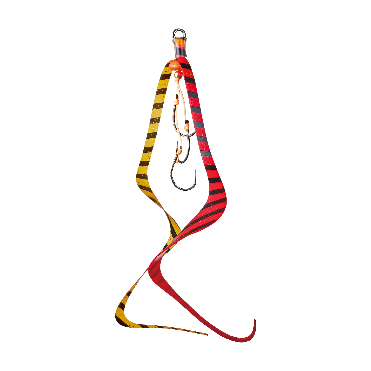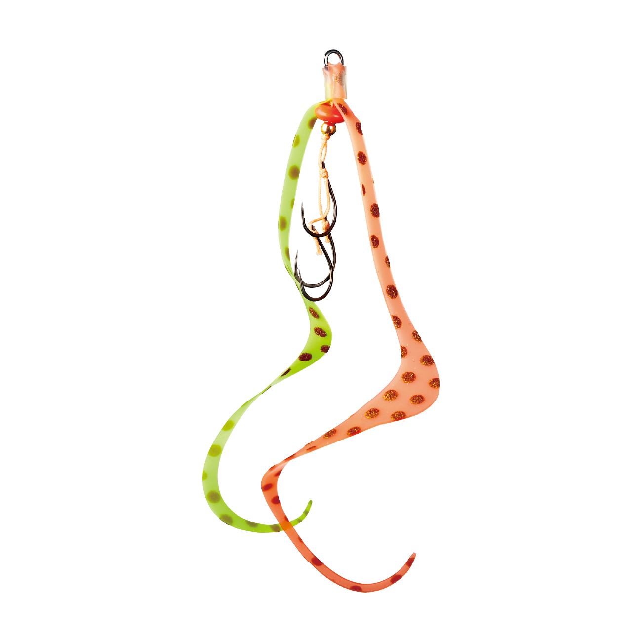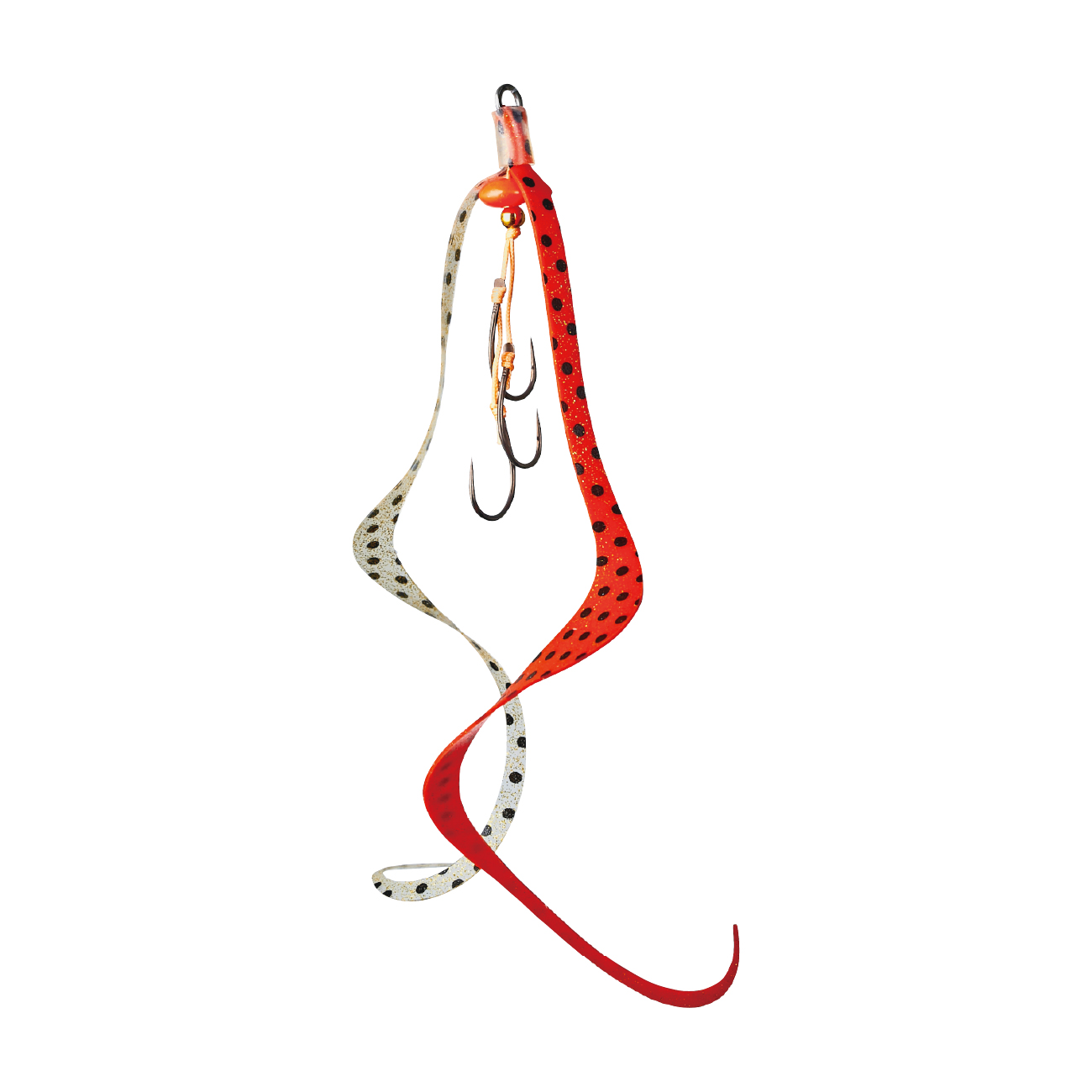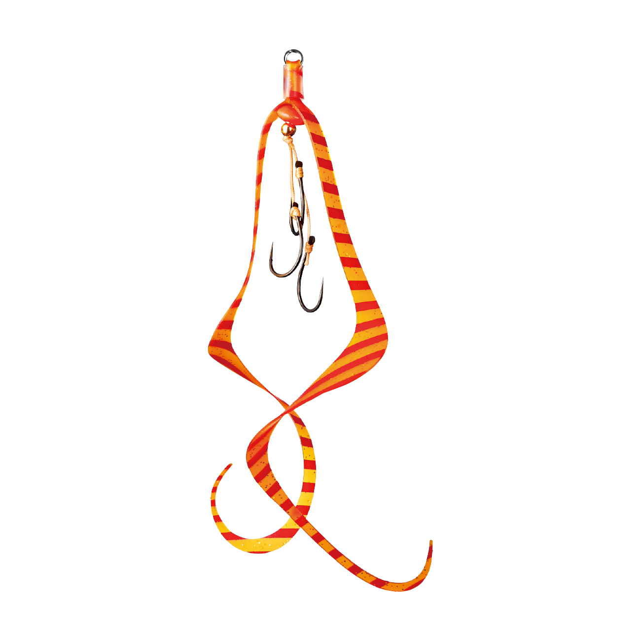 波動の強弱を同時に演出できるナロー&ワイドカーリーを使用したネクタイユニット。楕円ビーズがネクタイを左右に広げることによって、大きくアクションするように設計しました。ハイシーズンの朝一番のパイロットネクタイにおすすめ。活性が低い場合は、ダブルカーリーのどちらかをカットして、シングルカーリーとしてアジャストすることも可能。