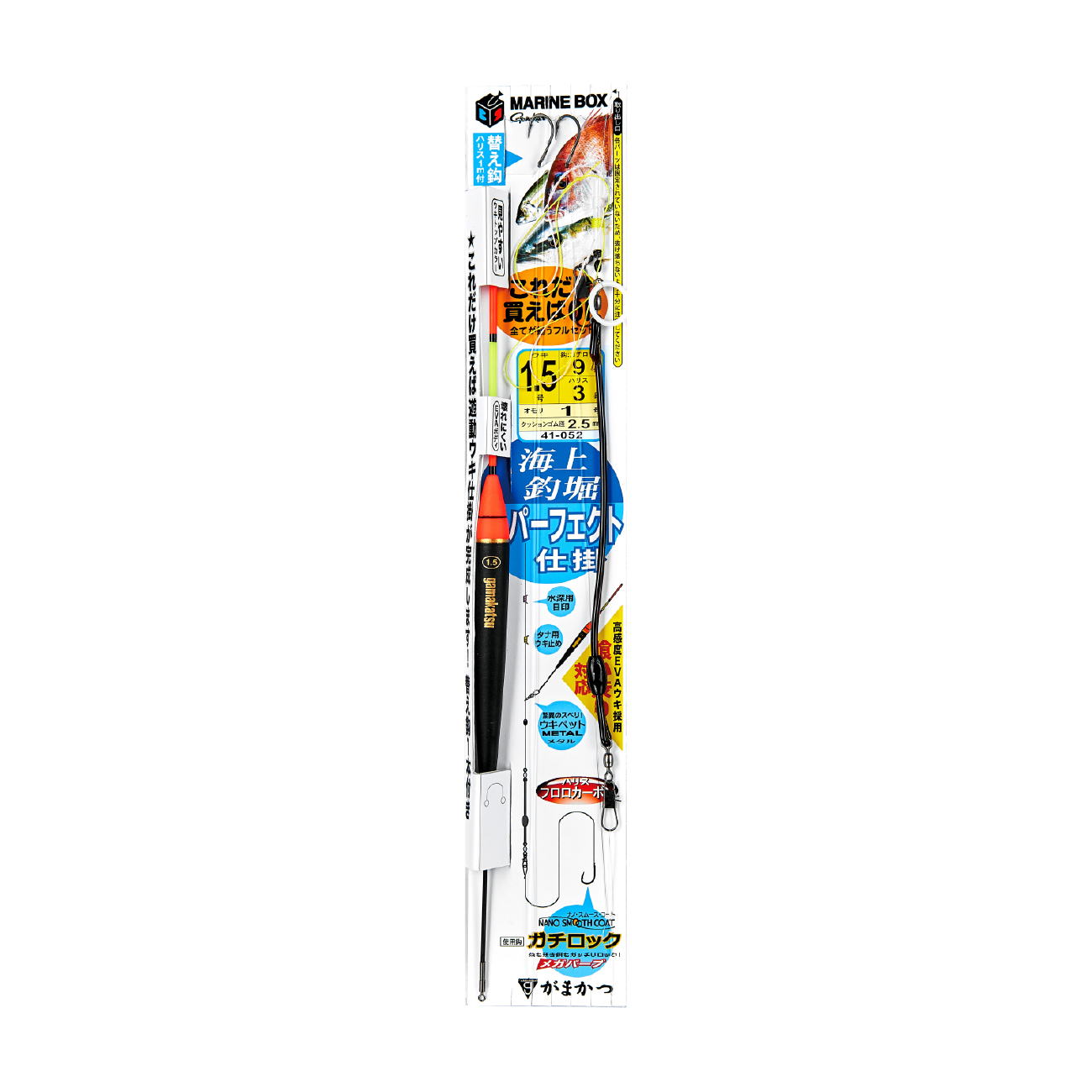 海上釣堀のウキ釣りを始めるためのすべてがセットになったパーフェクト仕掛。あとは餌をつけるだけ。現場について、すぐに釣りが始められます。