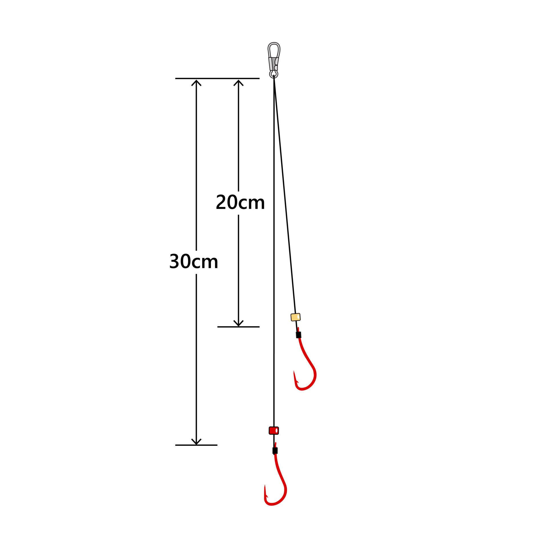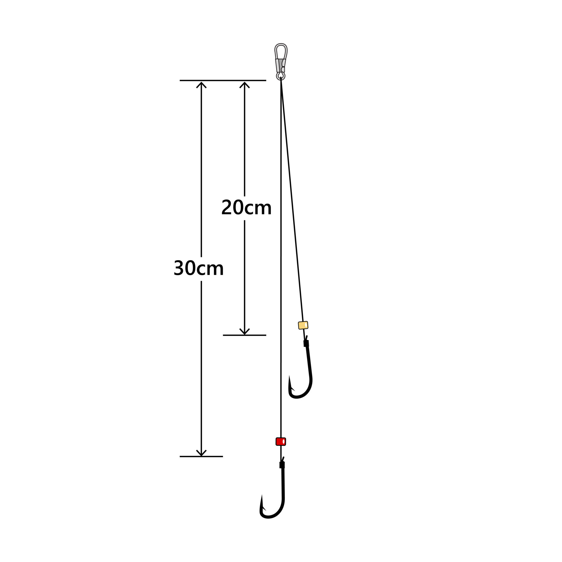 ライン20cmと30cmの2本鈎仕様。ライトロッドでの釣りに最適な仕掛です。底付近での安定した釣果を重視し、スナップから下鈎までの距離を最適化。キスやハゼの繊細なアタリまで確実に捉えます。アッパーキャストジグとの組み合わせがベストマッチ!