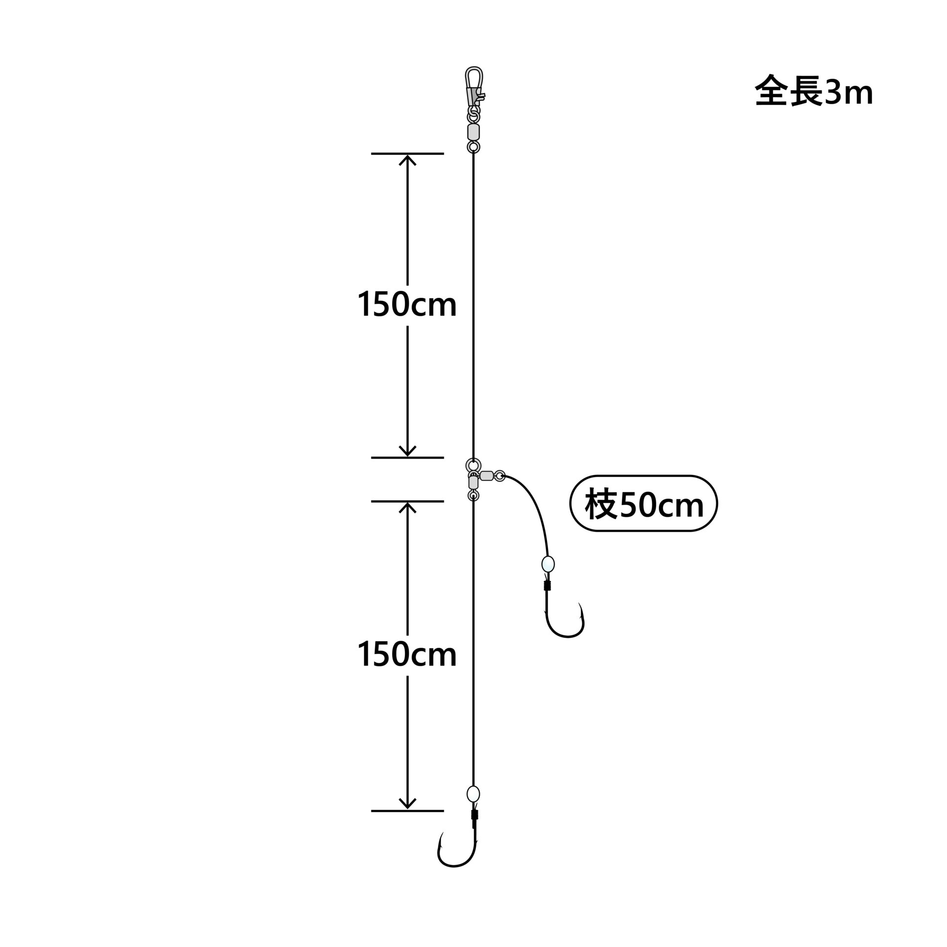 速潮や喰い渋り時のアマダイに広範囲にアピールしつつ自然な誘いを実現できる全長3mのロング仕様。太ハリスの強靭設計で不意に喰ってくるハタなどにも余裕で対応できます。餌持ちが良く頑丈な『ケン付真鯛」を採用。