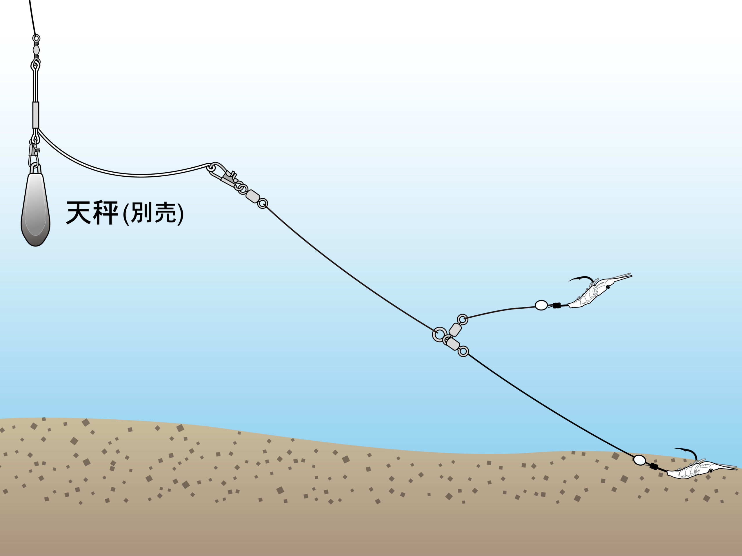 オモリが海底を小突いて舞う“砂煙”に反応するアマダイ。そのオモリに一番近い「プラスワン」が喰い気を引き出します。天秤にスナップで取り付けるだけでOK。砂ずり+さらなる太ハリス仕様で大型アマダイはもちろん、マハタにも安心!