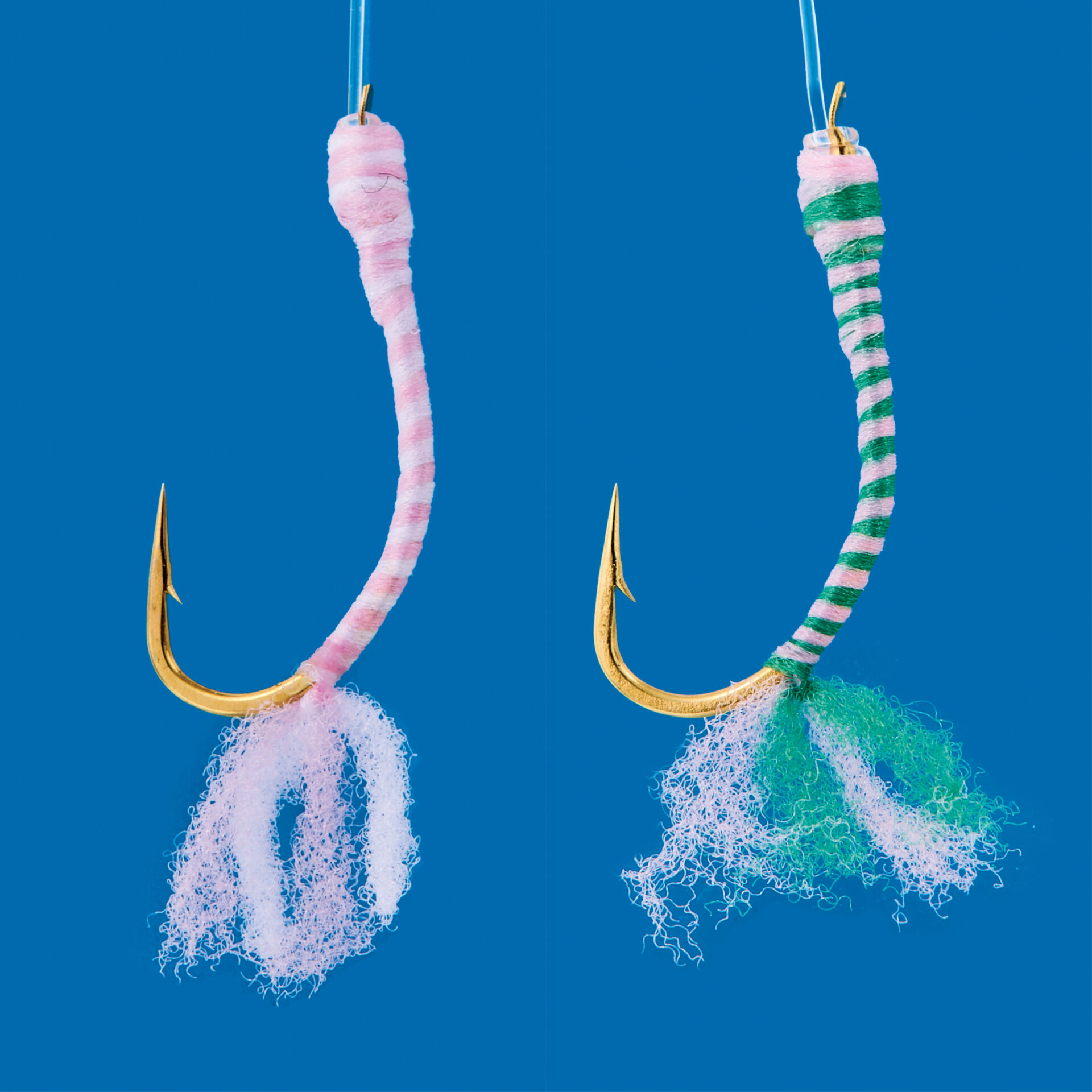 沖縄最大のグルクン釣り大会で連覇を成し遂げたチームGFG!その大会で使用していた仕掛を再現しました。金鈎と白鈎、3色のウィリーのゼブラ巻きを組み合わせ、どのようなパターンでも口を使わせる設計に。そして鈎は刺さりやすさとバラしにくさを優先に丸せいごを採用!!