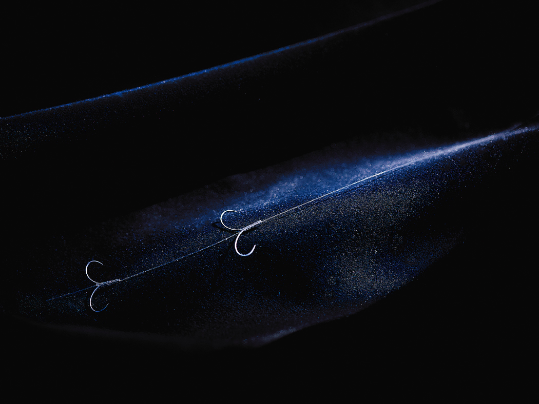 鈎には掛かりが良く、根掛かりしにくく、良型にも対応する中軸の「T1全」を採用。ナノスムースコートにより抜群の刺さり込みを実現しました。「上鈎・下鈎とも同号数」の仕様で、下にもしっかり掛かります。ハリスには耐久性が高く、トラブルが少ない「フロロカーボンハリス」を使用しています。錨・チラシに続く第3の選択肢として、一日中快適に使用できます。