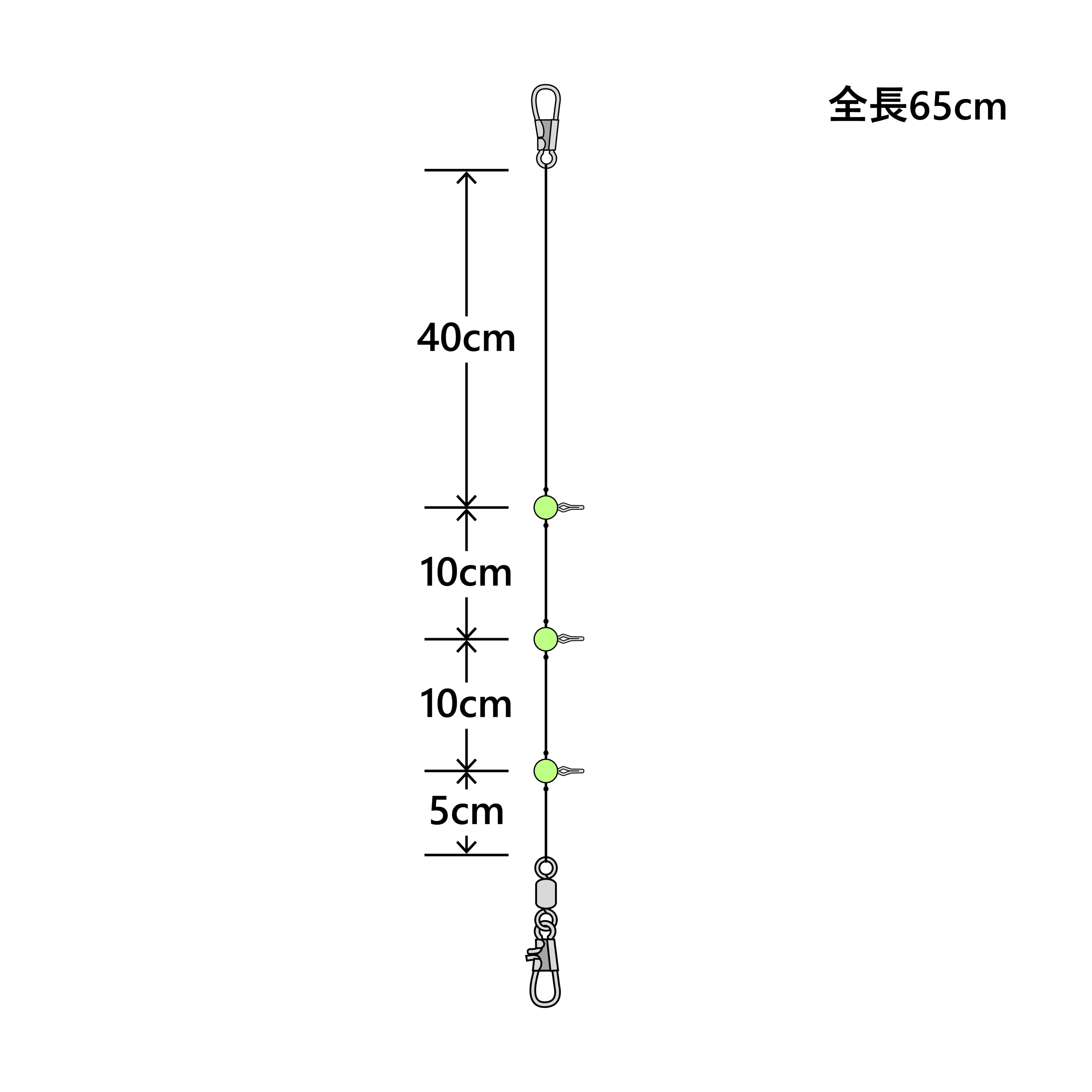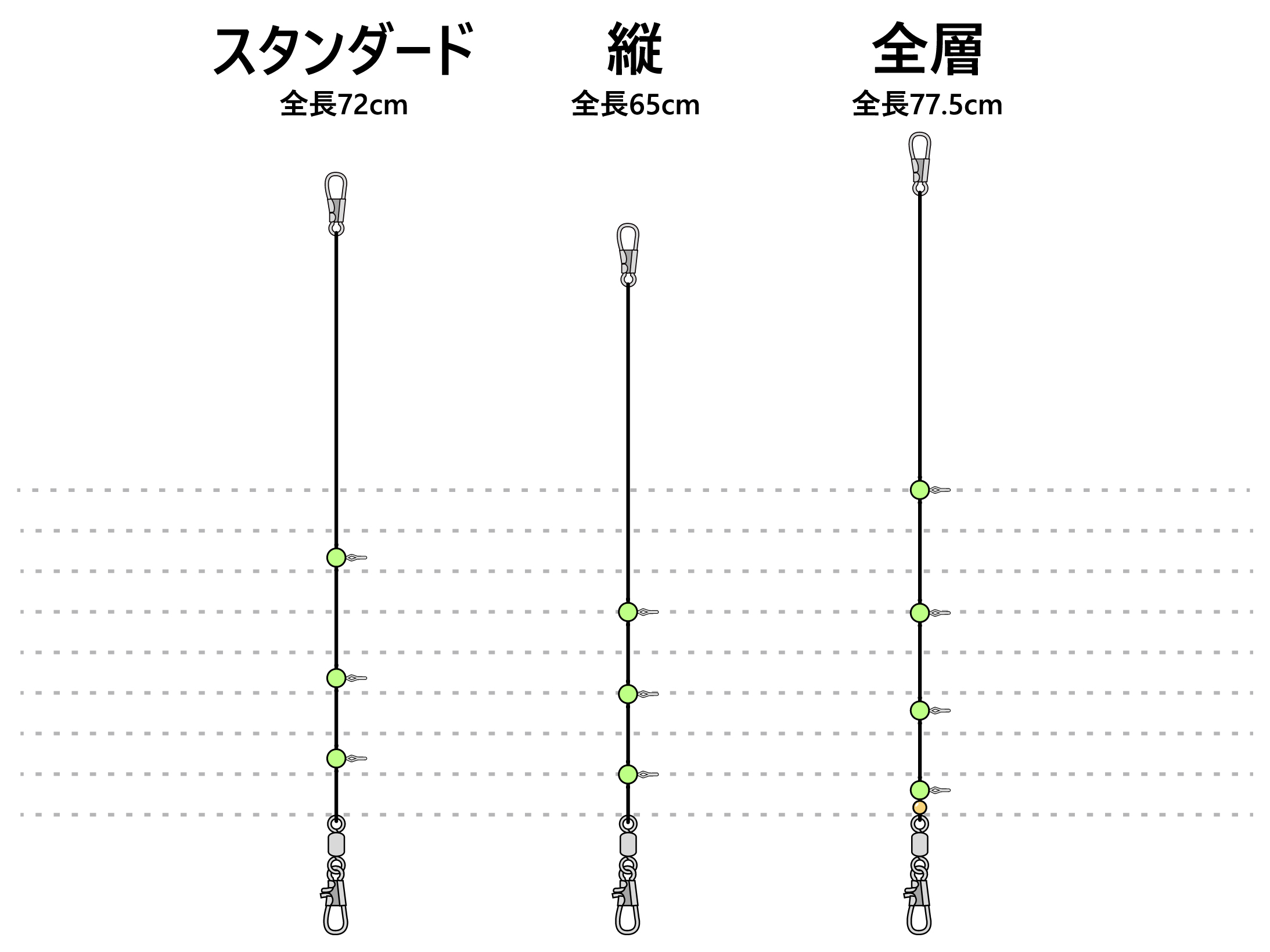 シンカーや集魚板を操作する際、下オモリにまでテンションをかけることなくソフトに誘い喰わせることができる“間”を確保する基本的な仕掛。その日の状況を確認するために、パイロットとしてまず最初にセットされるであろう【スタンダード】な仕様。