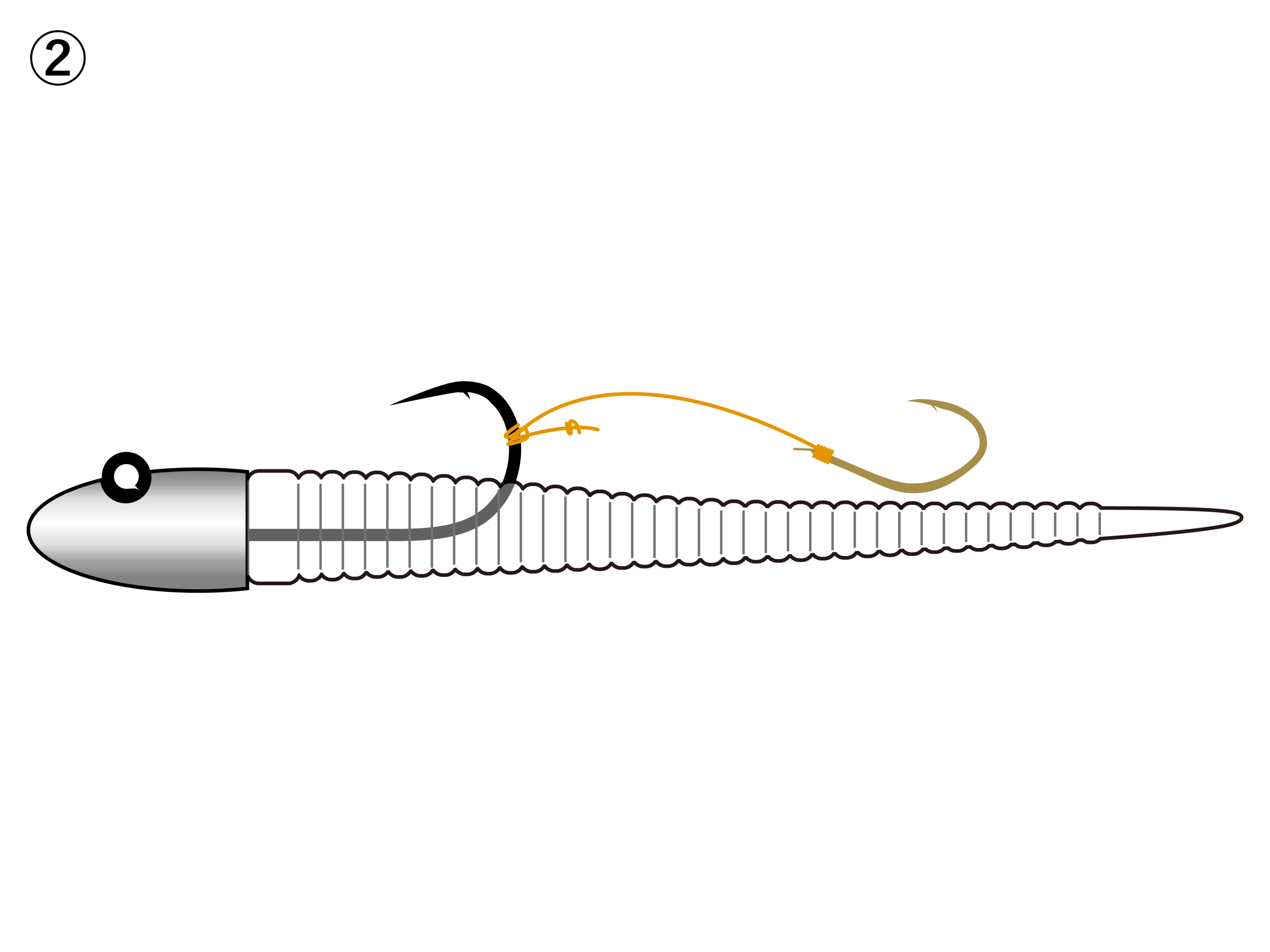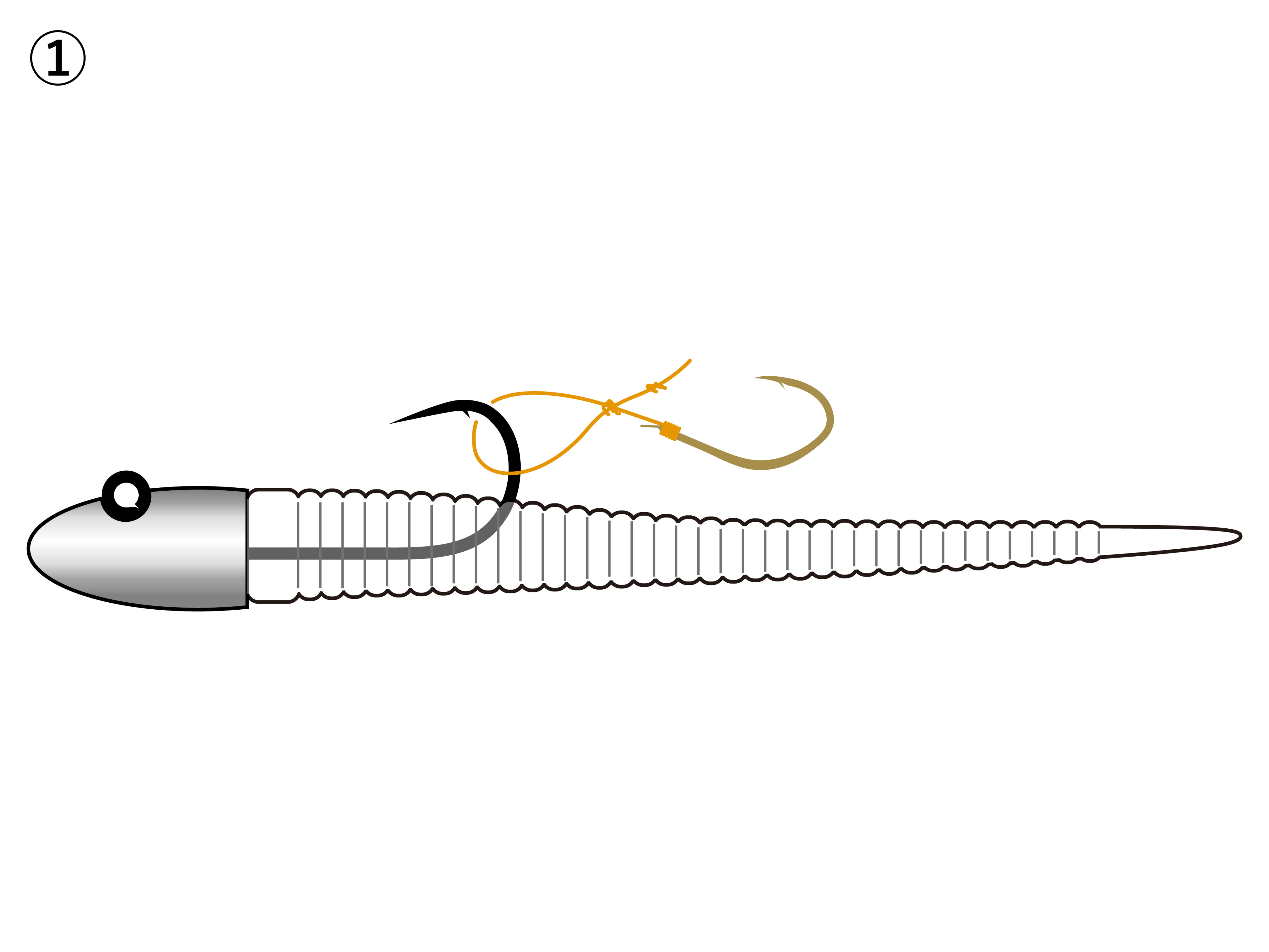 1.鬼爪のライン(輪)をジグヘッドのフックに掛けます。
