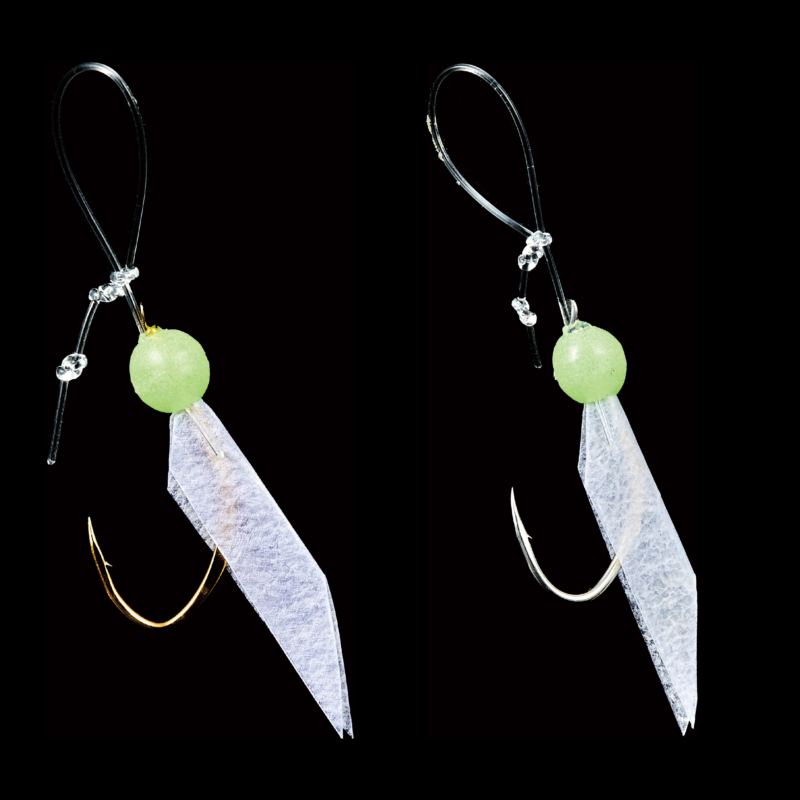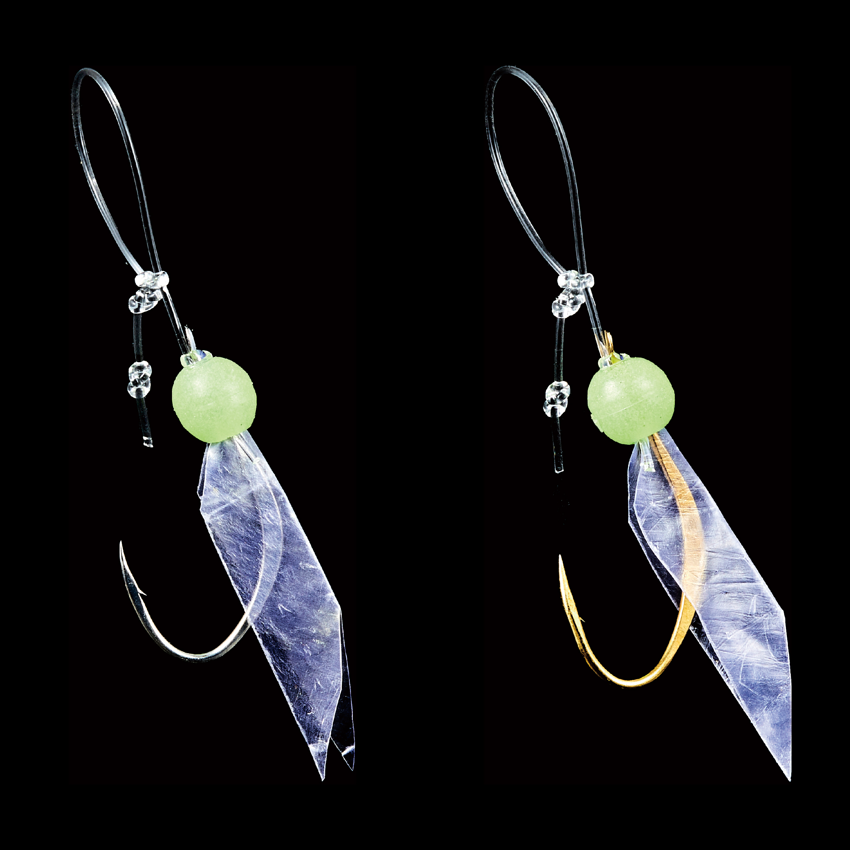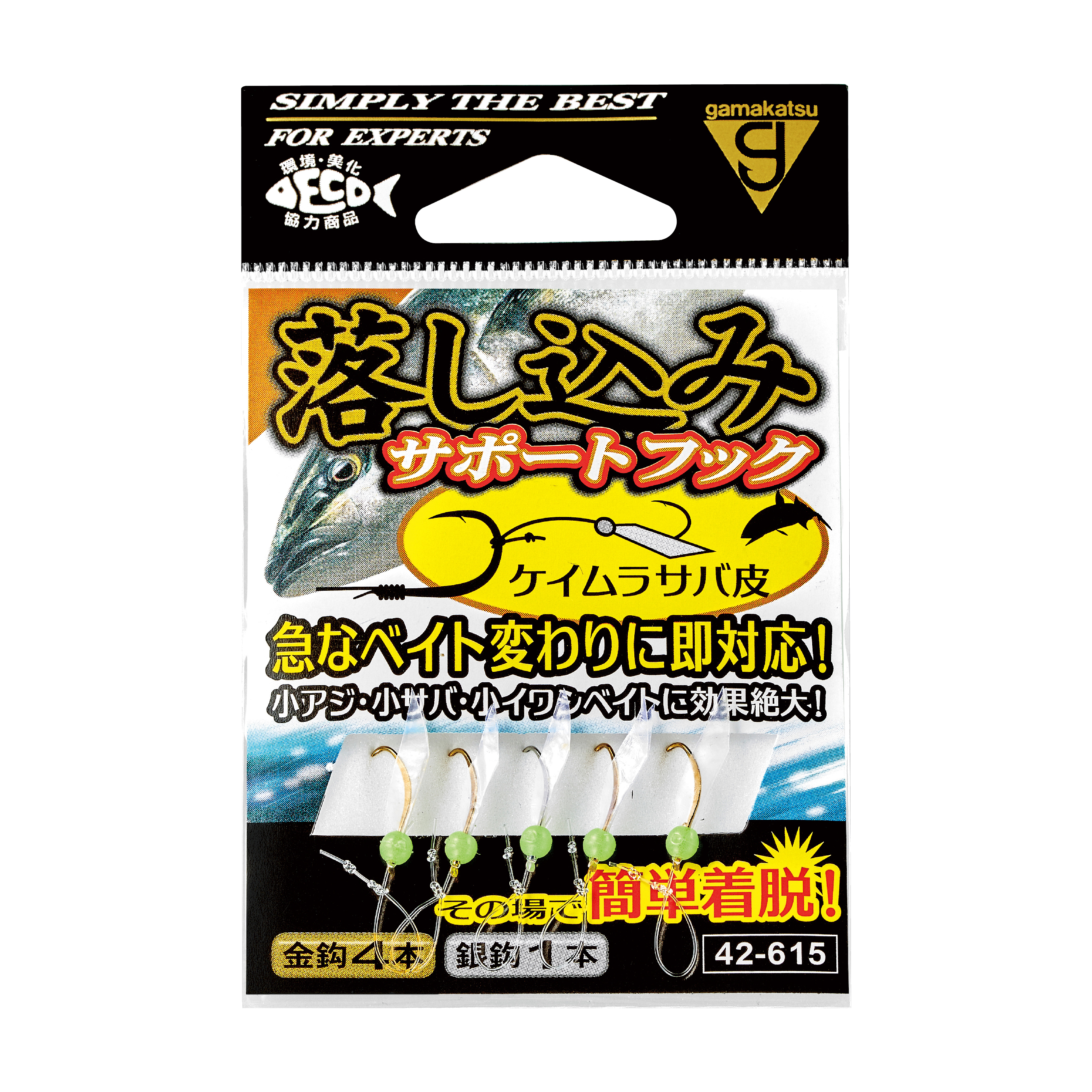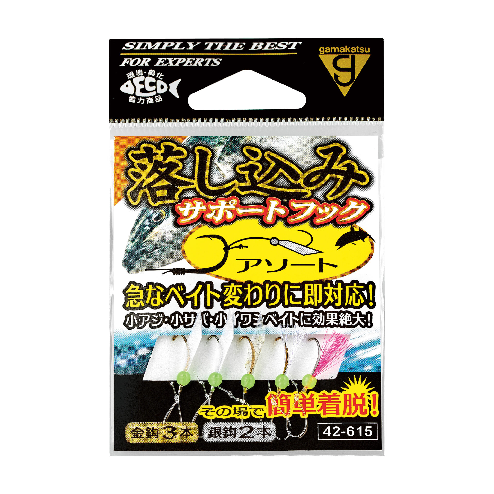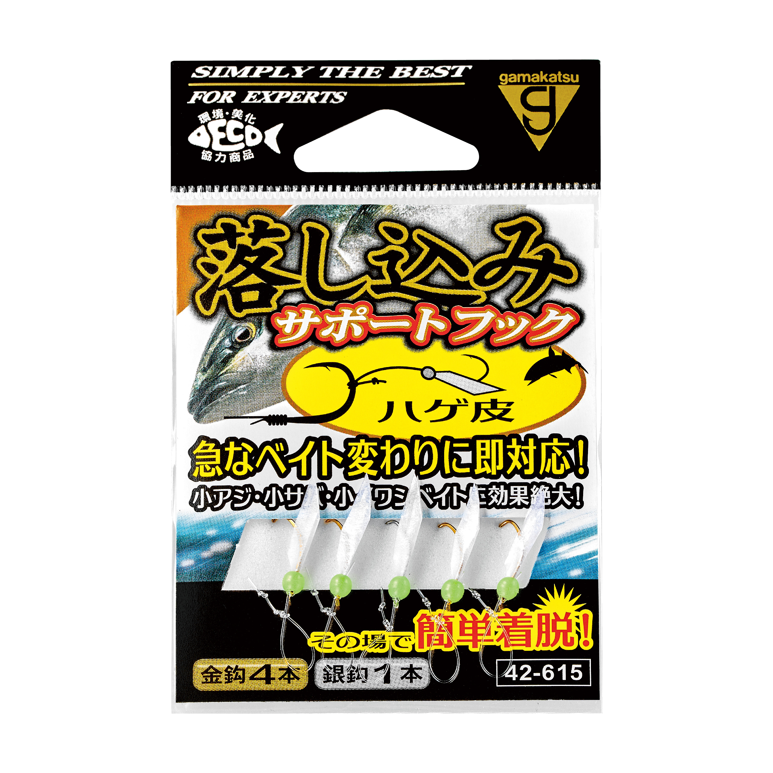 落し込みサビキに使用されている強靭な鈎では、どうしてもベイトの乗りが悪くなります。 仕掛の鈎に、この小さなサビキ鈎を後づけ装着することにより、警戒するベイトも思わず口を使います。 ベイトの乗りが悪い時、想定したベイトが違った時に効果を発揮!急なベイト変わりや、潮具合でベイトが付かない時に効果絶大のサポートフックです。ユーザー様から要望を多数いただいた、小アジベイトに効果の高い「ハゲ皮」、晴天時や小型ベイト全般に効果の高い「ケイムラサバ皮」、あらゆる状況に対応可能な「アソート」の3種を新たに追加しました。
