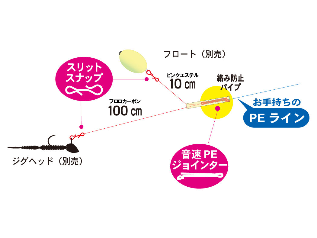 お手持ちのフロートとルアーをセットしてご使用ください。