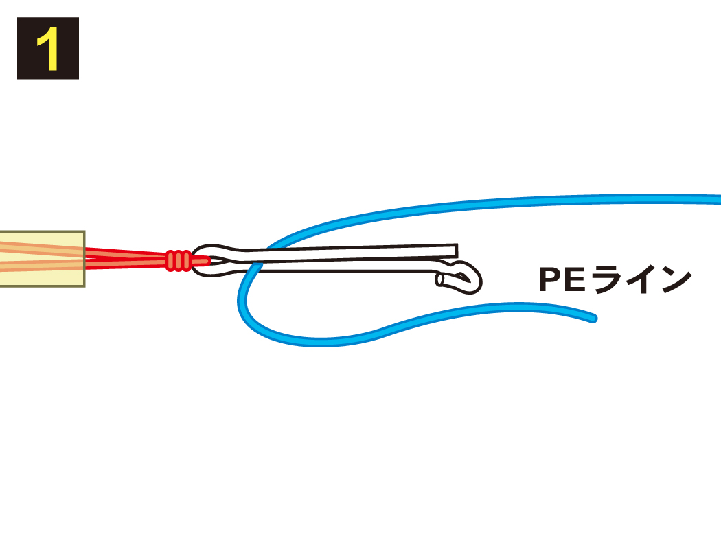 1.PEラインを軸間に(できるだけ奥よりに)挟みます。