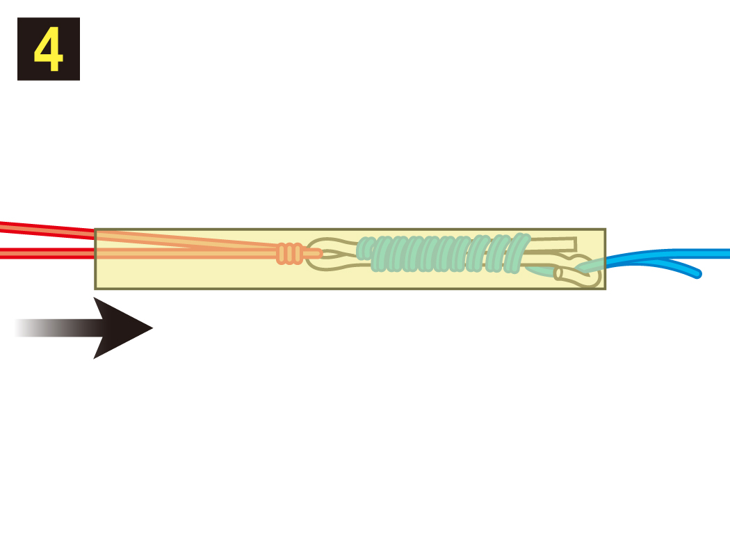 3.引っ張りながら管に通せばPEラインのセットは完了です。