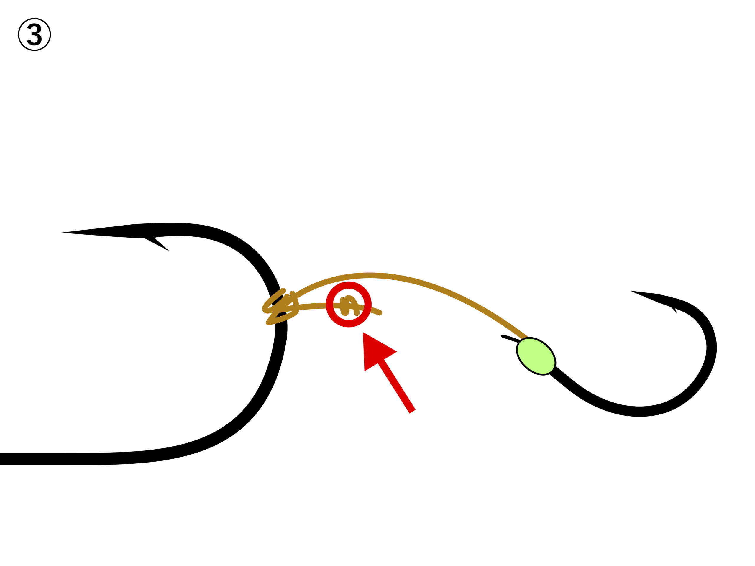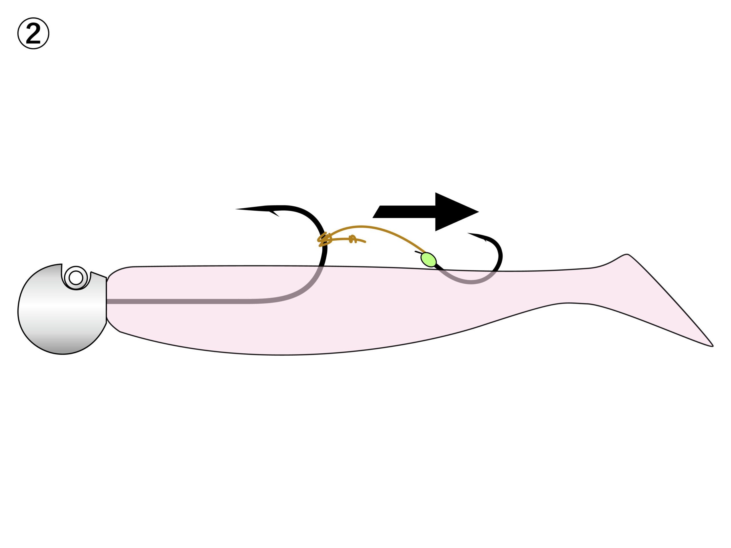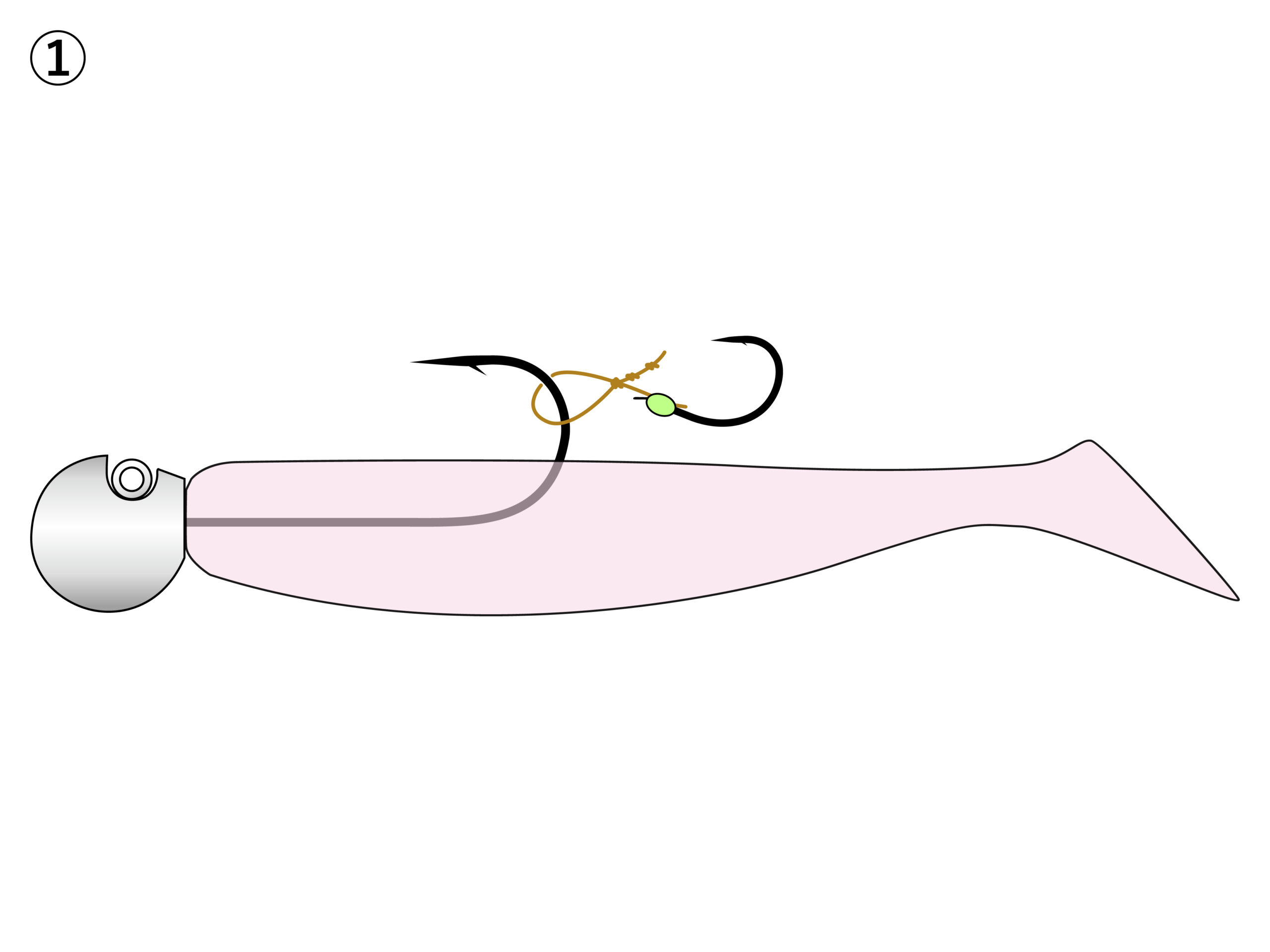 1.鬼爪のライン(輪)をジグヘッドのフックに掛けます。