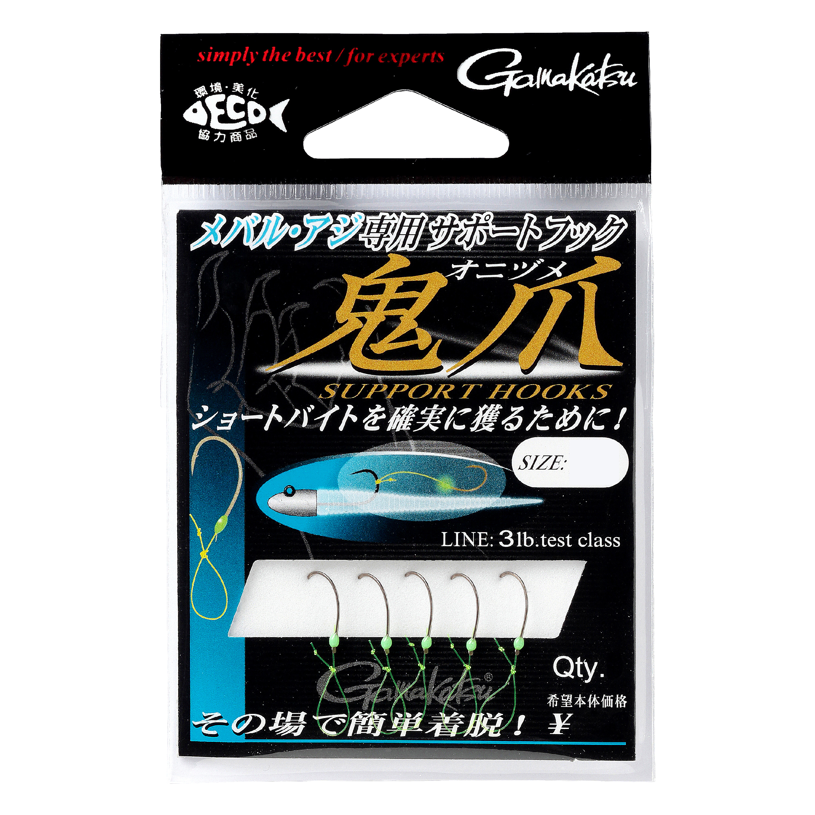 キジハタやチヌ、マダイなどをジグヘッドで狙うミドルゲームに最適なサポートフックです。チヌ鈎を採用し大物にも対応します。夜光塗りにより、ナイトゲームにも効果を発揮します。