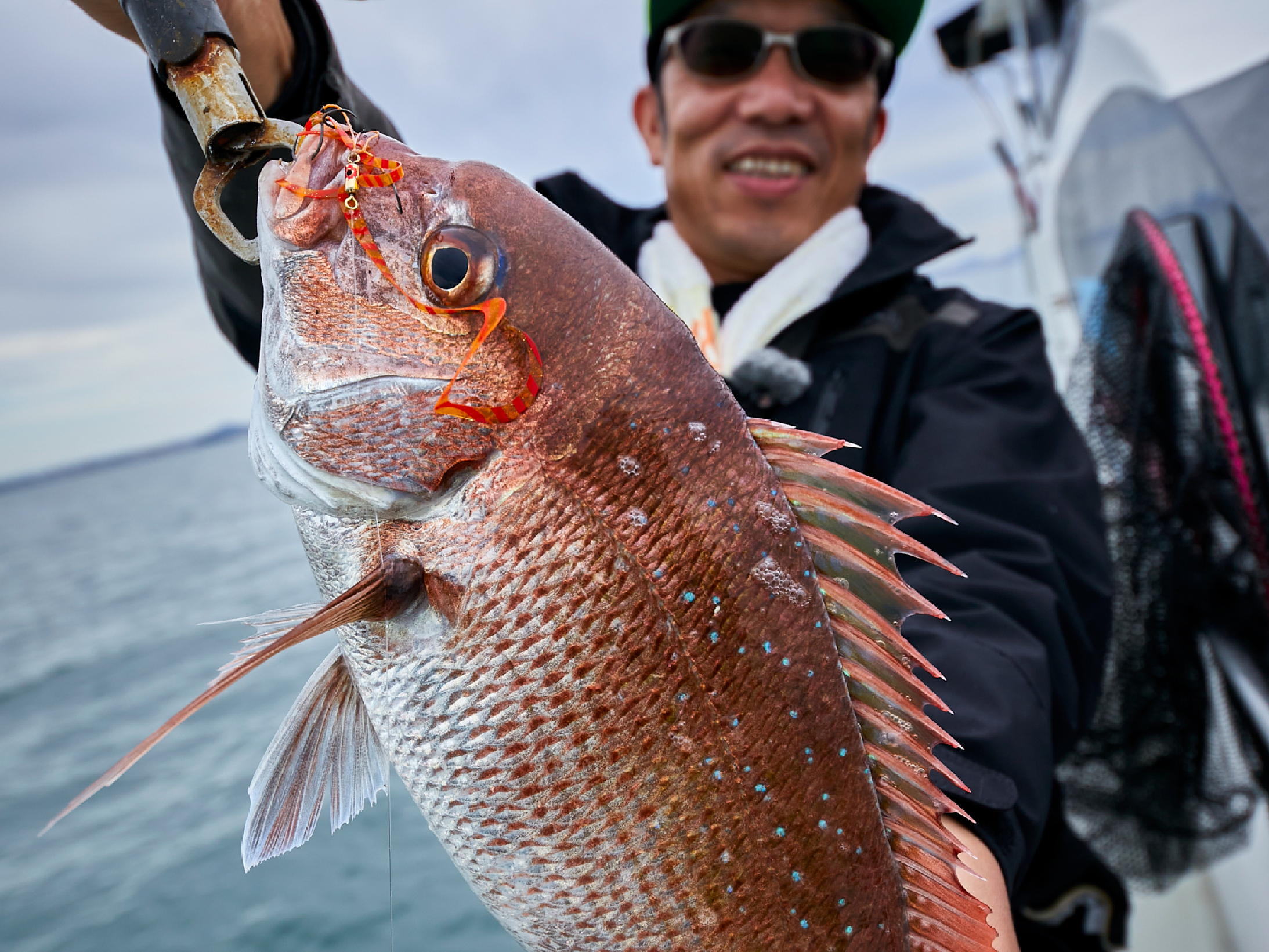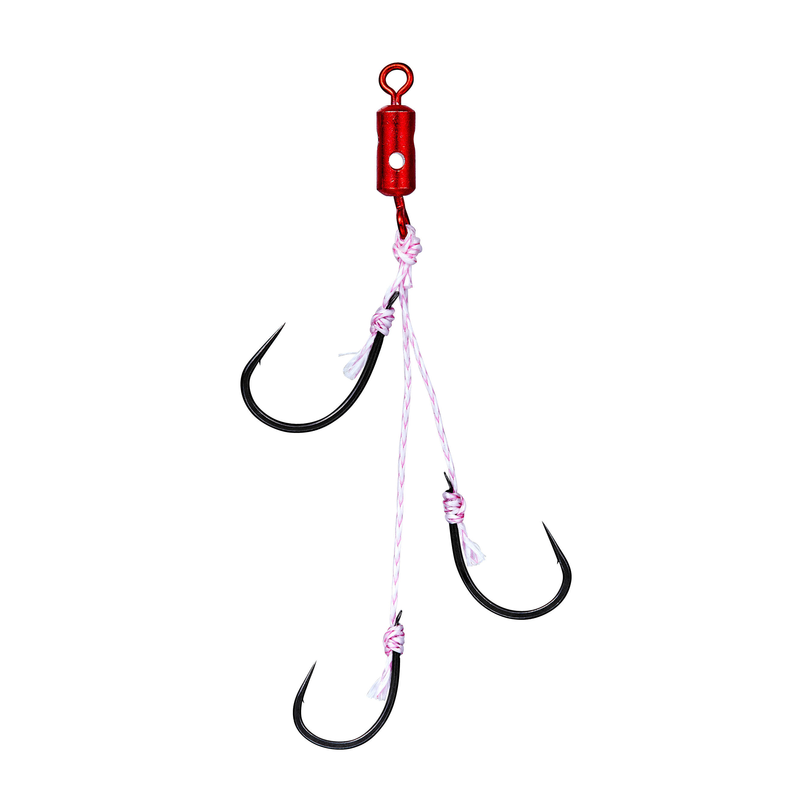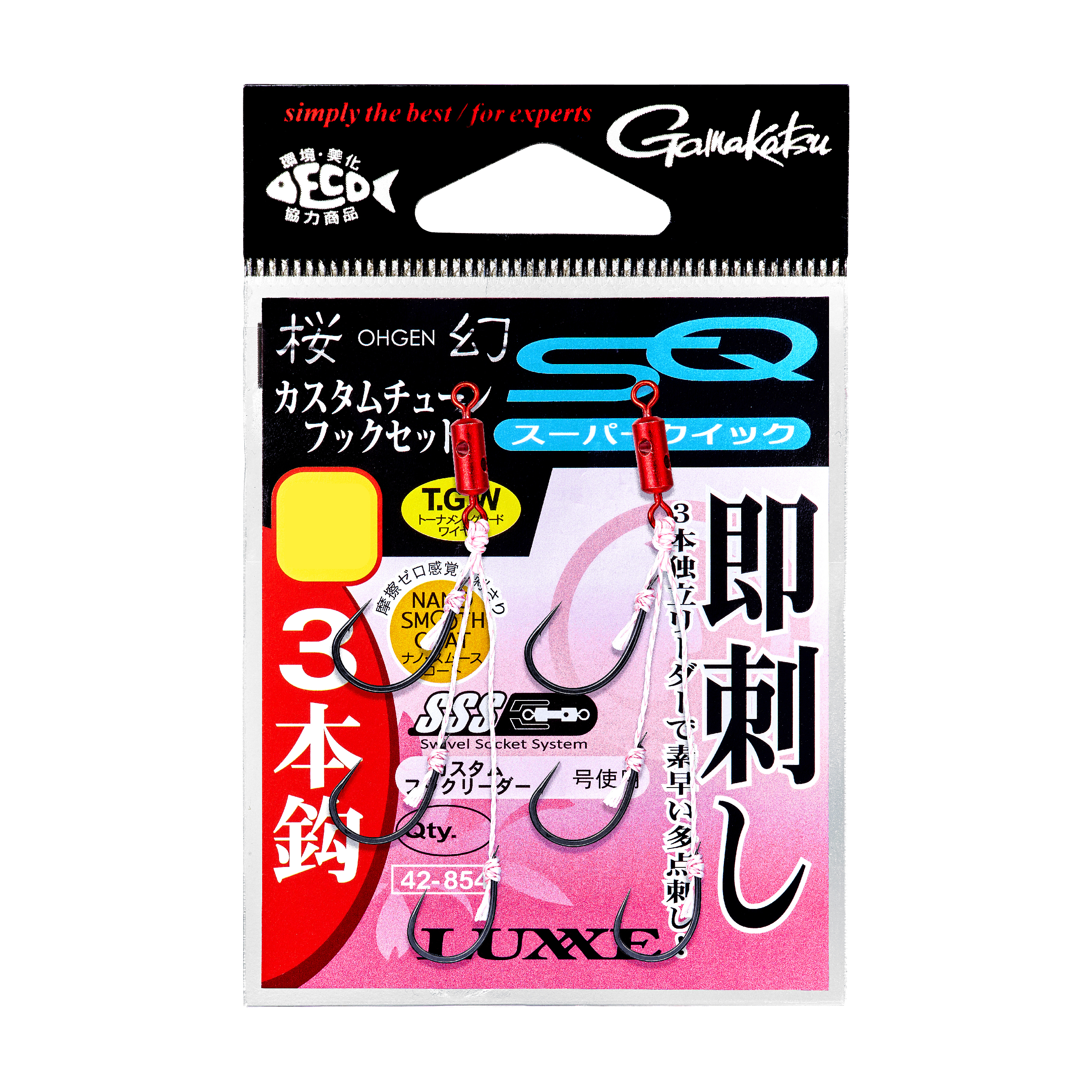 初期掛かりの非常に早い、スーパークイックをカスタムスイベルSSHにダイレクトノットで接続した理想的なリグを実現。3本、4本とマルチフックに特化したフックセット。カスタムスイベルへのダイレクトノットならではの口元フッキングで、キャッチ率アップを図りました。