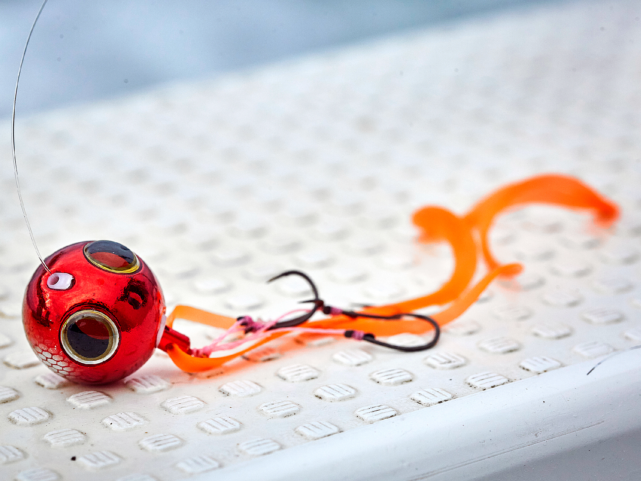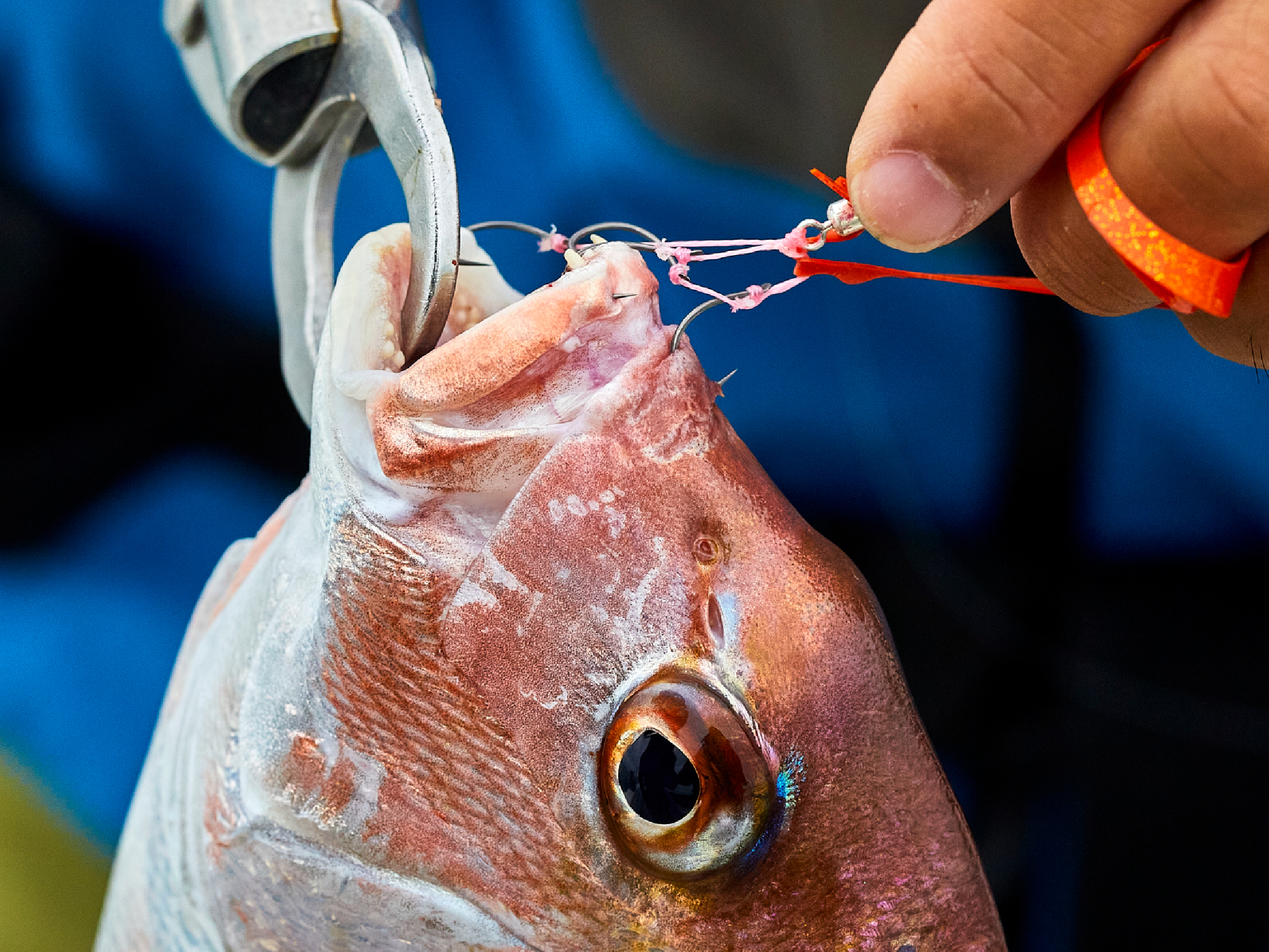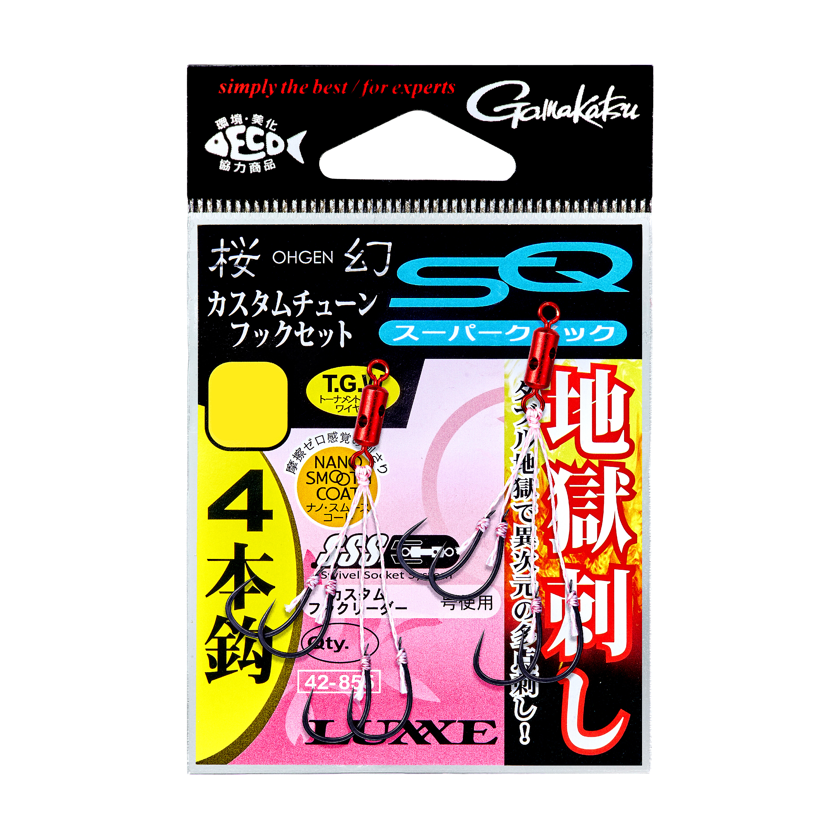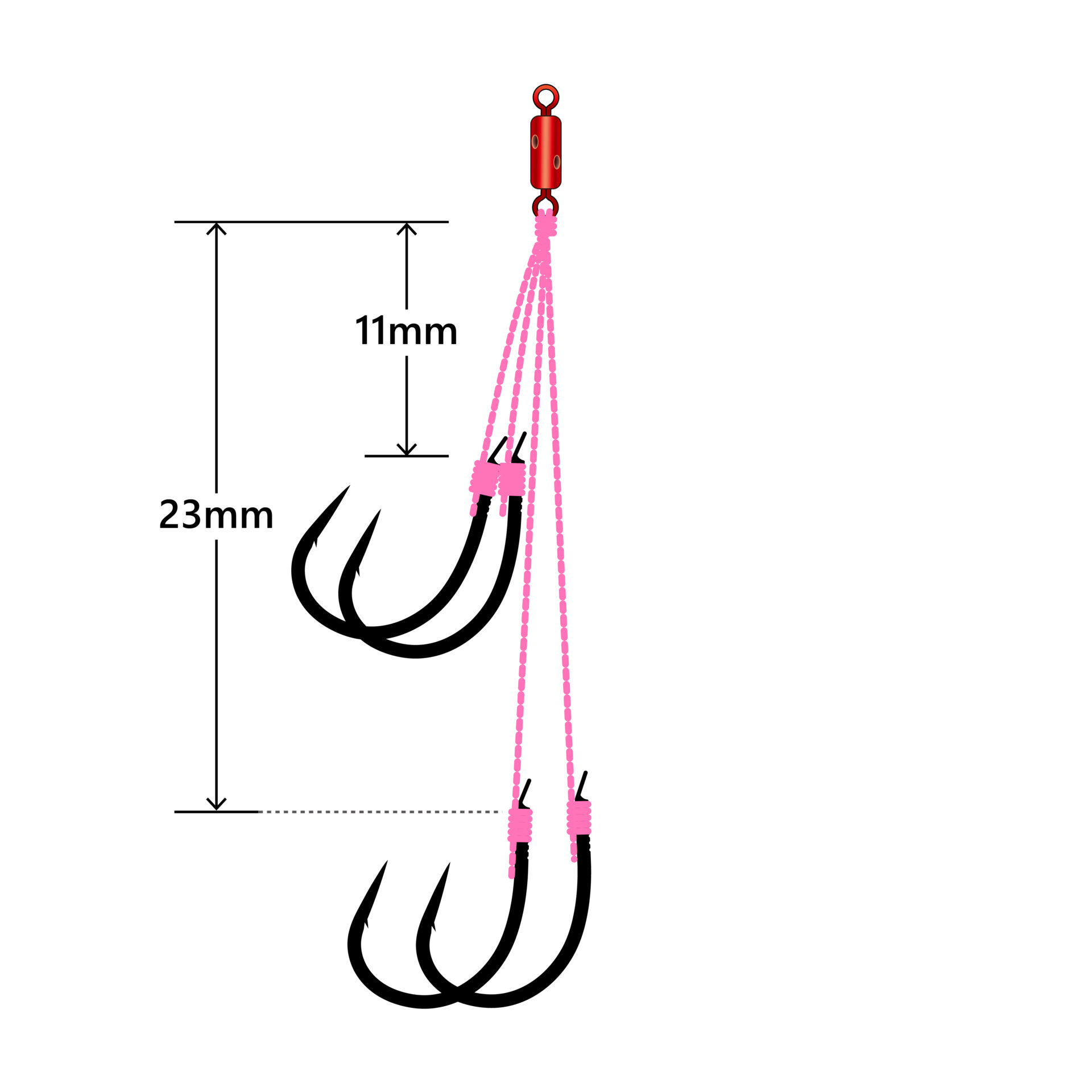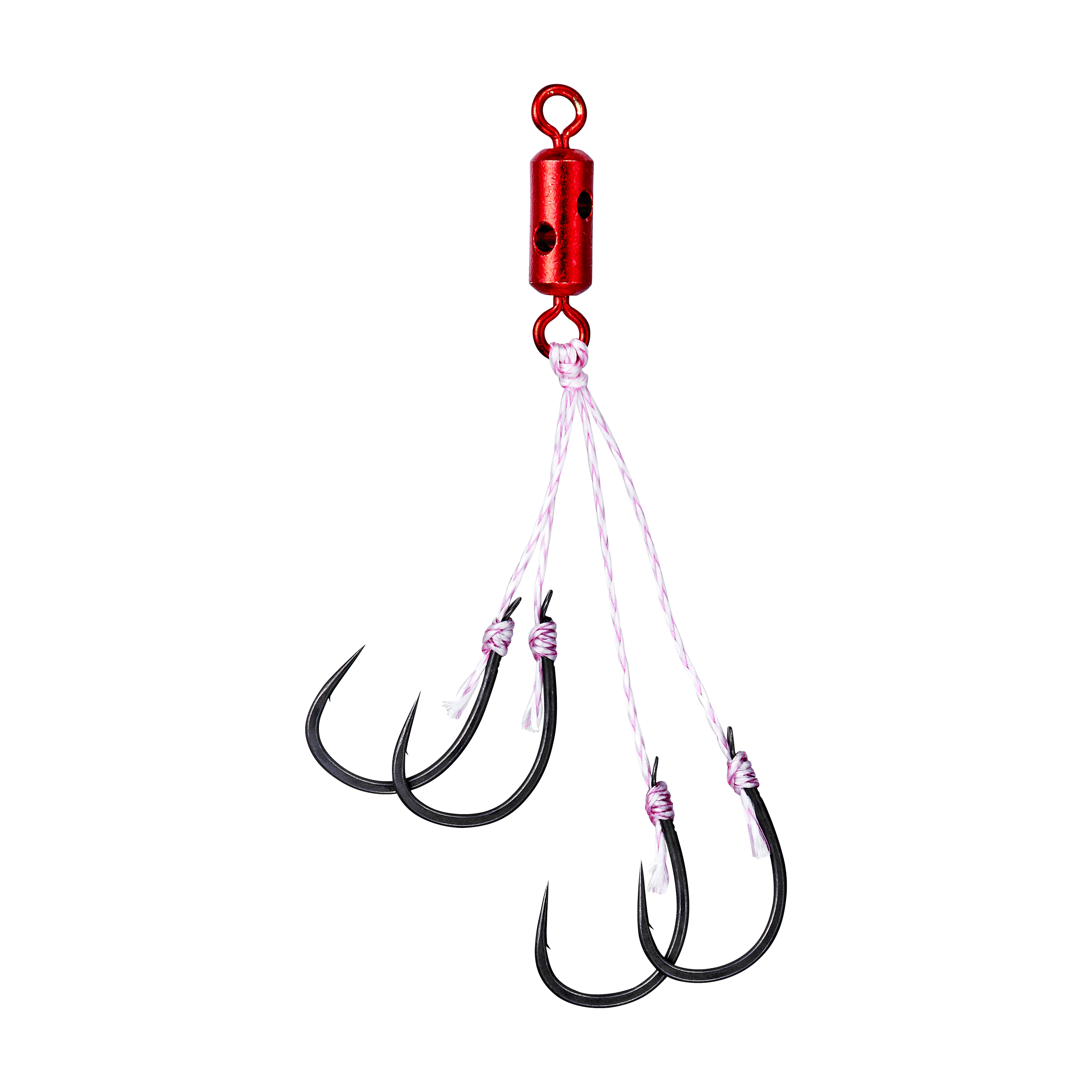 初期掛かりの非常に早い、スーパークイックをカスタムスイベルSSHにダイレクトノットで接続した理想的なリグを実現。3本、4本とマルチフックに特化したフックセット。カスタムスイベルへのダイレクトノットならではの口元フッキングで、キャッチ率アップを図りました。