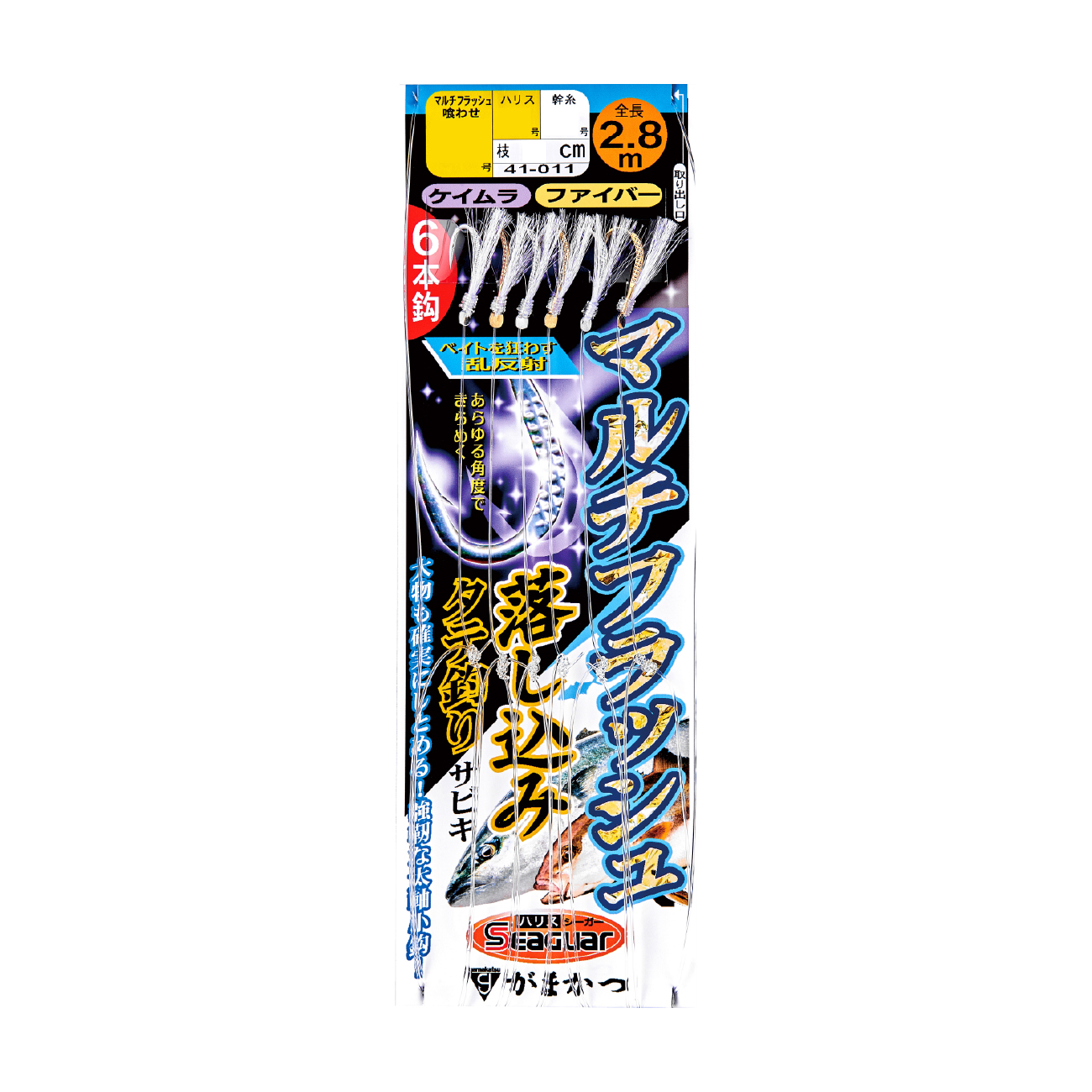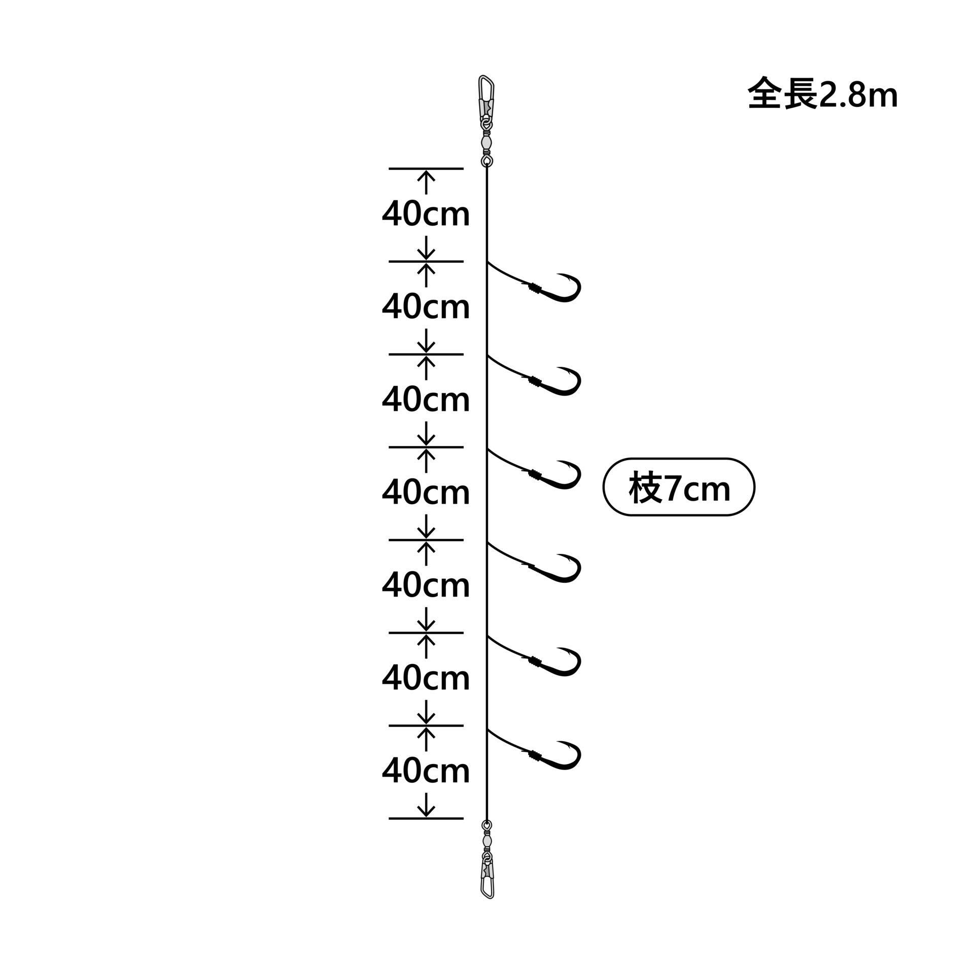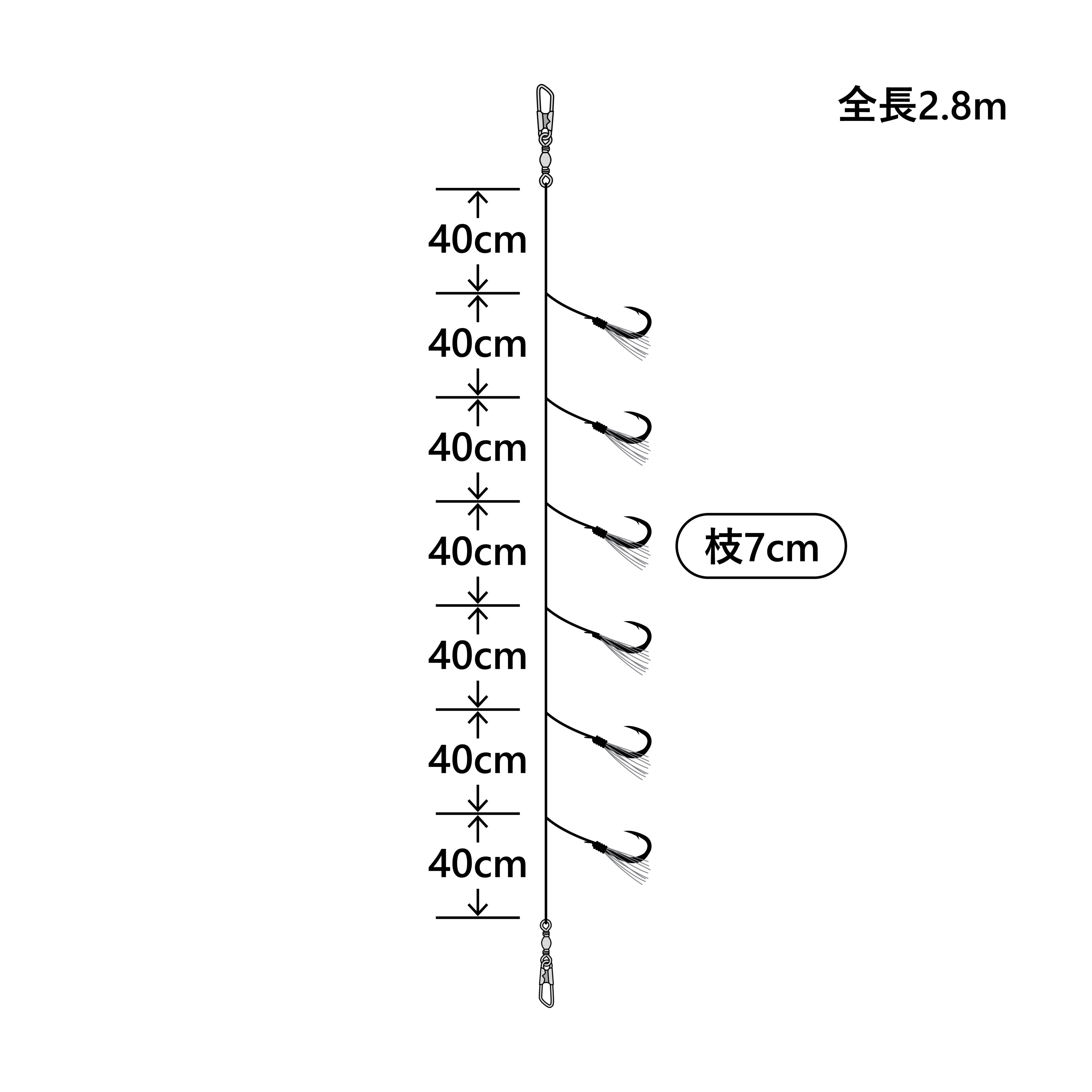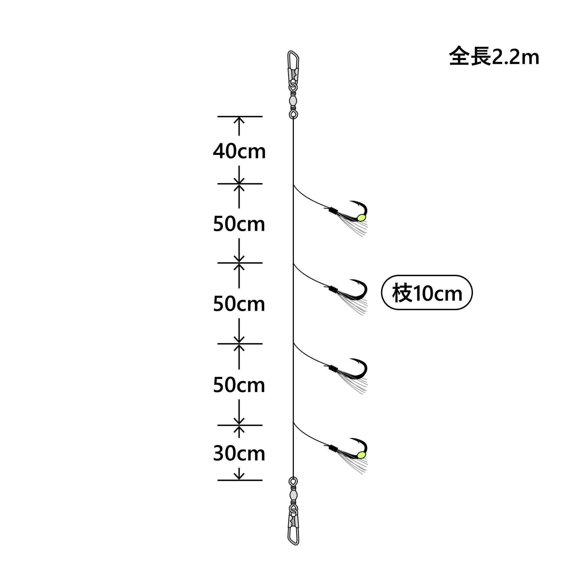 下向きに出した枝が落し込む際に広がり、ベイトの乗りを誘発。またハリスが折れ曲がらずに結節強度の低下を押さえます。カラ鈎仕様とファイバー仕様を状況に応じて使い分けください。