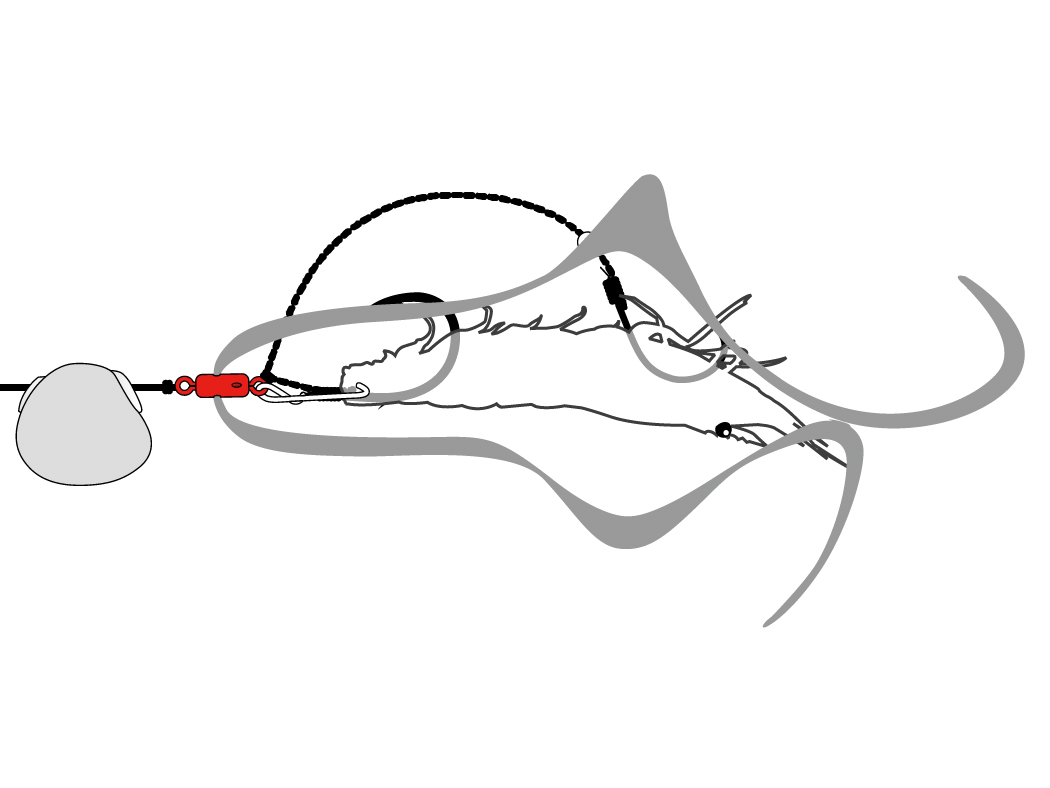カスタムスイベル仕様は鯛ラバ用ネクタイを取り付けたエビラバにも対応。