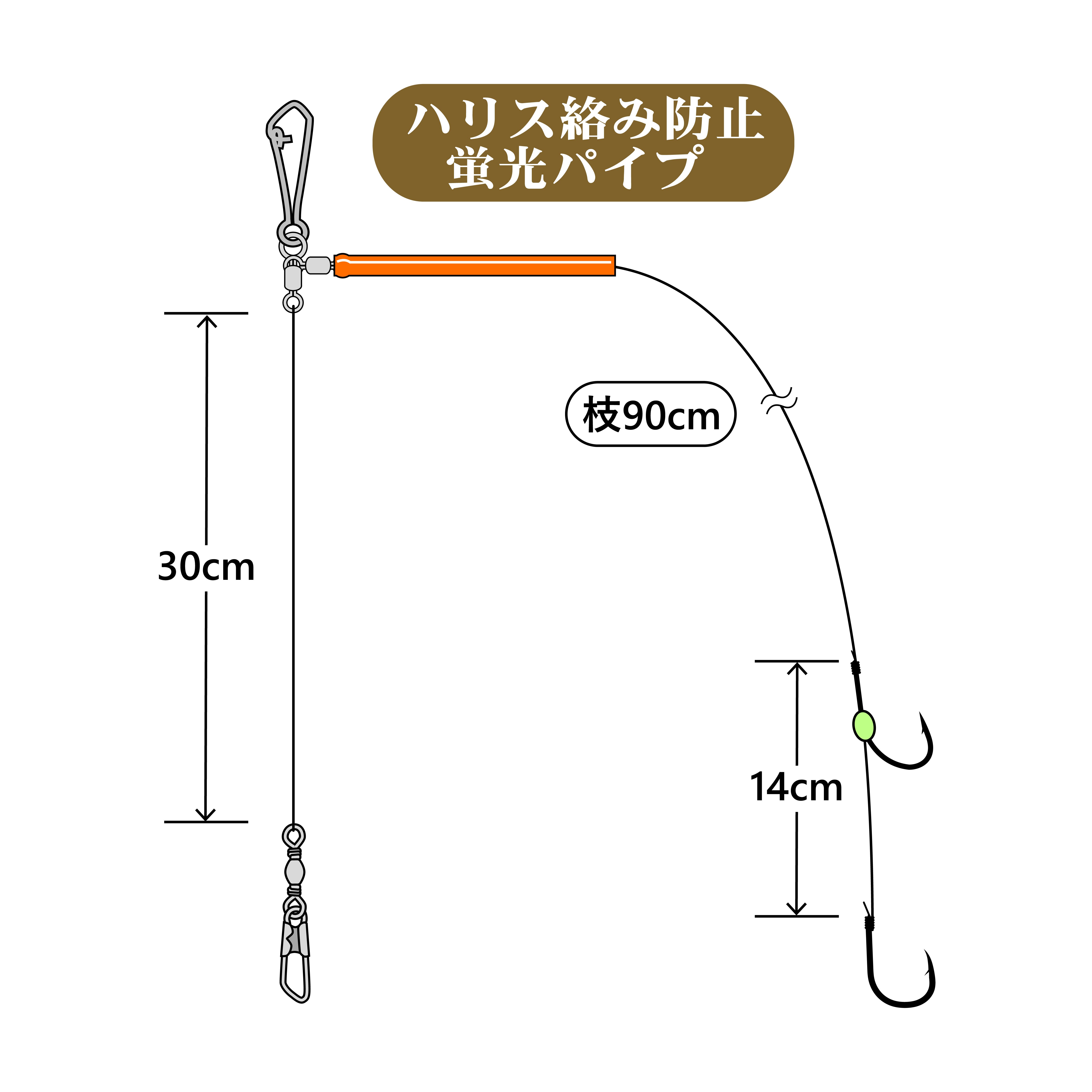 ハリス接続部の親子サルカンより上部がなく、直接リール糸のリーダーを接続できるため、ハリスのすぐ側まで竿に巻き込むことができ手返し抜群!! ショートロッドを使うライトタックルでの釣りも、喫水の近いマイボートでの釣りでも魚の取り込みや餌替えが楽々行えます。
