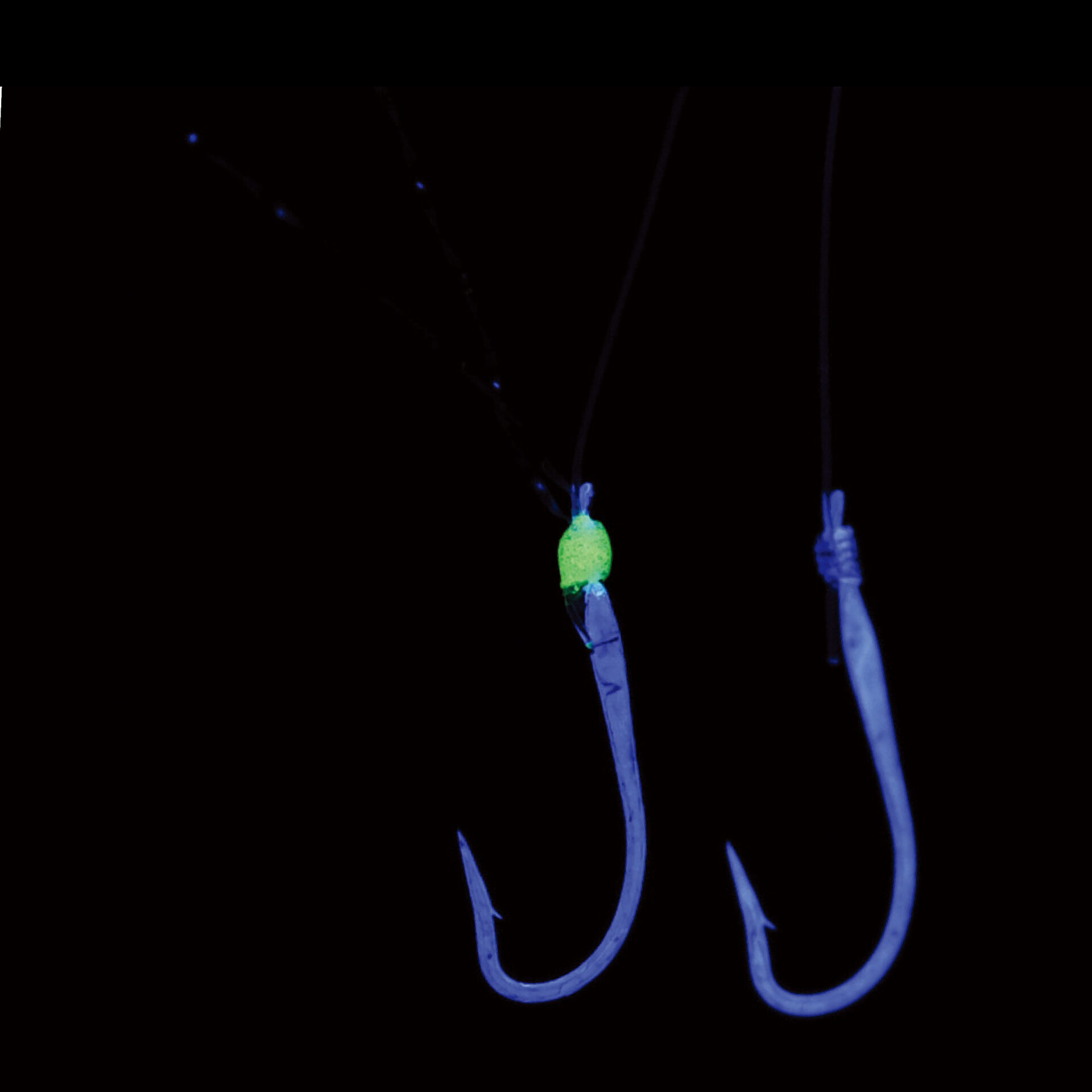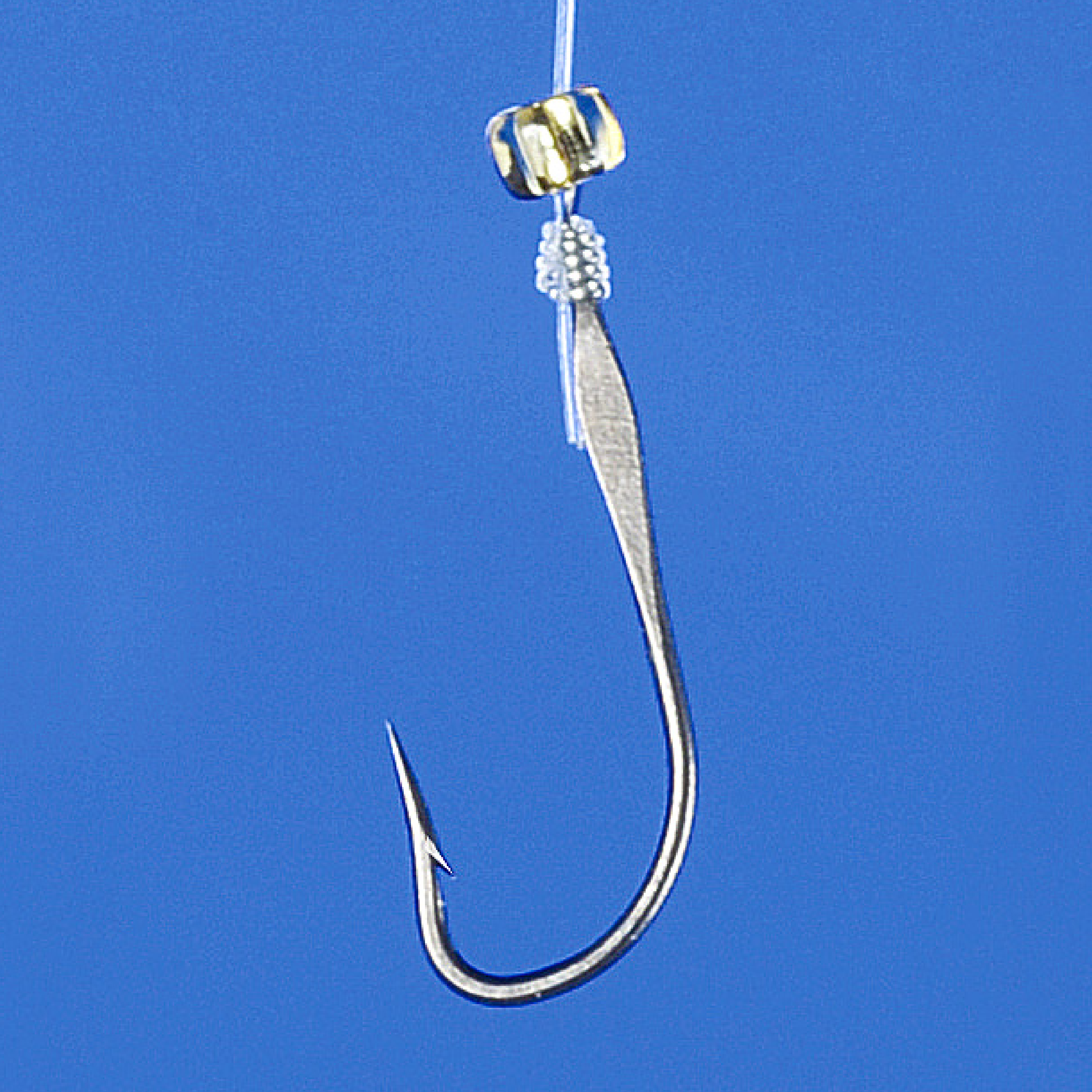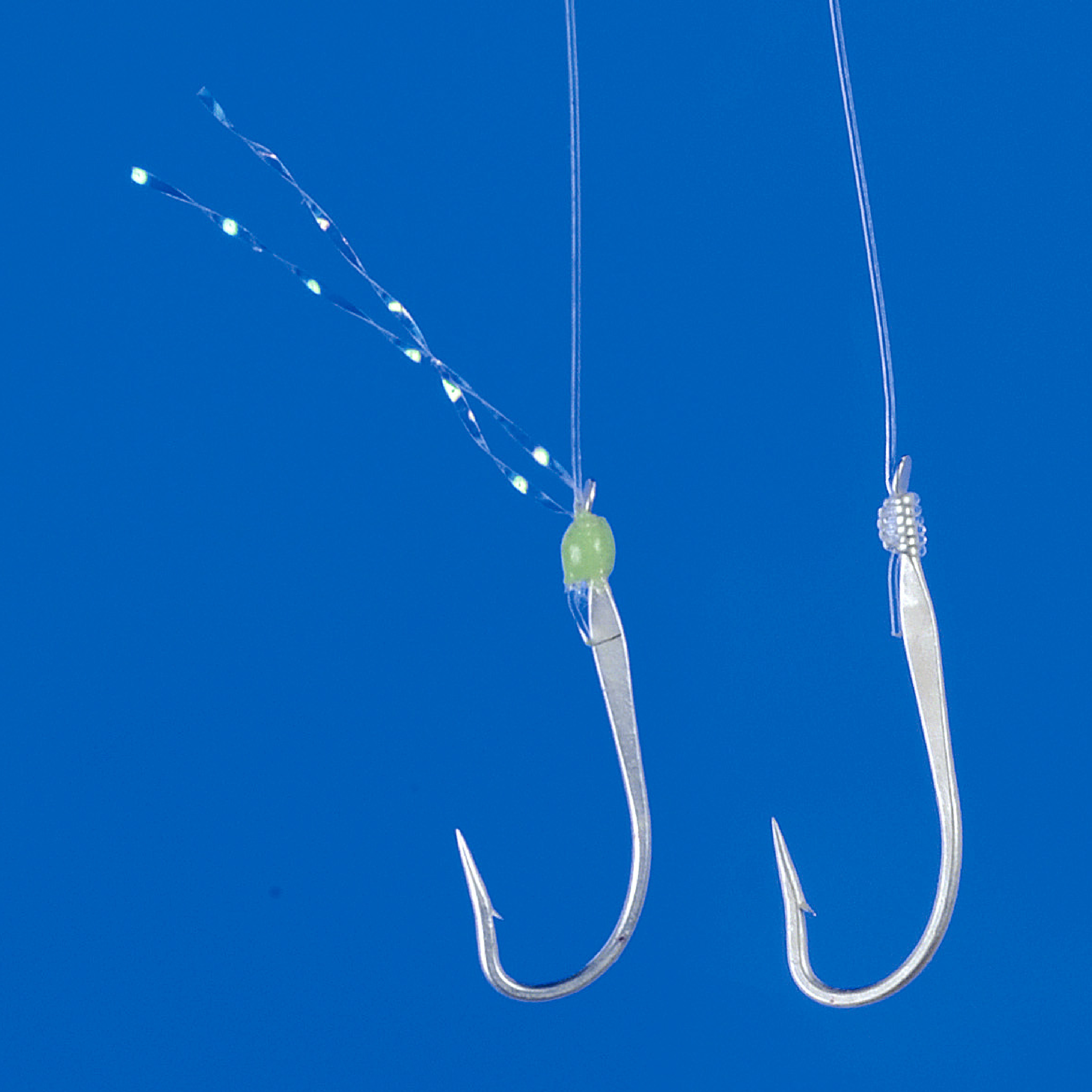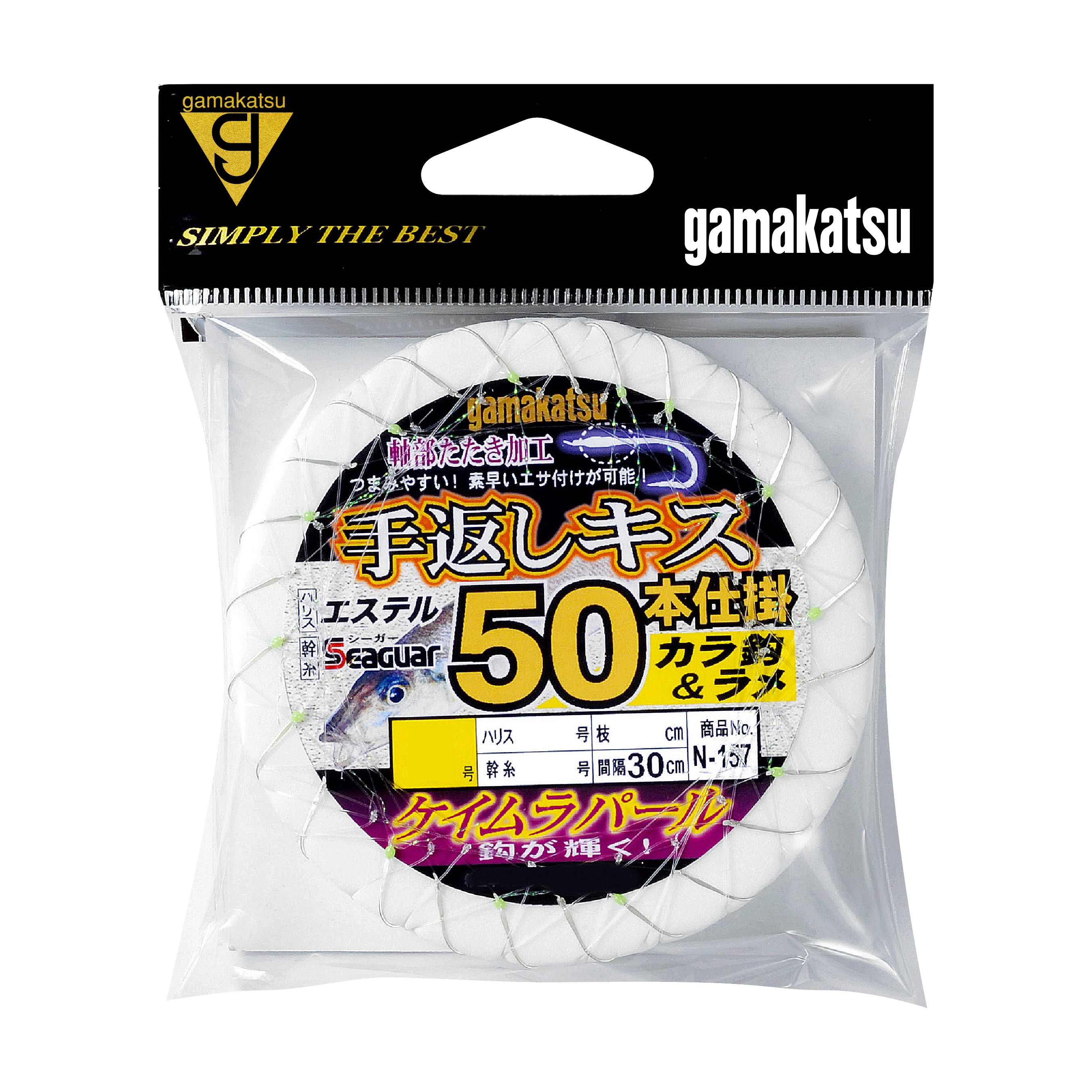 “ケイムラパールカラー”アピールを高める逆付ラメを施した鈎と、カラ鈎を交互に配置しました。