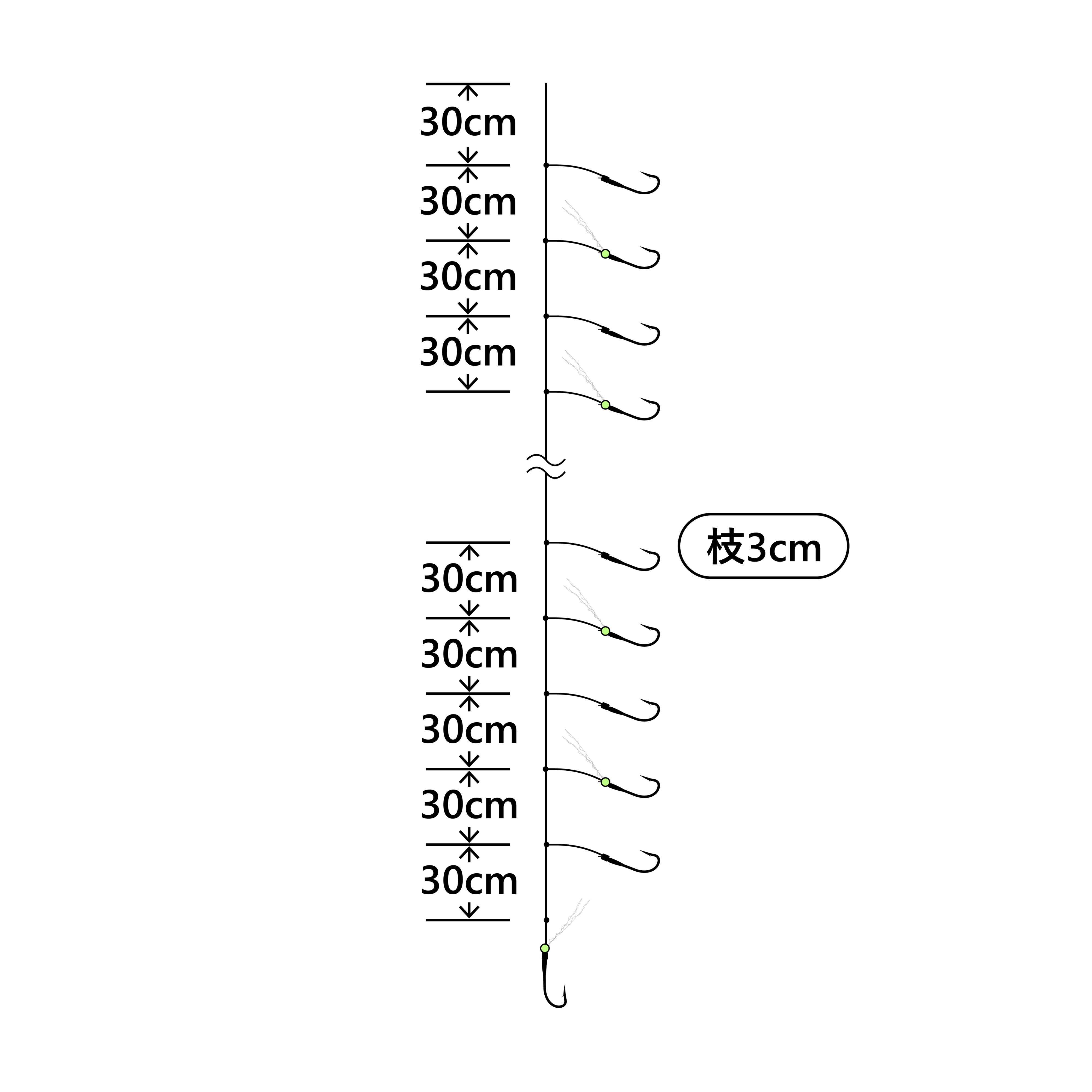 お好みの本数にカットして、別売の天秤オモリ、砂ずり仕掛に接続してご使用ください。