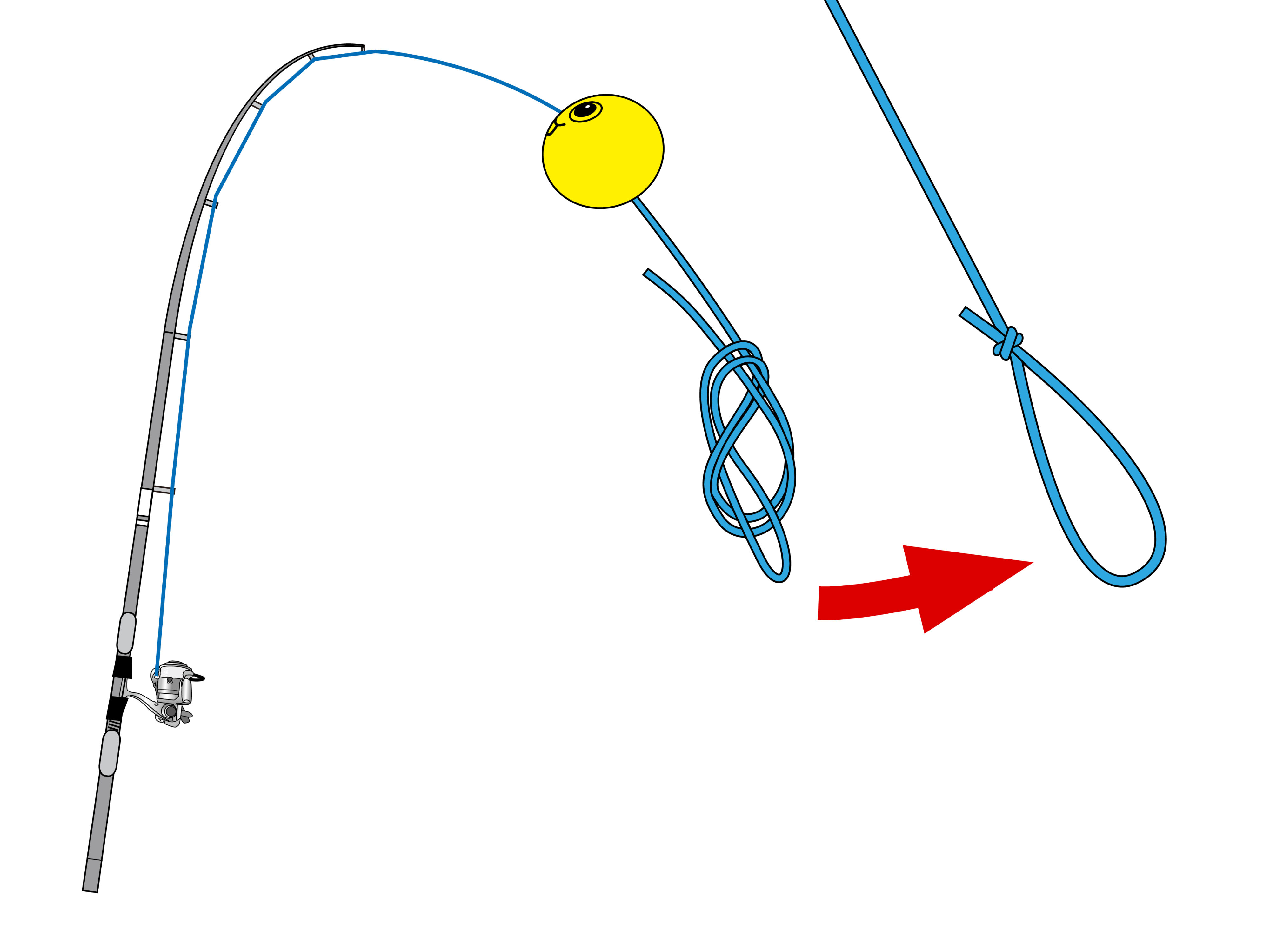 3.輪が作れたらそこへ仕掛のスナップを接続するだけ!お魚をたくさん釣ろう!