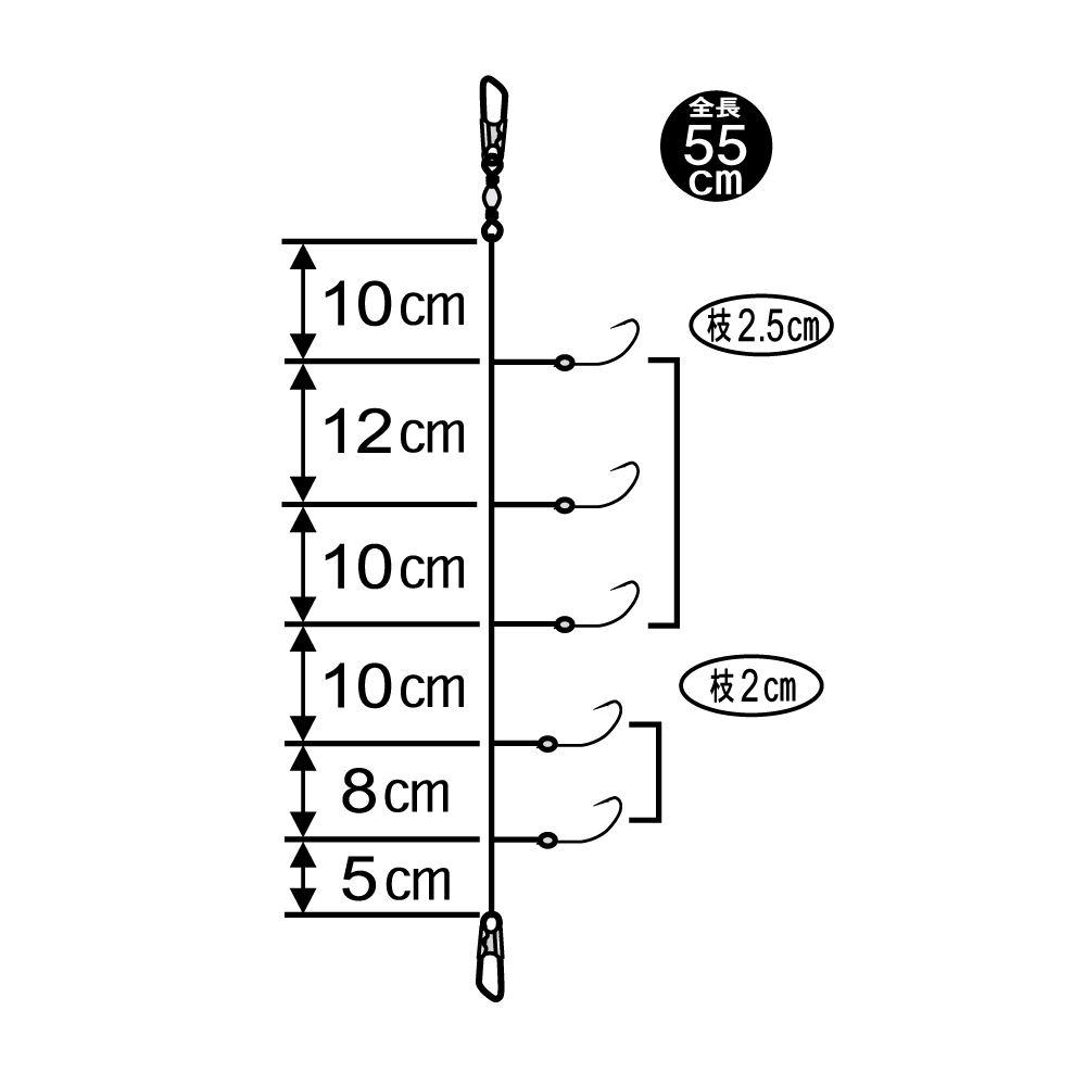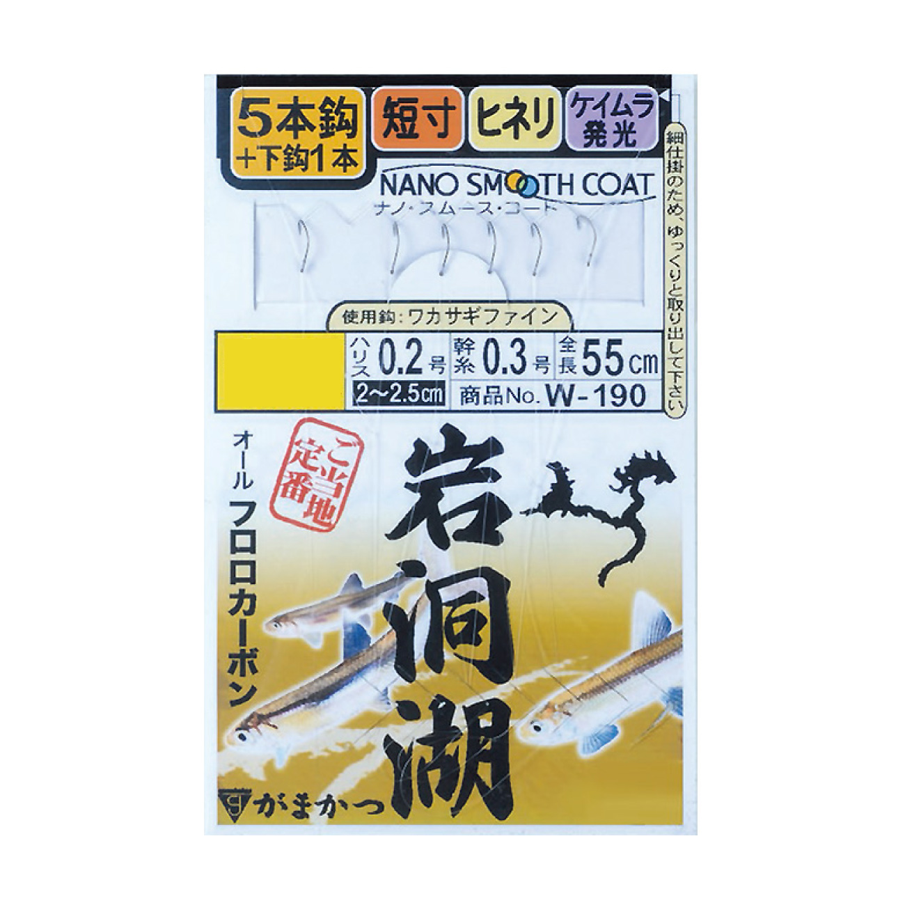 東北地域のワカサギ釣りのメジャースポットである岩洞湖、桧原湖での使用を想定した仕掛です。「ナノスムースコート鈎」に「ケイムラ留め」の5本鈎仕様。ワカサギ釣りでは主流となっている下鈎も付属。枝長は2cm、2.5cmとしてエサの動きに変化をつけ、中フカセにも対応!スレたワカサギにもアピールします。