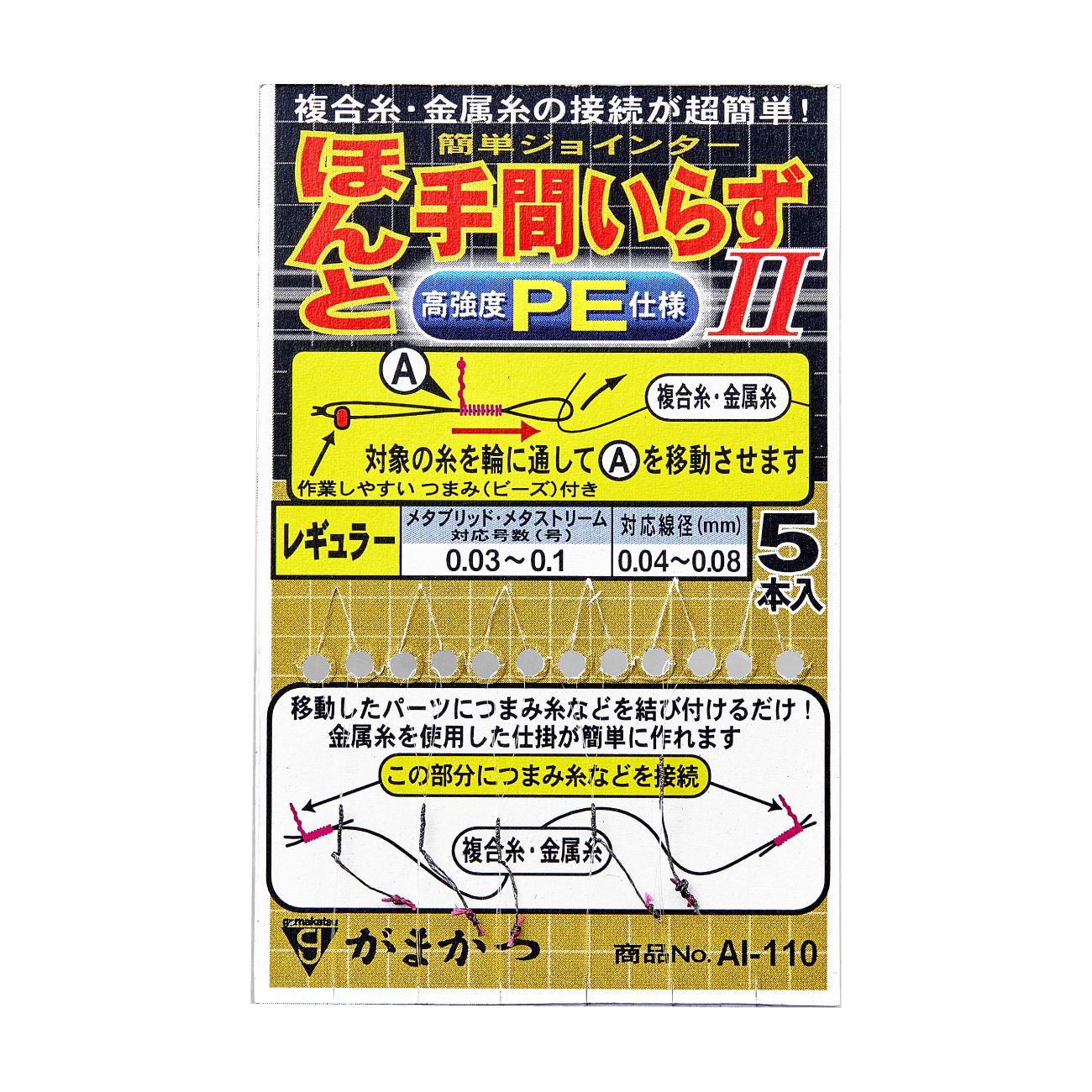 | AI-110 | 太糸用(2) | 0.15〜0.4 | 0.08〜0.11 | 5本 | 680 | 4549018711578 |