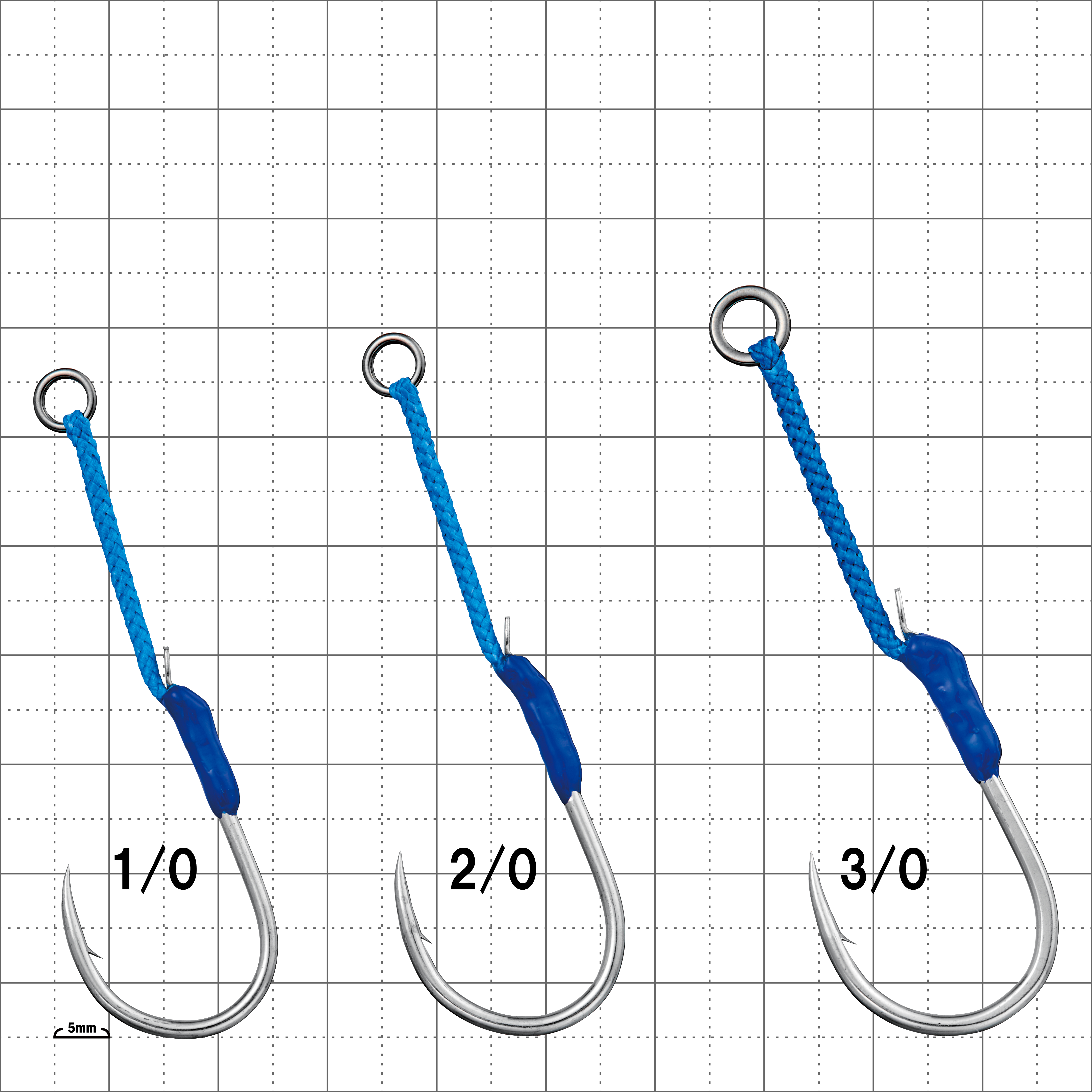 ホールド力を重視したジギングフック貫を近年のジギングシーンに合わせリニューアル。適度な張りでトラブルを防止するオリジナルの「アシストライン480」を使用し、根付糸、コーティング方法にも改良を施し、従来品に対し高強度化を実現しました。豊富なラインナップにより、PE1.5号クラスのライトジギング~PE4号クラスを用いたヘビージギングまで幅広く対応します。