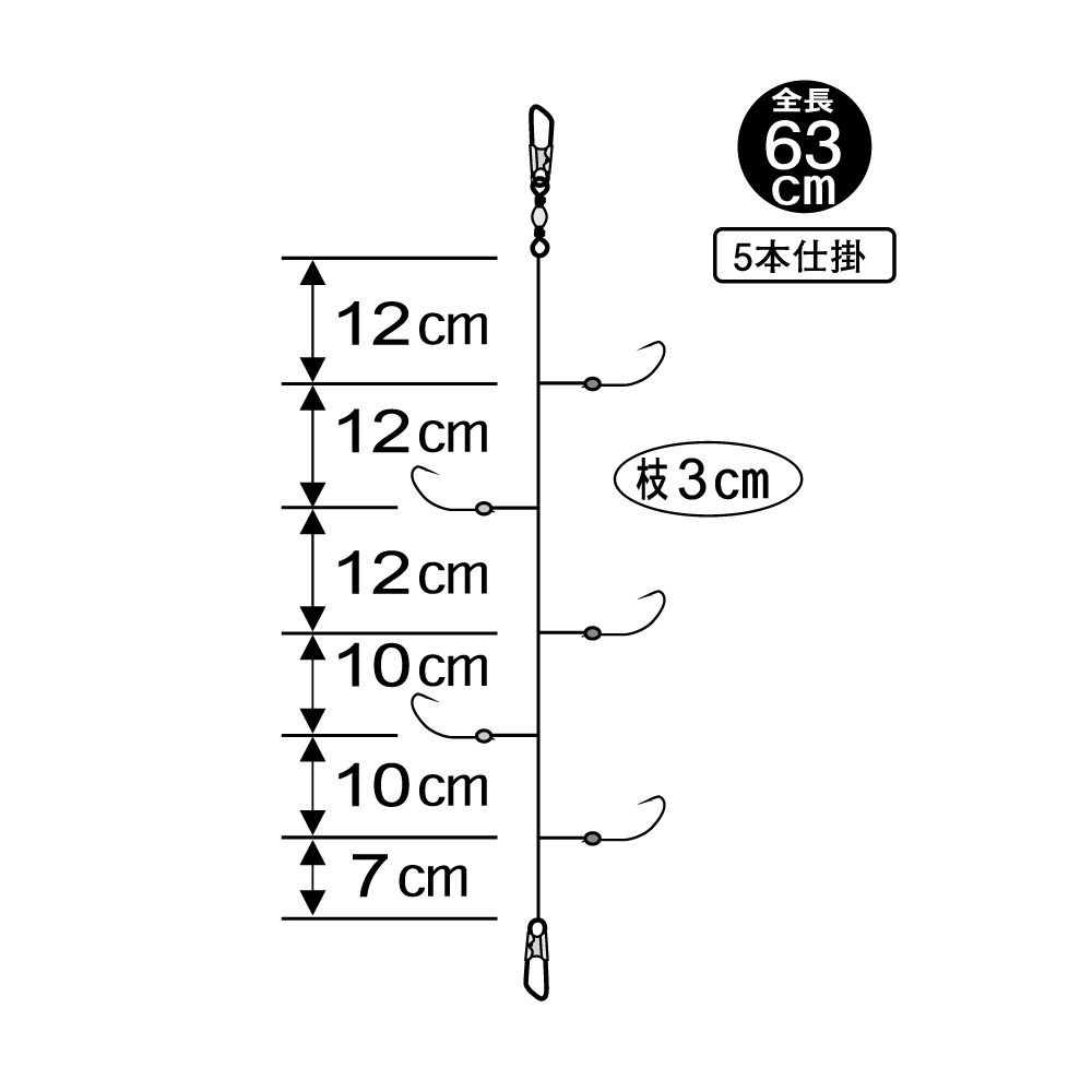 | 品名コード | 号数 | ハリス | 幹糸 | 全長 | 入数 | 希望本体価格(円) | JANコード |
