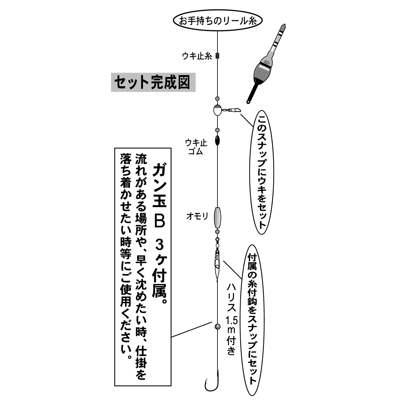 使用鈎:チヌ(白)1本(1組入)(予備鈎2本付)(ガン玉(B)3ヶ付属)