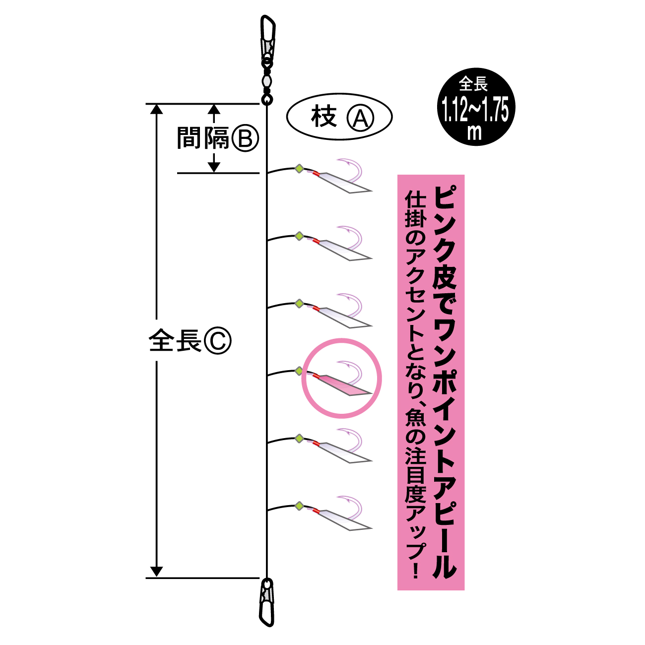 | 品名コード | 号数 | ハリス | 幹糸 | 枝寸 | 間隔 | 全長 | 入数 | 希望本体価格(円) | JANコード |