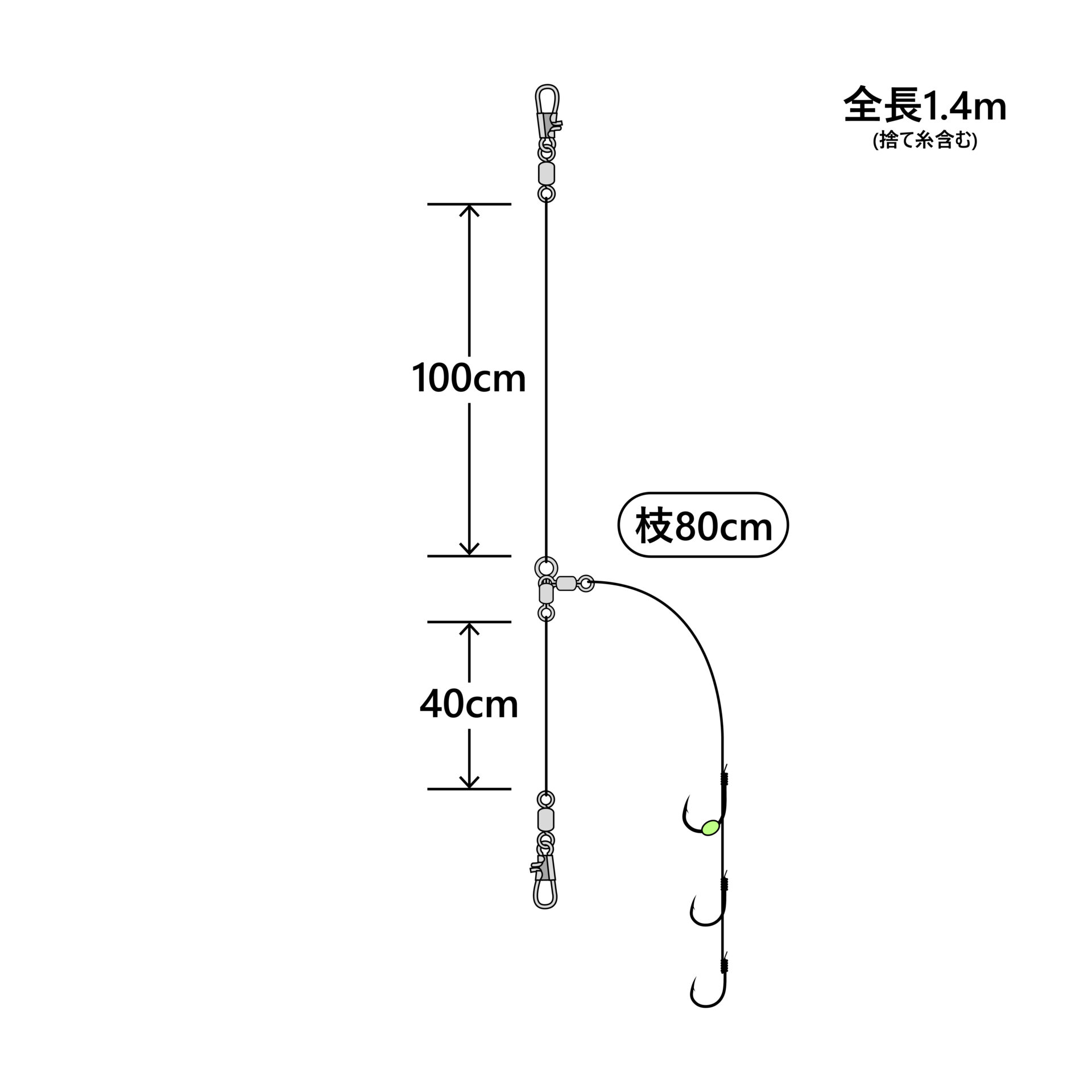 | 品名コード | 号数 | ハリス | 幹糸 | 捨て糸 | 全長 | 入数 | 希望本体価格(円) | JANコード |