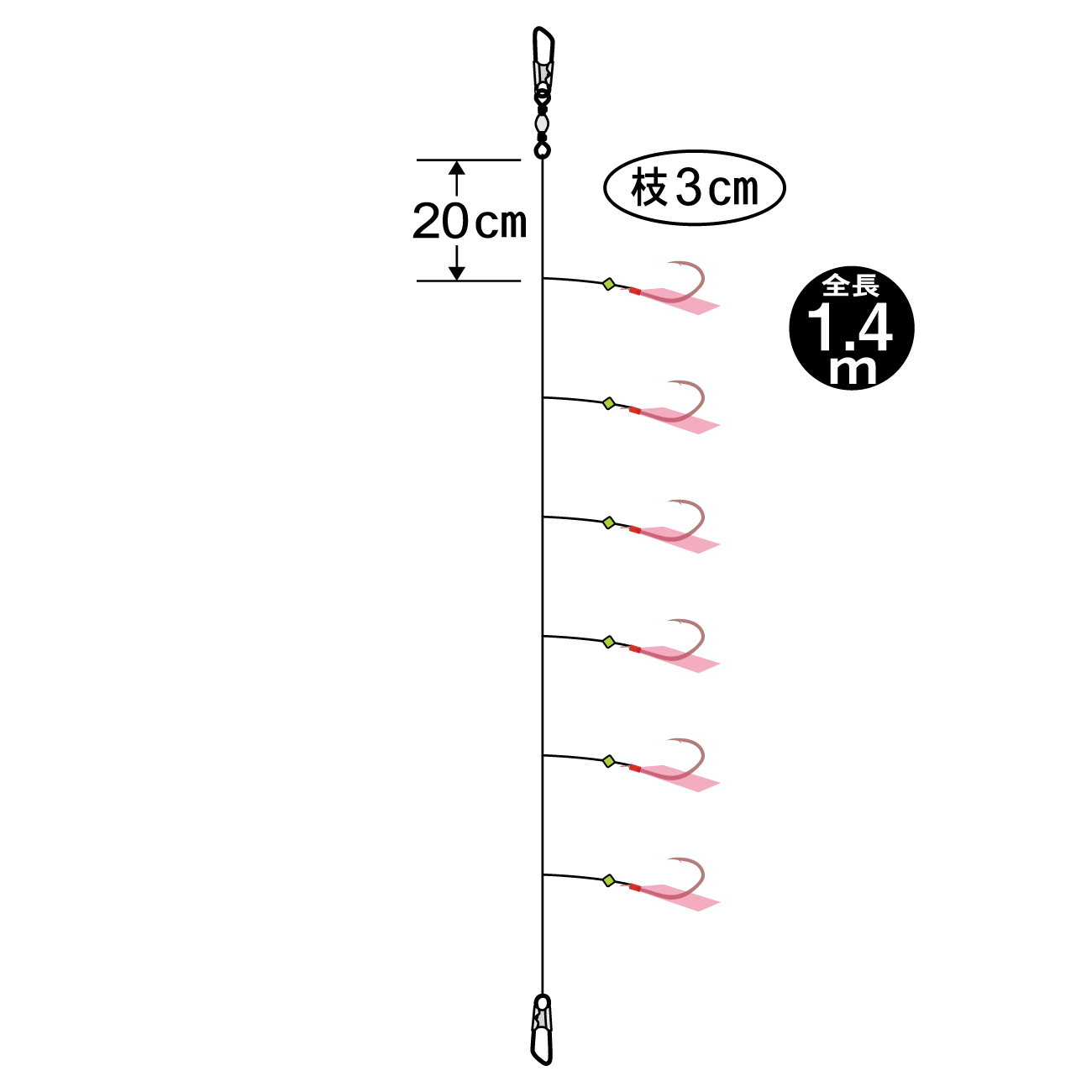 | 品名コード | 号数 | ハリス | 幹糸 | 枝寸 | 間隔 | 全長 | 入数 | 希望本体価格(円) | JANコード |