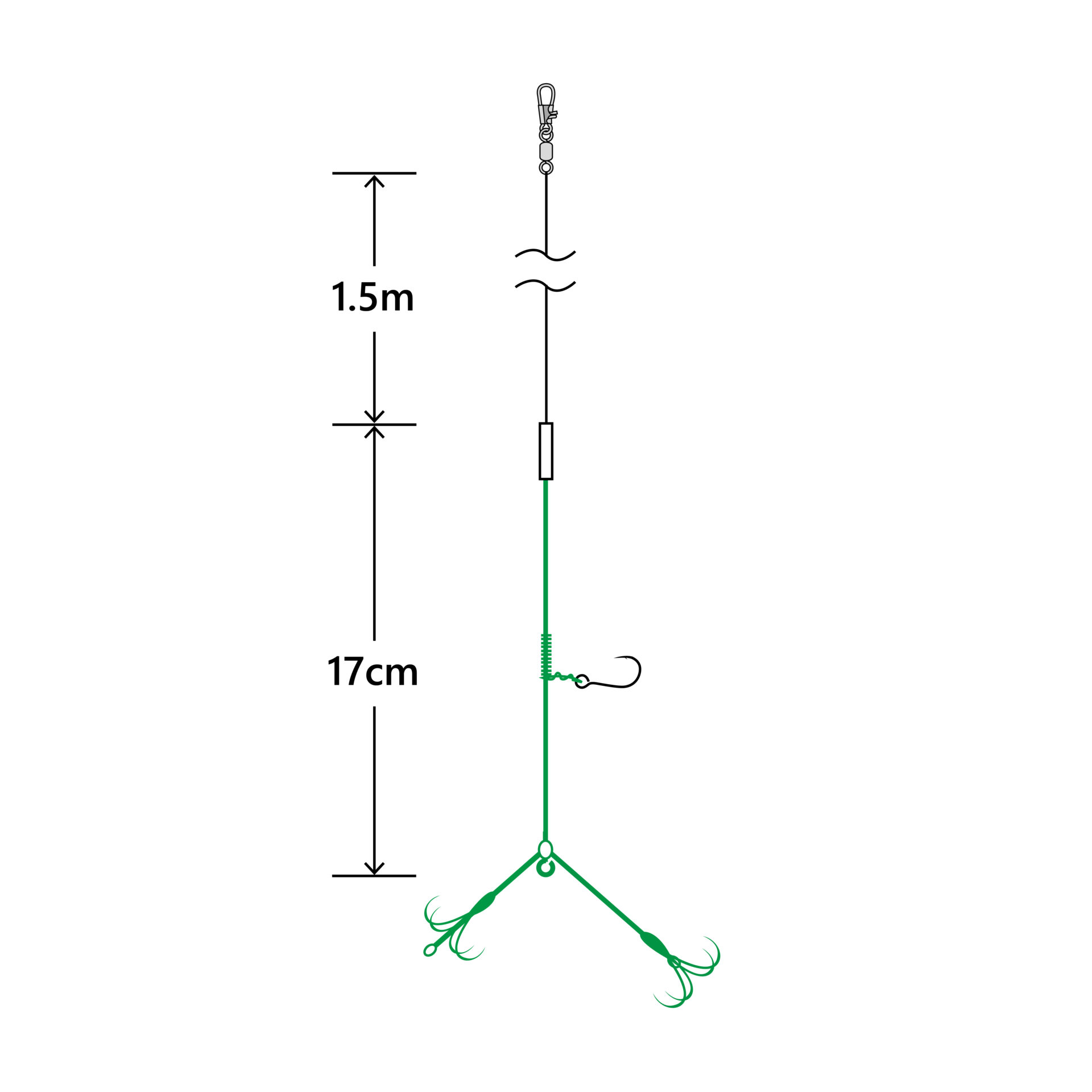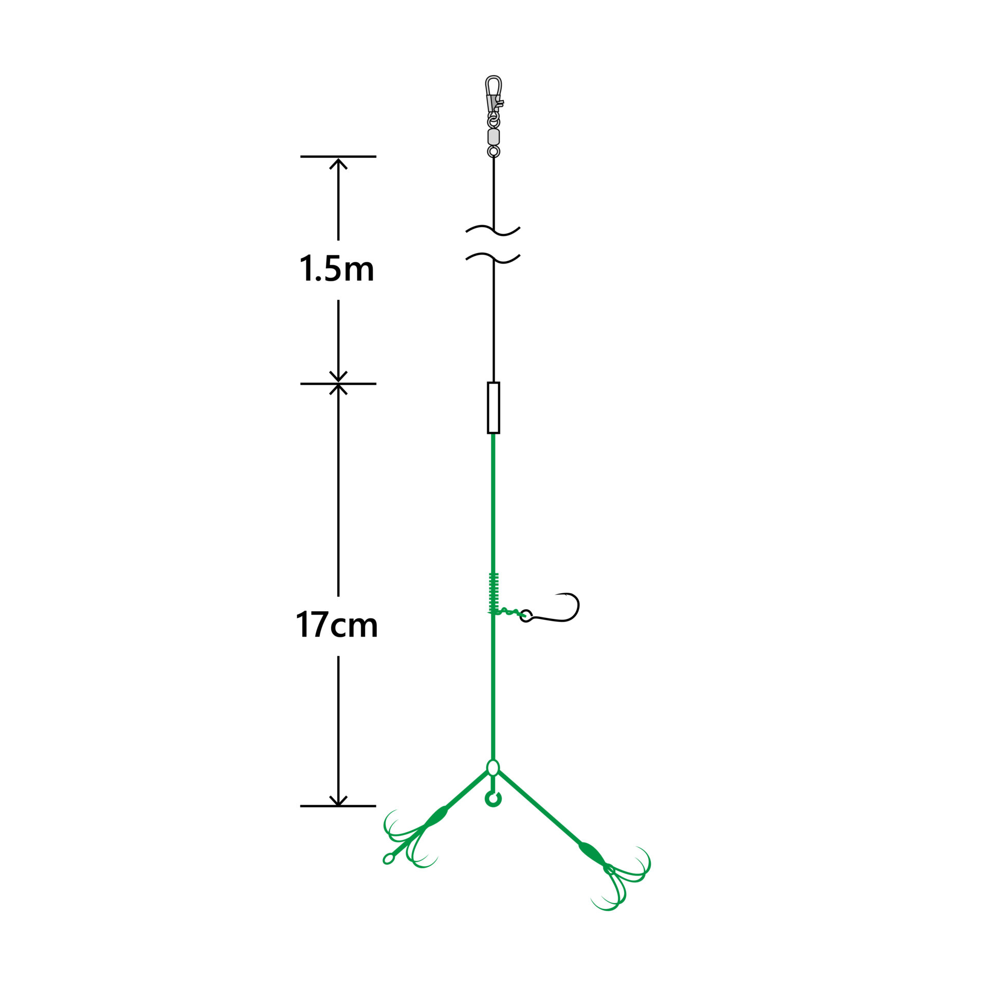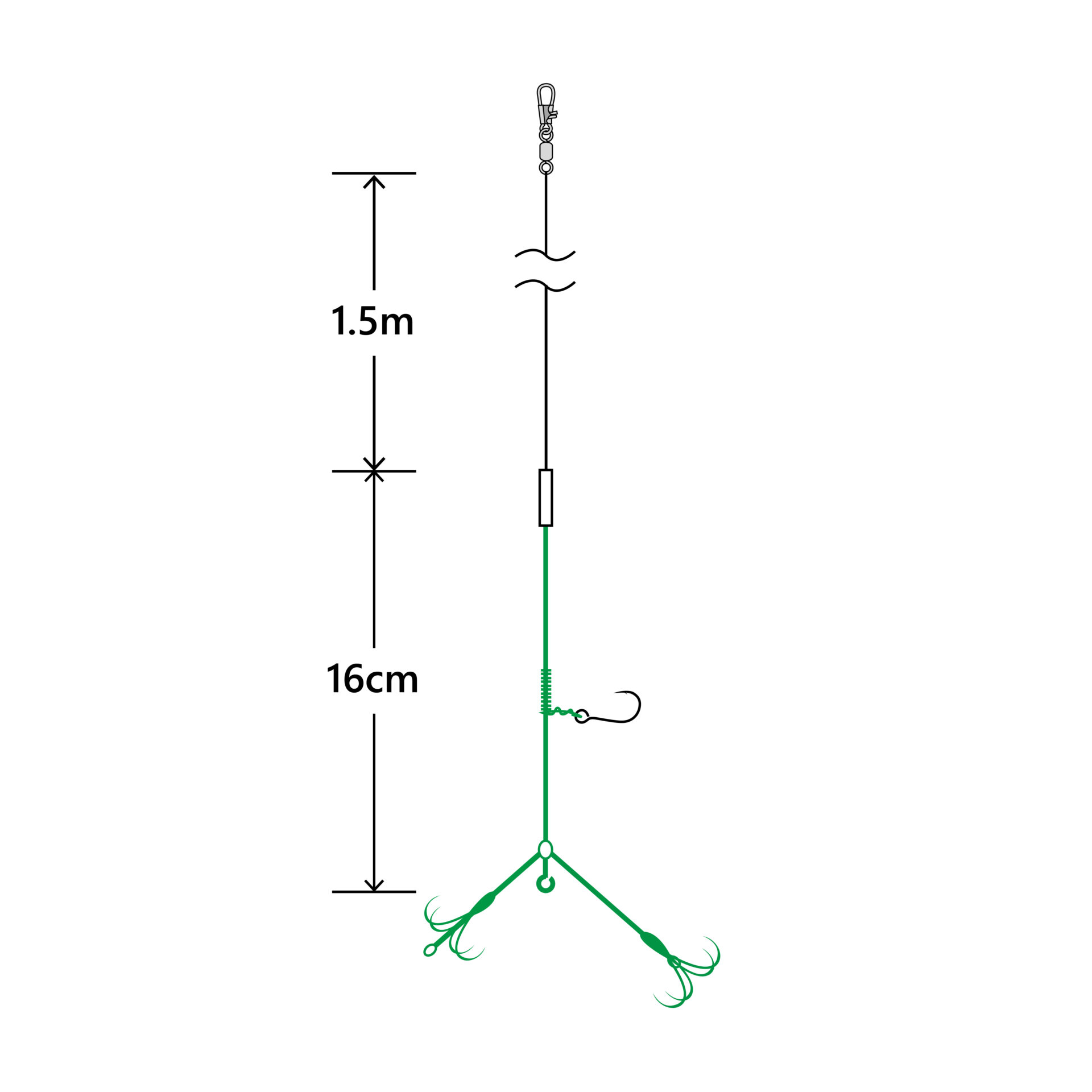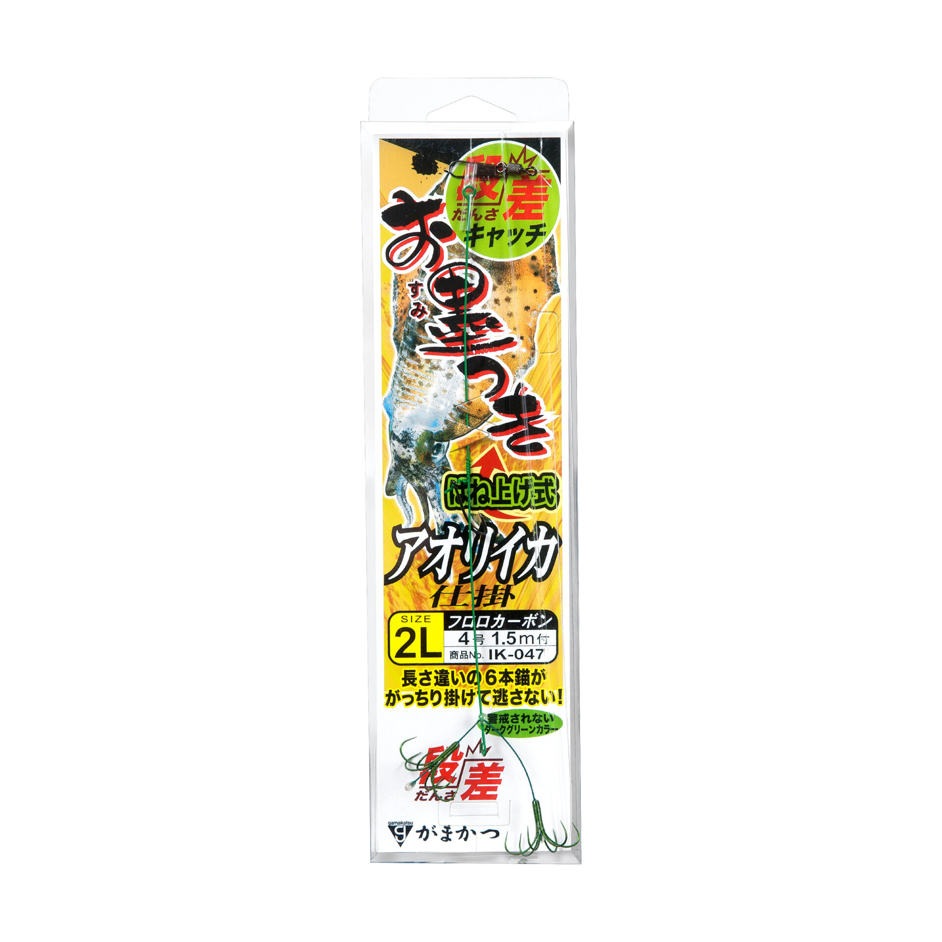 段差になったダブルの錨で、アオリイカを絡めるようにゲットします。警戒されにくいグリーンカラーに仕上げています。