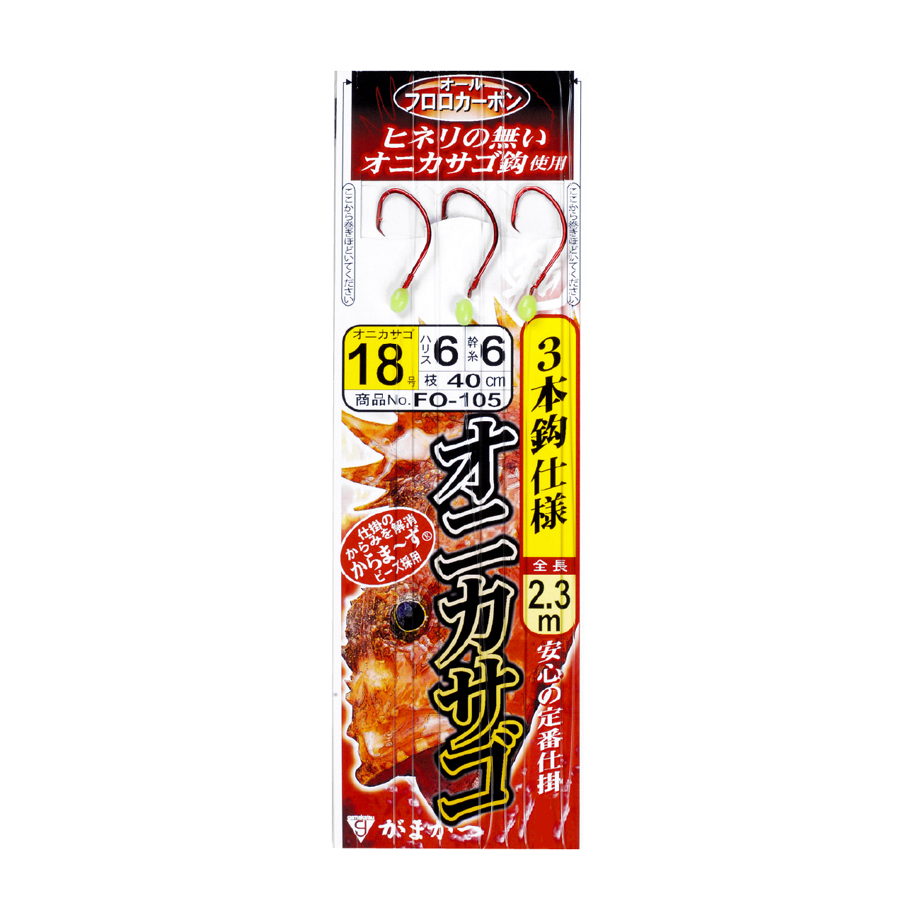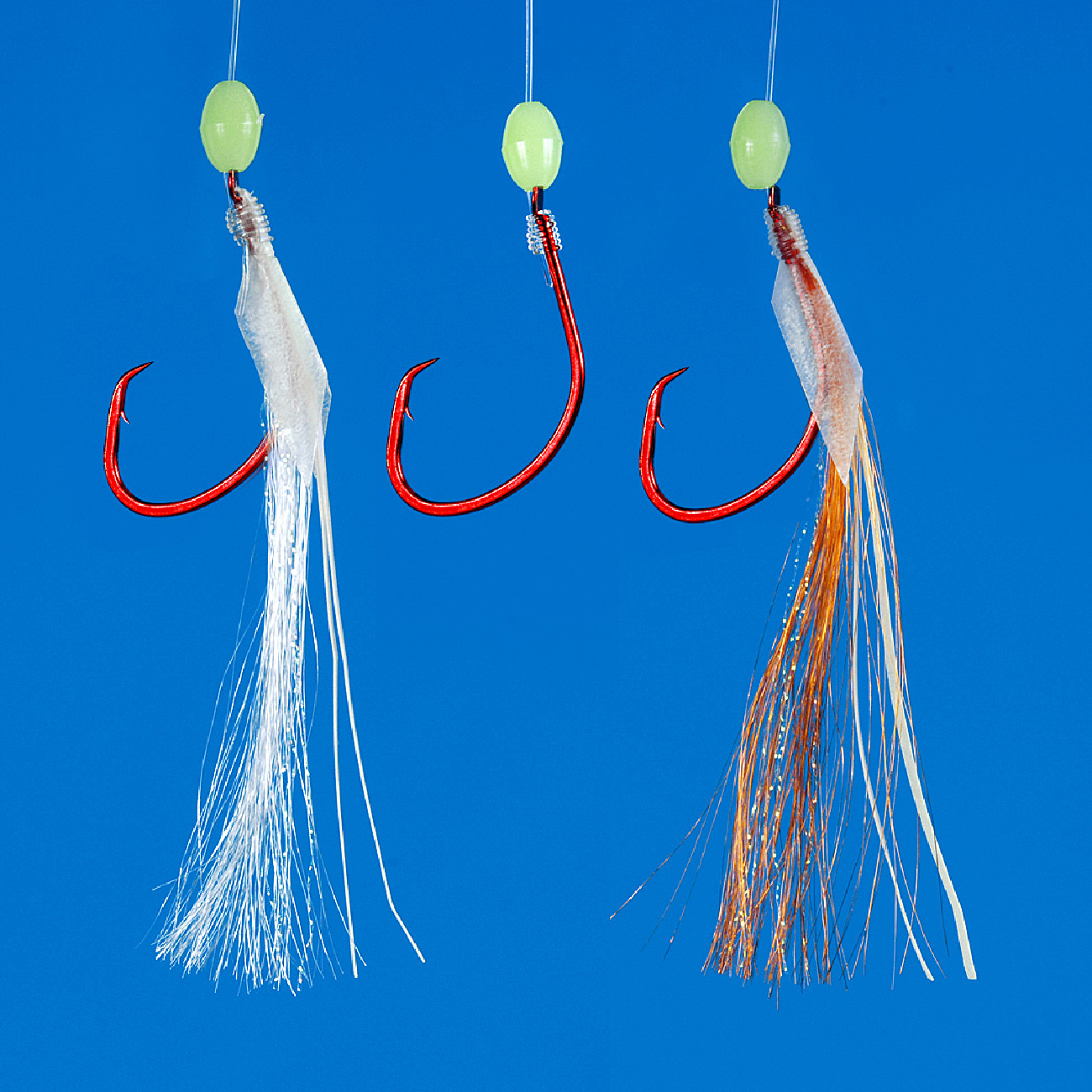 ベーシックな3本鈎仕様で、チモトの夜光ビーズはソフトタイプを使用。取り外すことにより、アピール力を調整することも可能。サメ・フグなどの外道や、エサ取りが多い時にはシンプルな仕掛が効果的です。