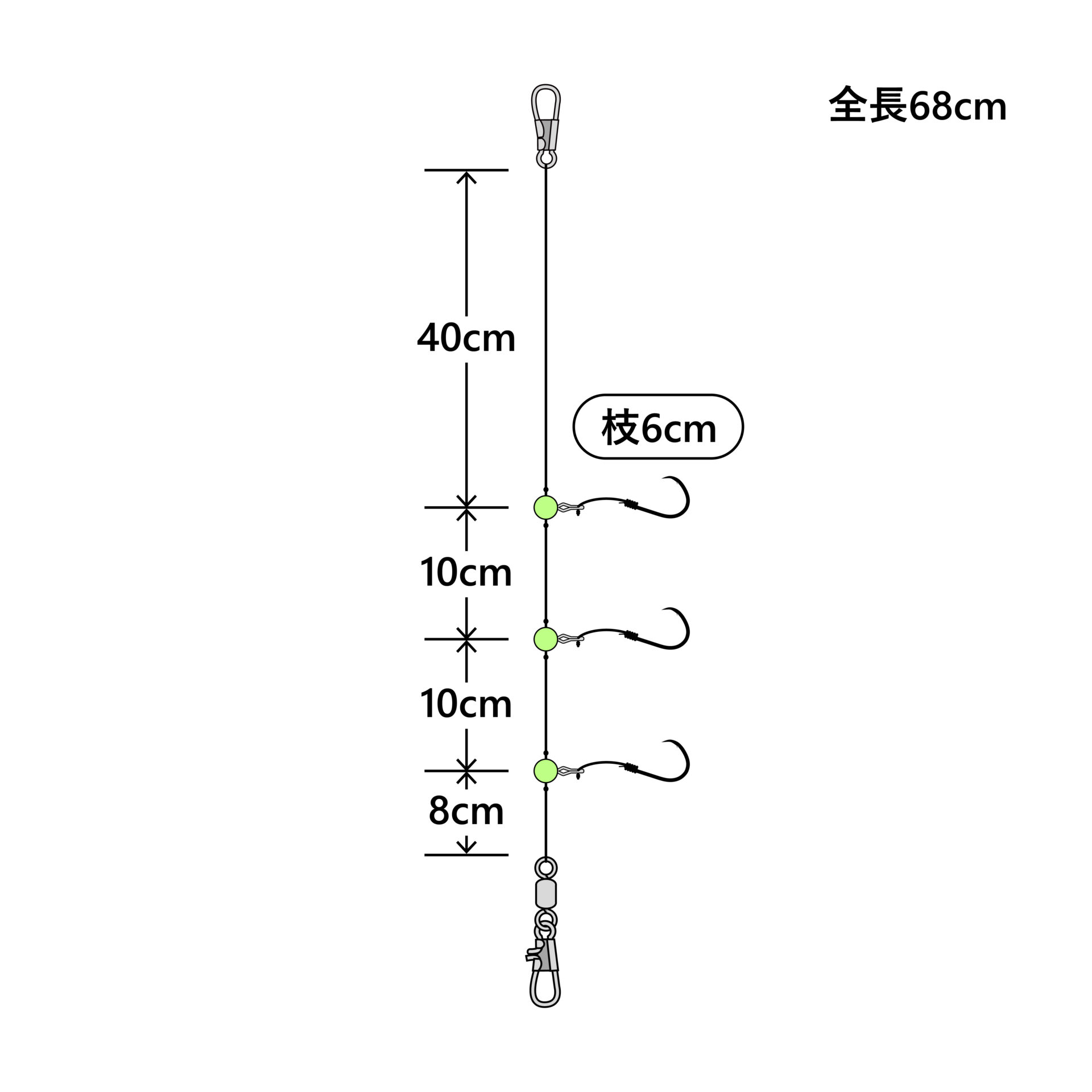 タテの釣りに照準を合わせた枝間設定。宙・誘い下げに効果を発揮!使用鈎・仕掛の寸法・釣法をトータルでプロデュース。上級者にも満足いただける設定です。