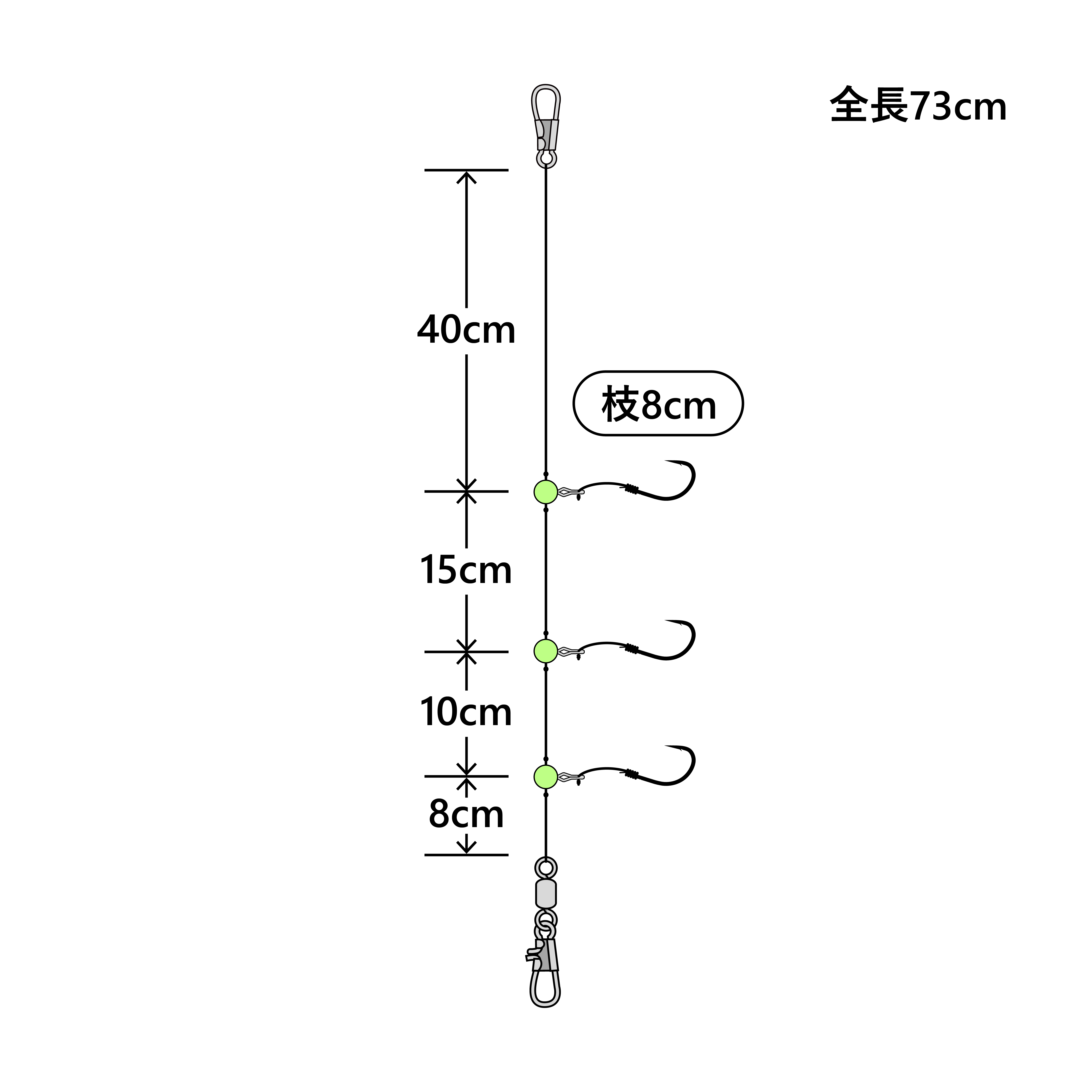 オールラウンドに対応できる枝間設定。タテの釣りはもちろん、タルマセやハワセにも対応できる幅広い応用力を誇ります。