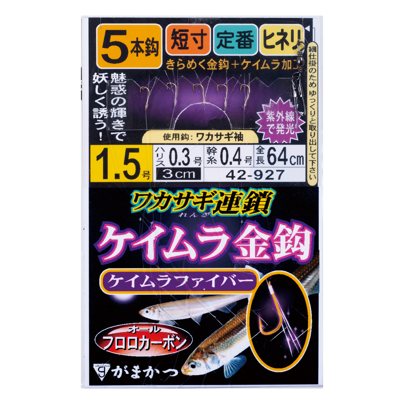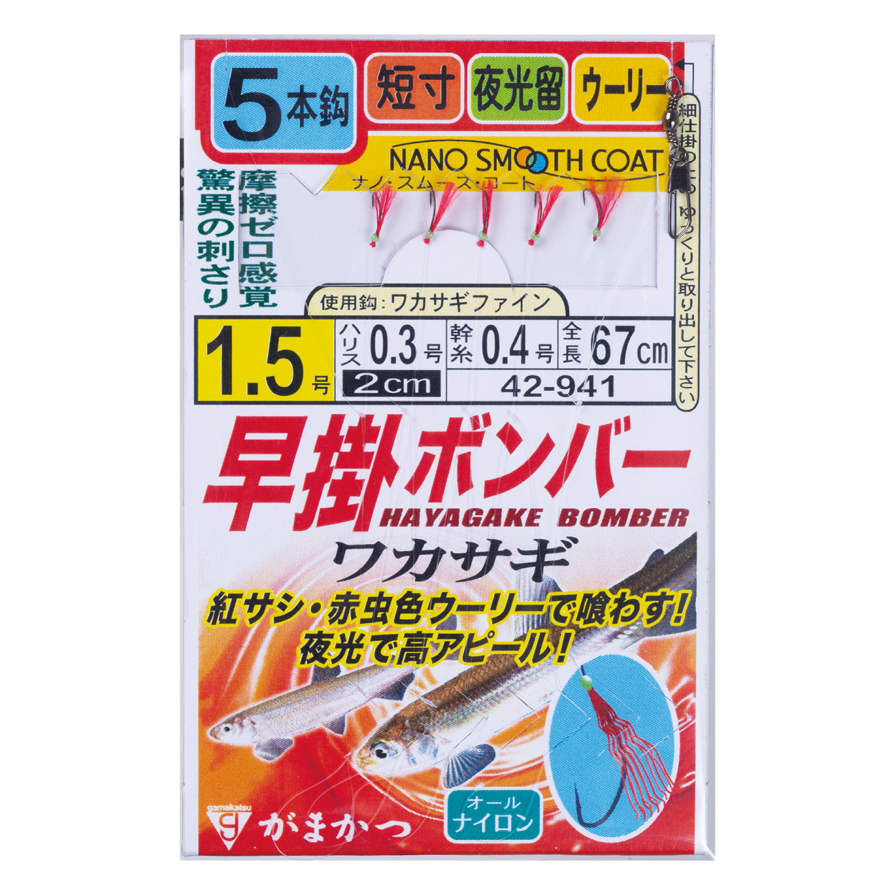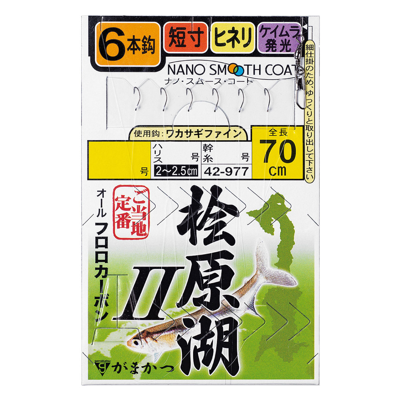 長さ違いのハリスが一か所から2本出ている独特なダブル鈎仕掛。低水温やタフコンディション下の底ベタ狙い、魚探を使ったワカサギの泳層直撃など、特定のタナにエサを集中させ、不規則な動きで視覚的にも嗅覚的にもワカサギに強烈にアピールします。ドーム船や短竿に有利な55cmの短寸仕掛でありながら6本の鈎を持ち、高活性時の数釣りにも効果を発揮します。