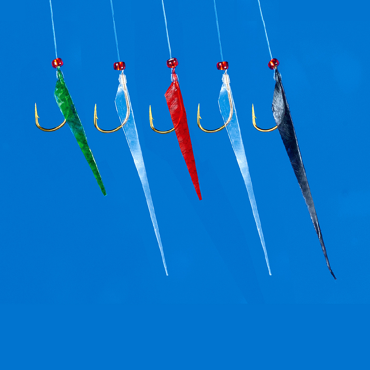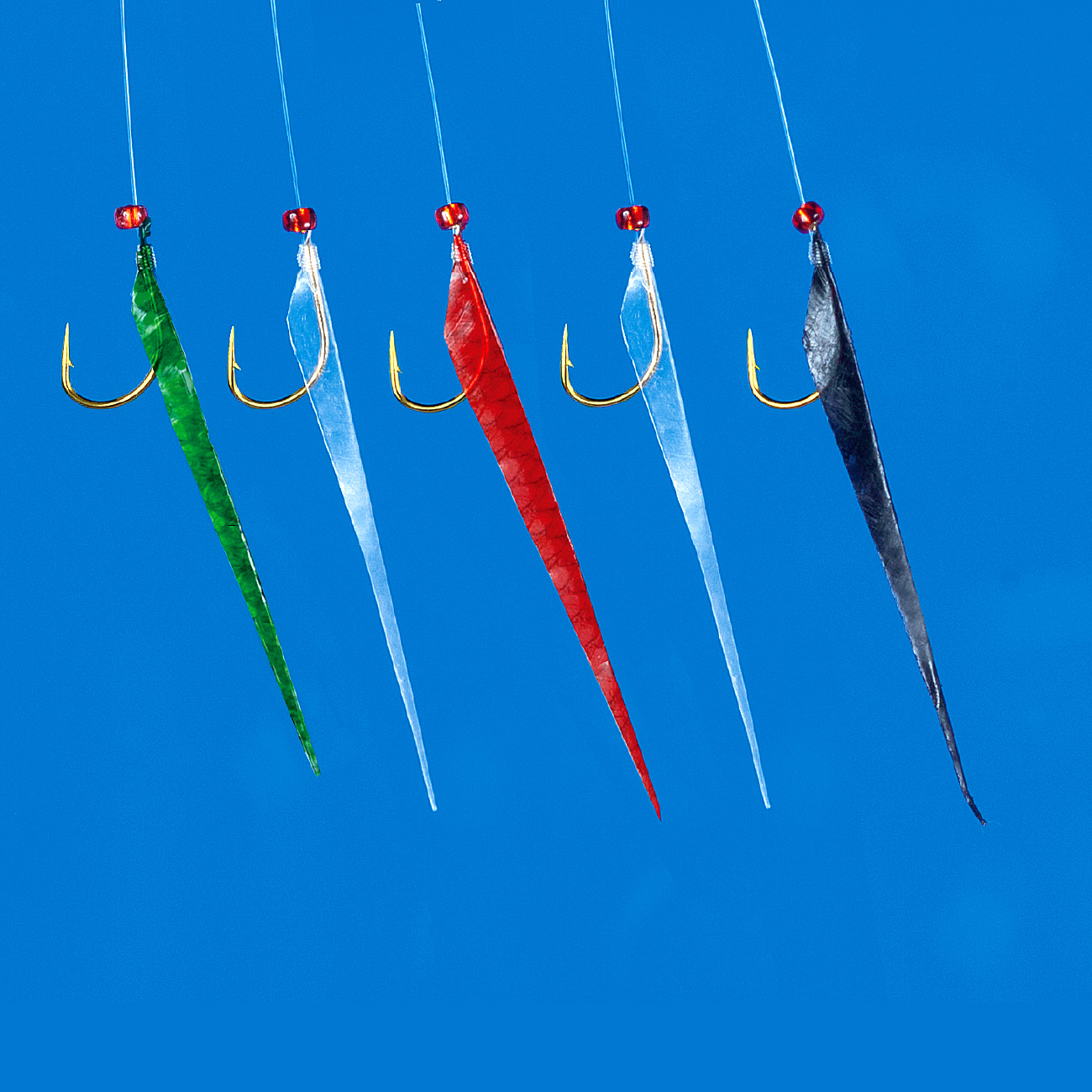 小魚を模した長い魚皮と、小型甲殻類を模した小さな魚皮をミックスしました。季節とともに変わるベイトに対応し、当日の“当たりサビキ”のサーチにご利用ください。